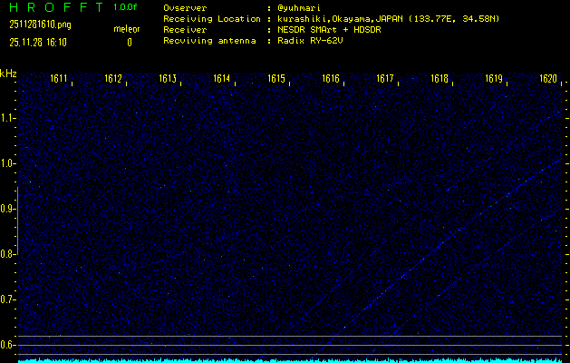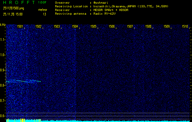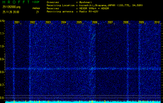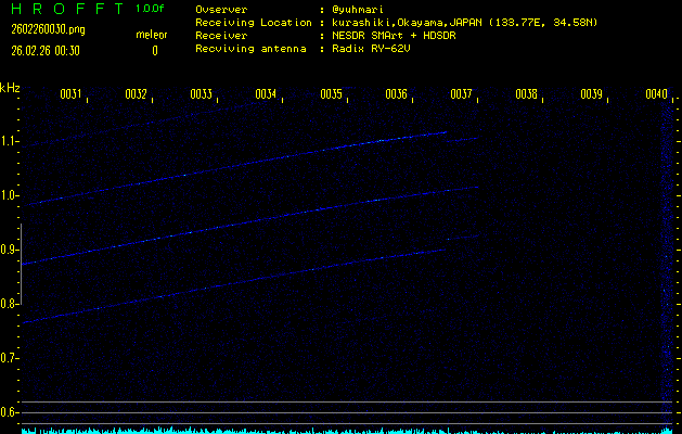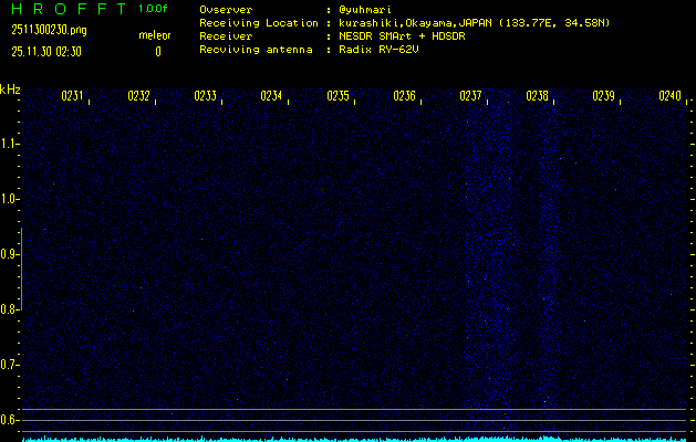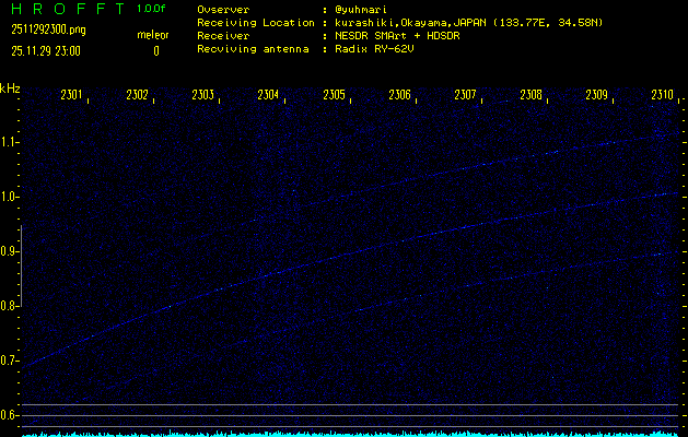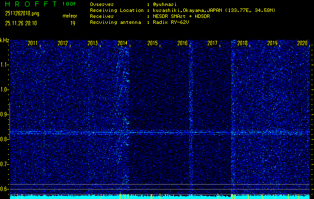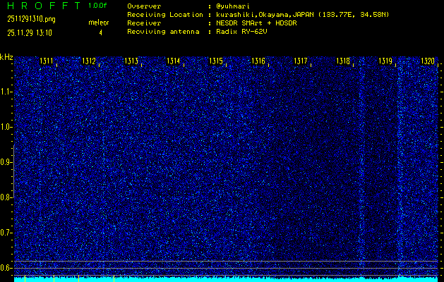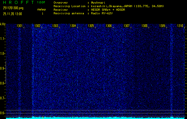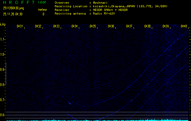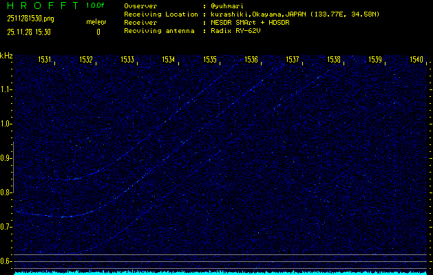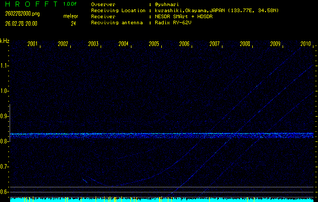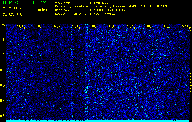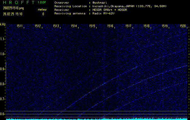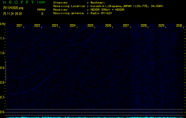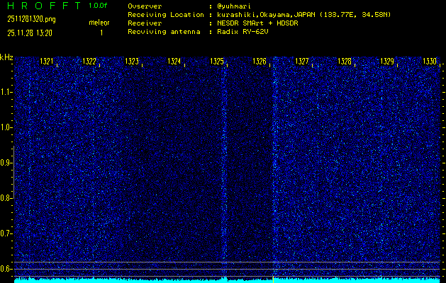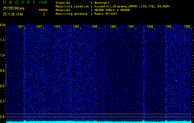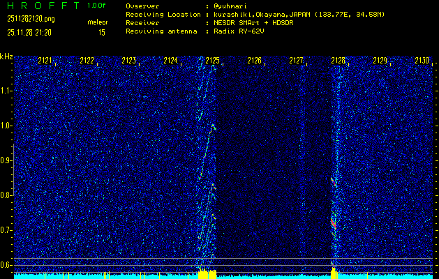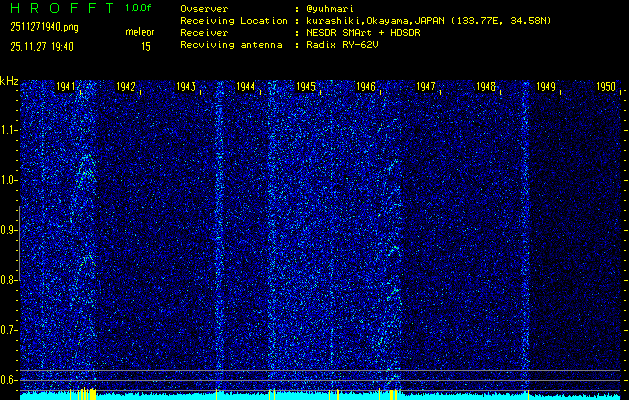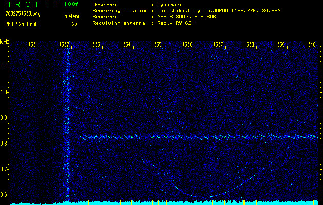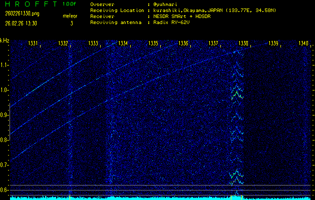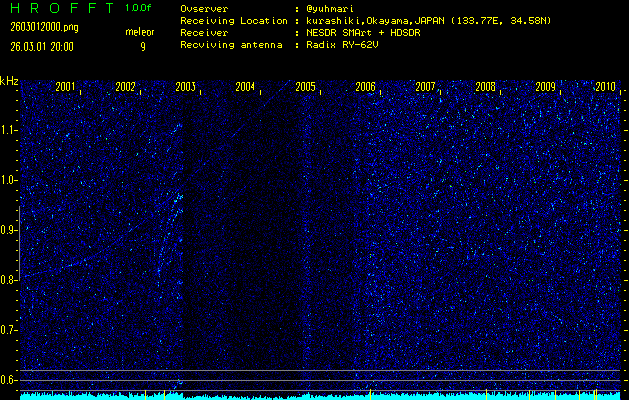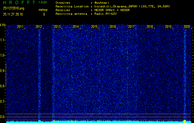 過去のデータは「流星電波観測国際プロジェクト」様サイト内のFRO LIVE in 倉敷(岡山県)でもご覧いただけます。(現在、送信を停止しています)