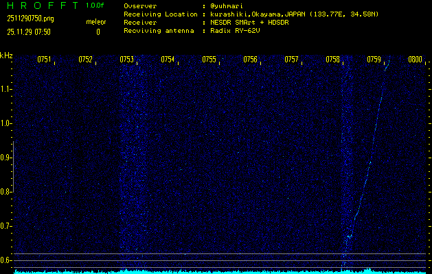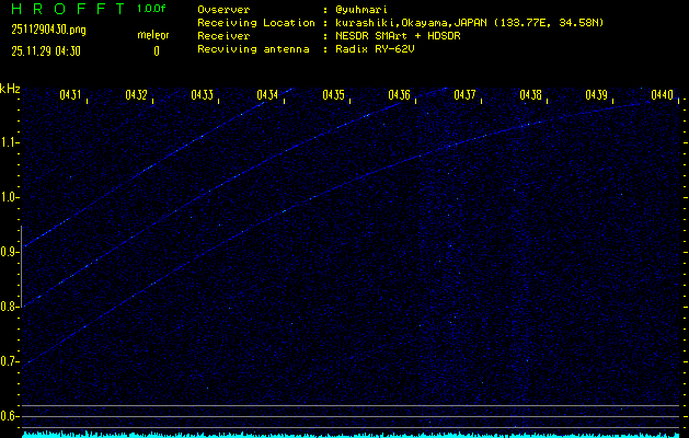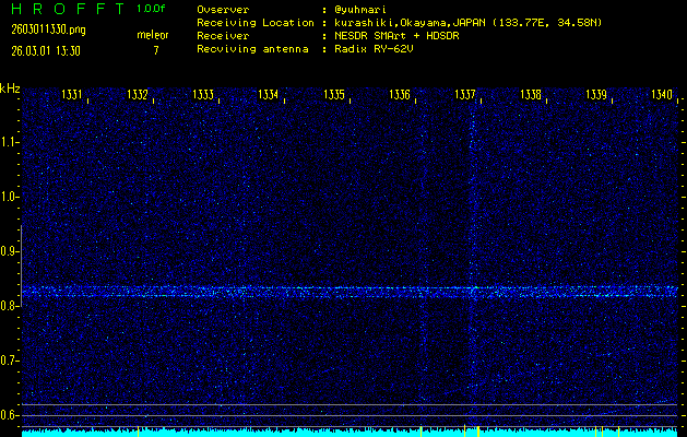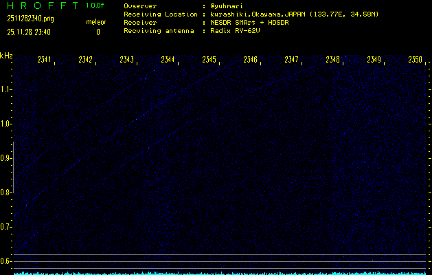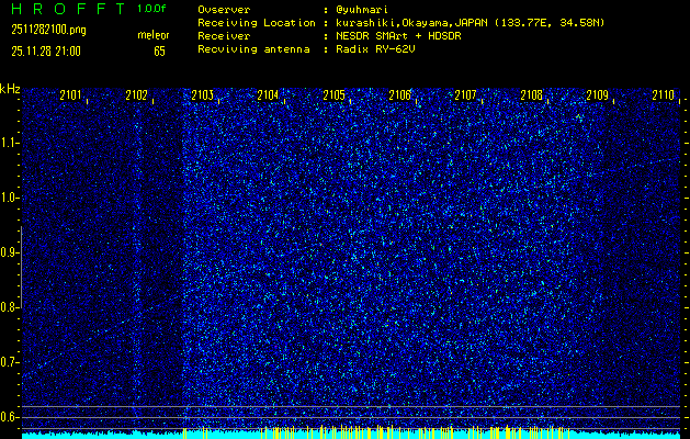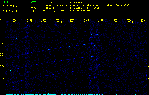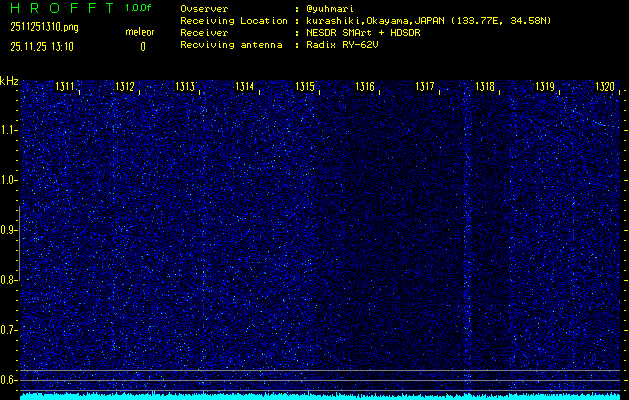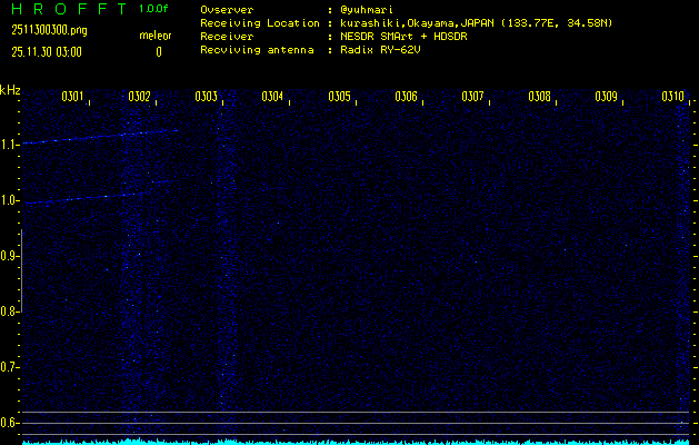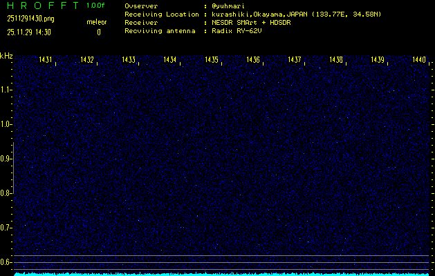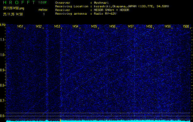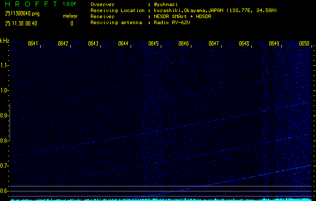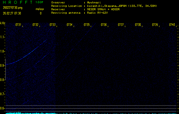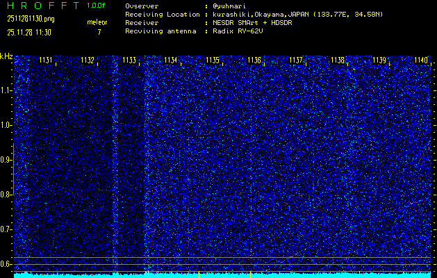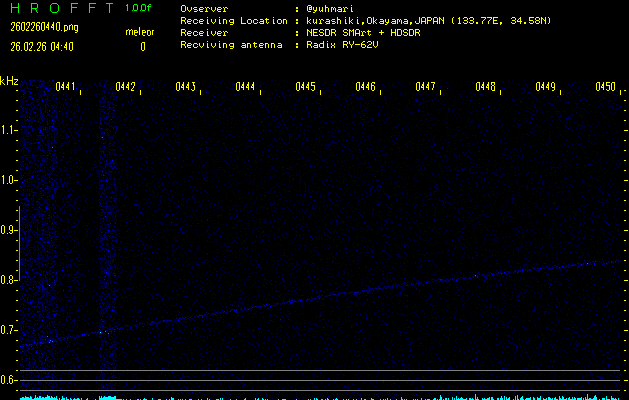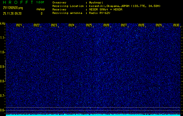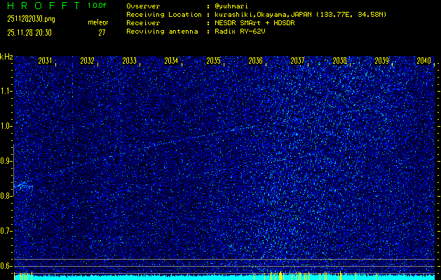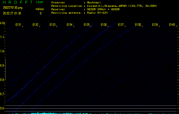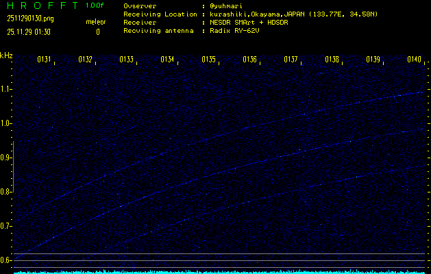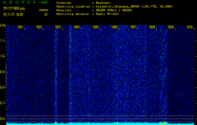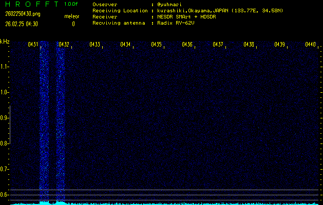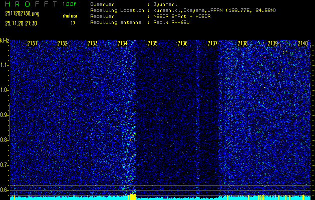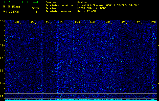 過去のデータは「流星電波観測国際プロジェクト」様サイト内のFRO LIVE in 倉敷(岡山県)でもご覧いただけます。(現在、送信を停止しています)