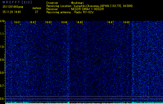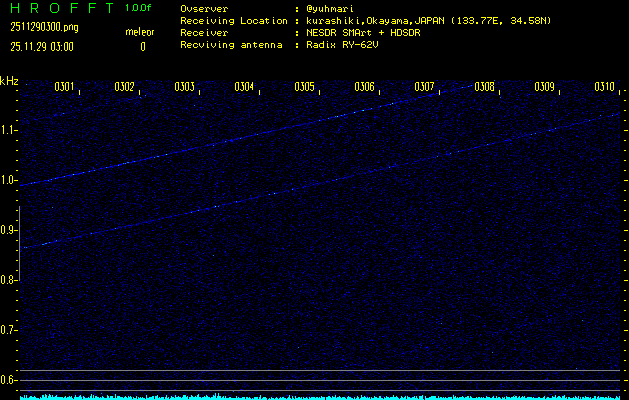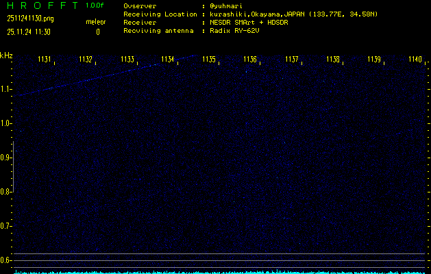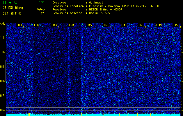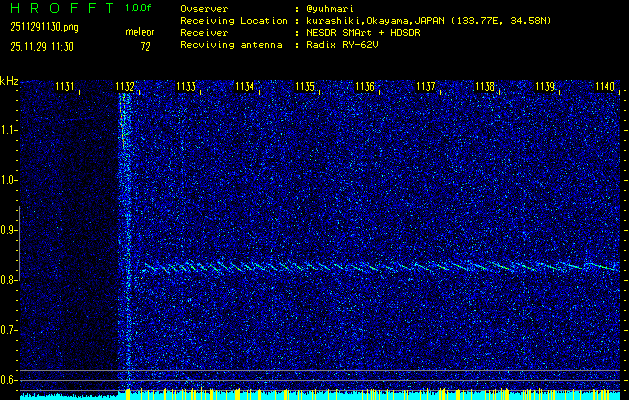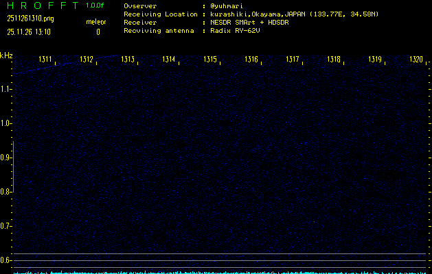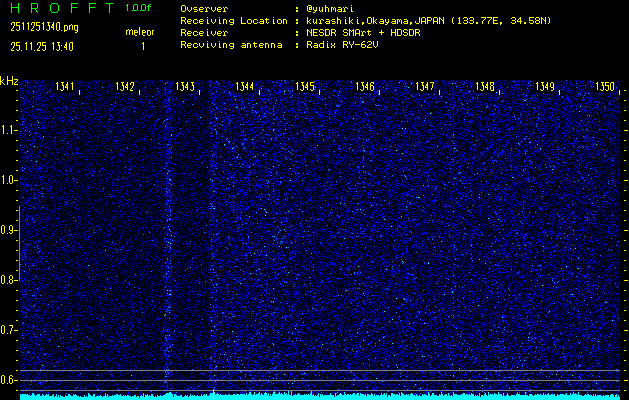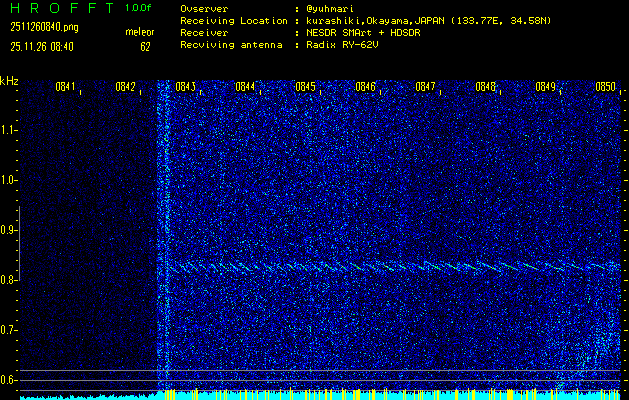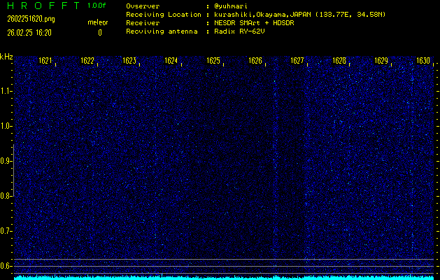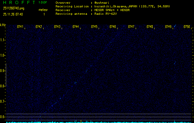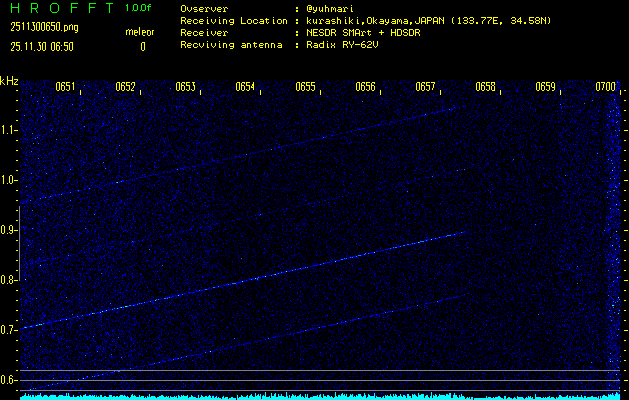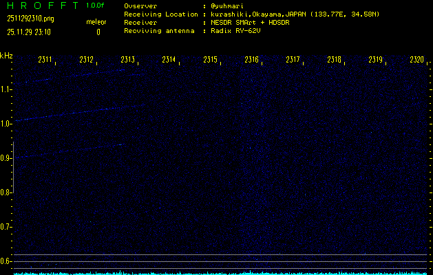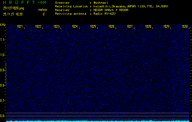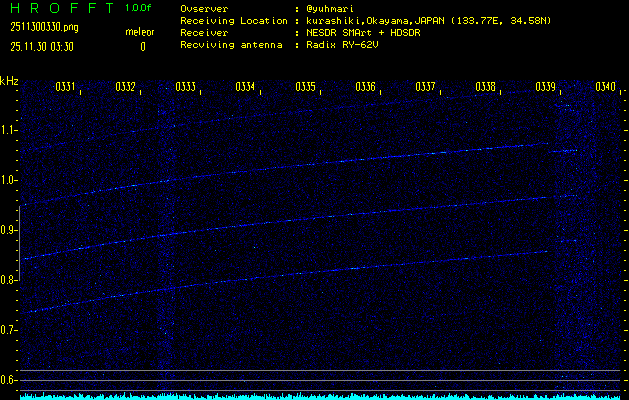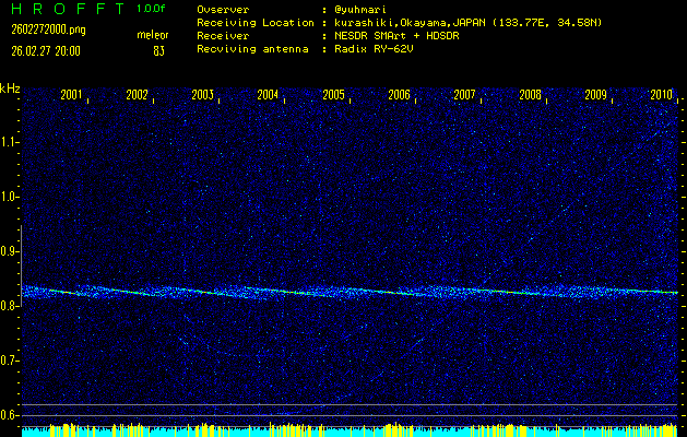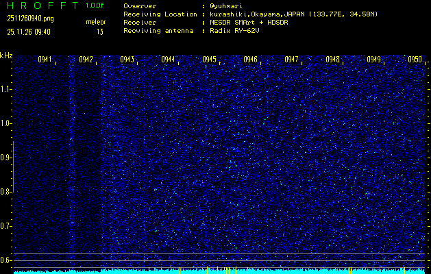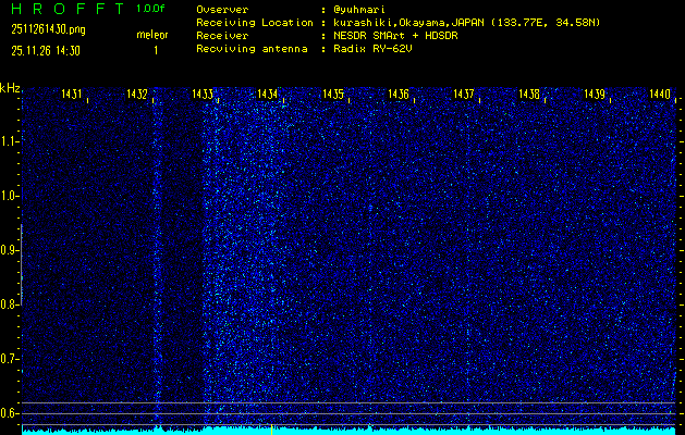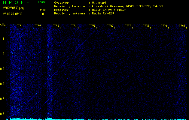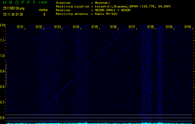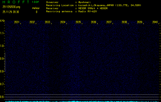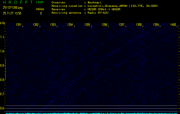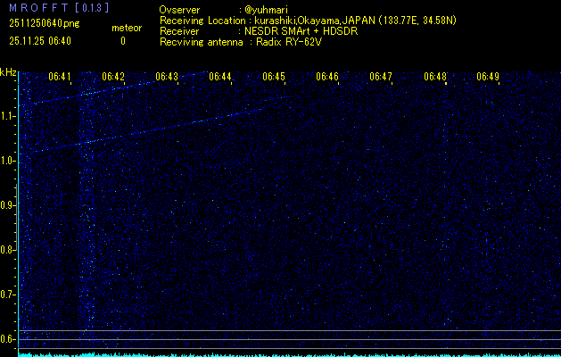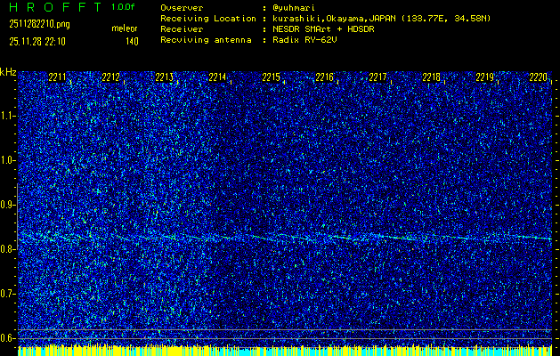 過去のデータは「流星電波観測国際プロジェクト」様サイト内のFRO LIVE in 倉敷(岡山県)でもご覧いただけます。(現在、送信を停止しています)