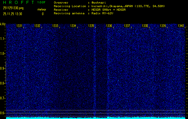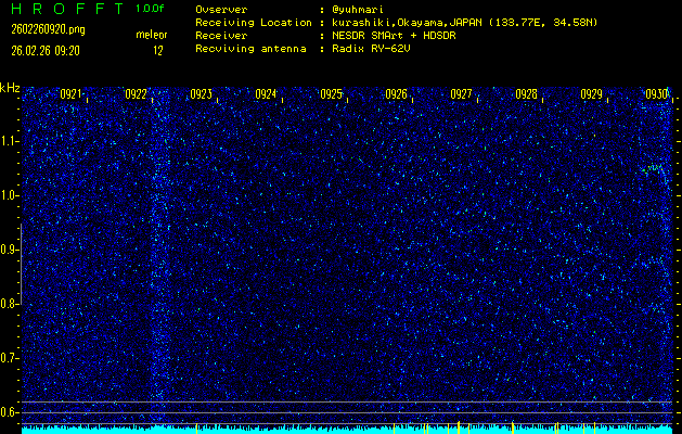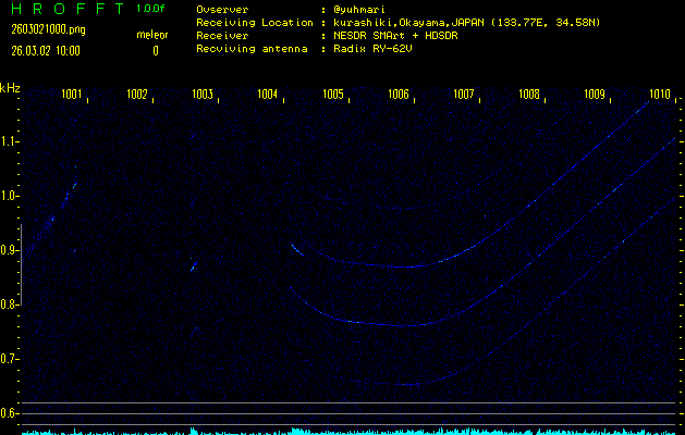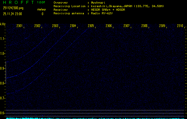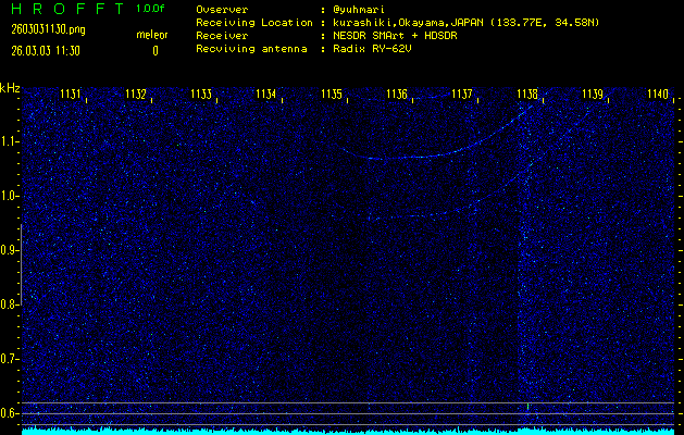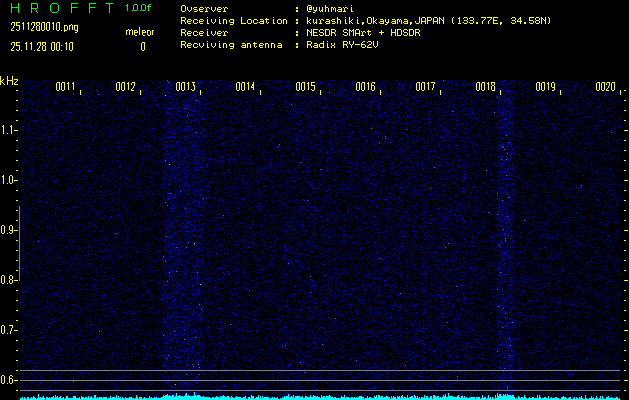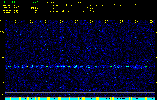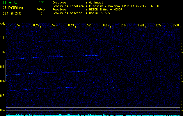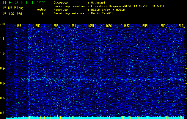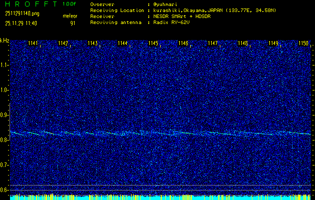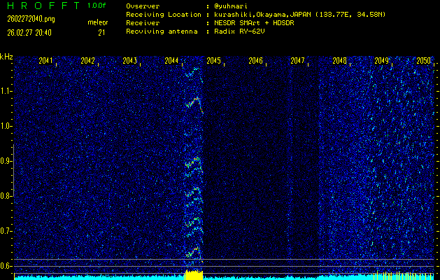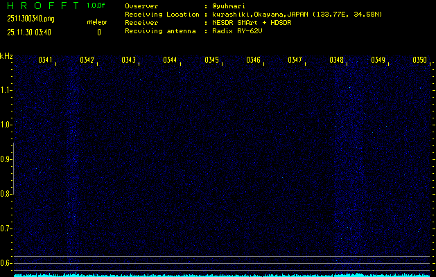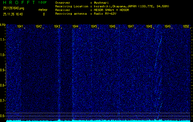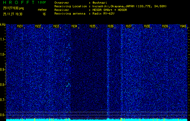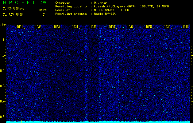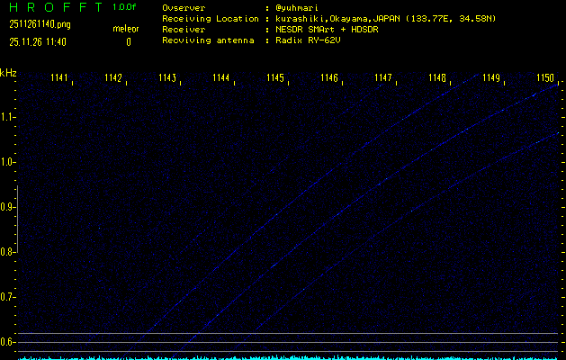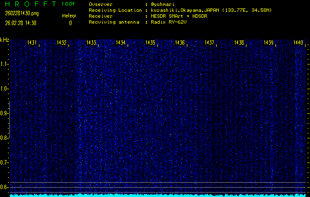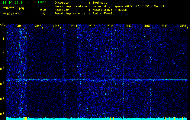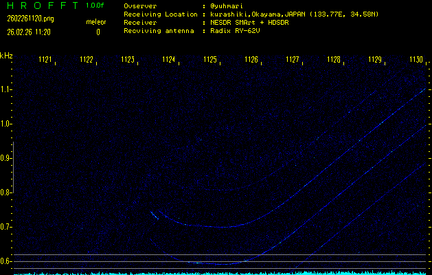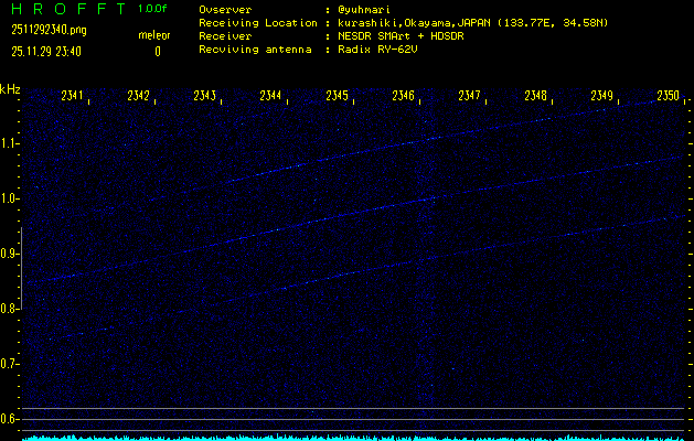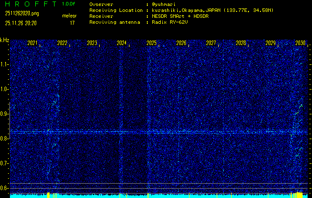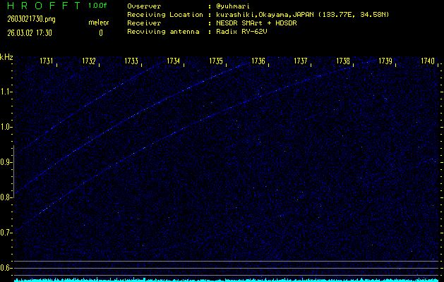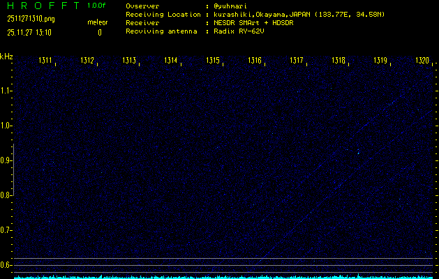 過去のデータは「流星電波観測国際プロジェクト」様サイト内のFRO LIVE in 倉敷(岡山県)でもご覧いただけます。(現在、送信を停止しています)