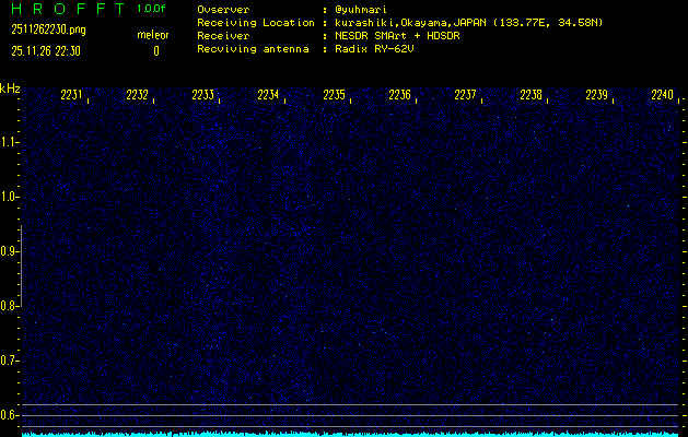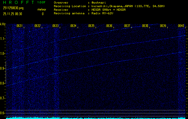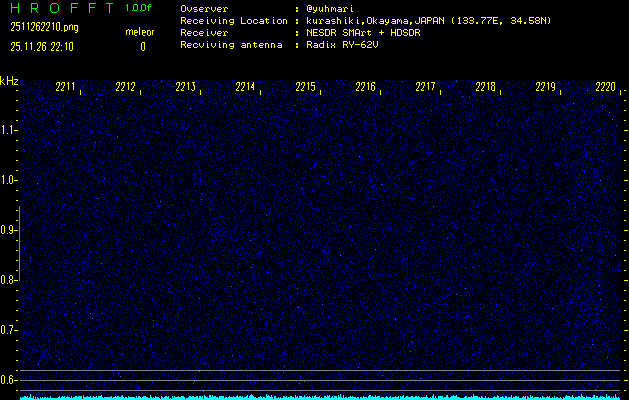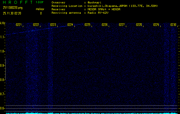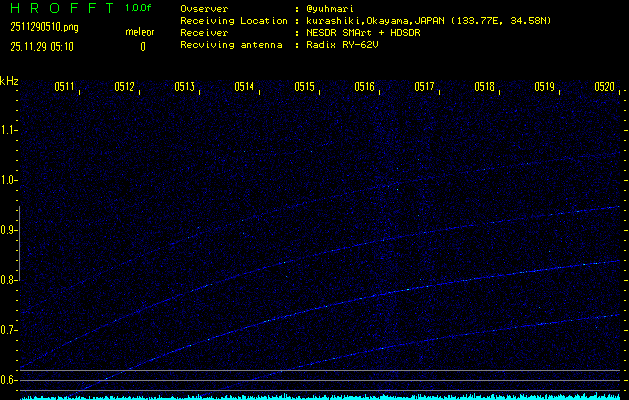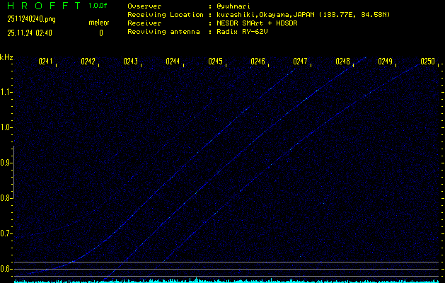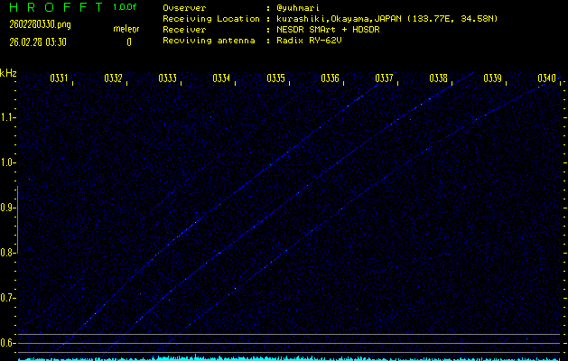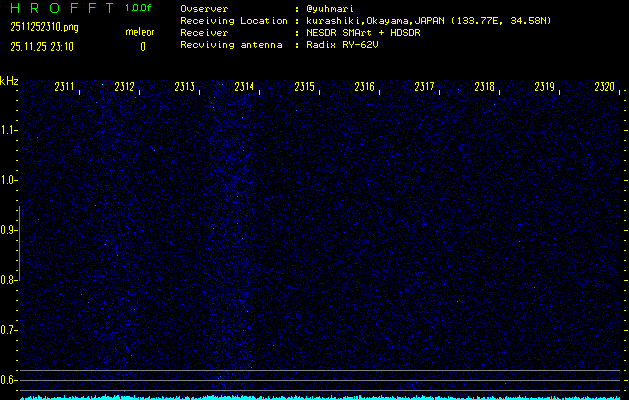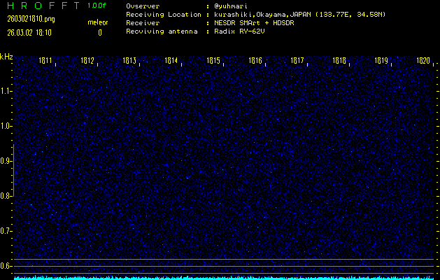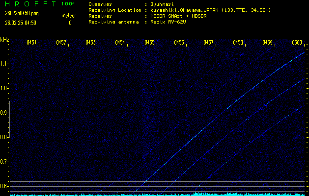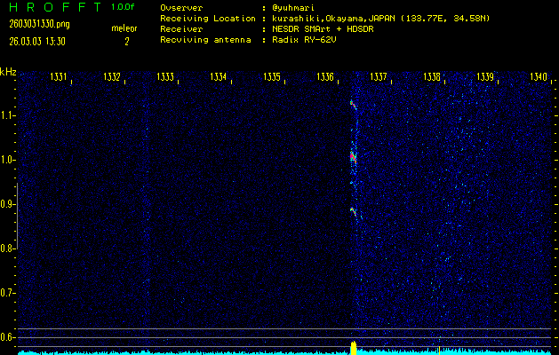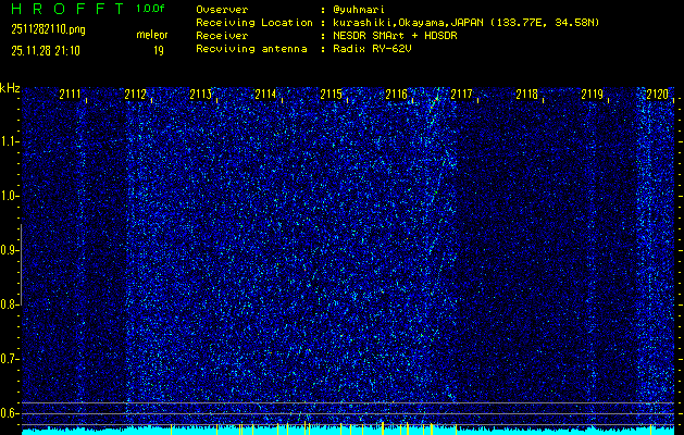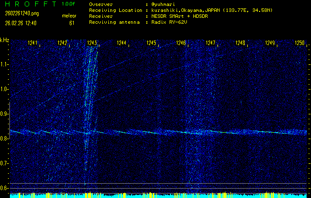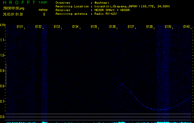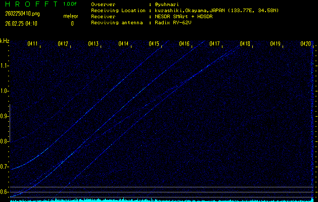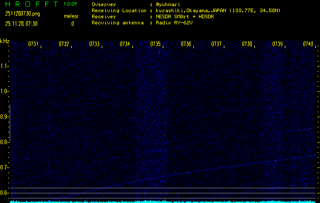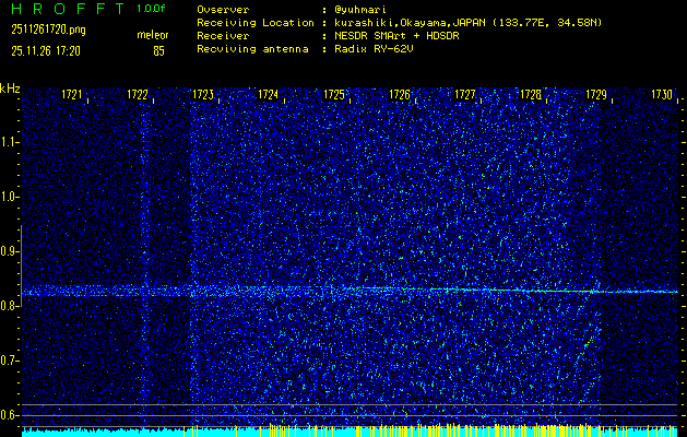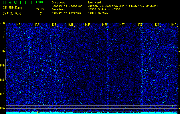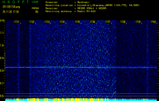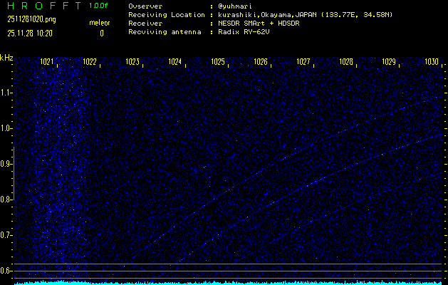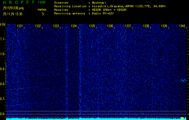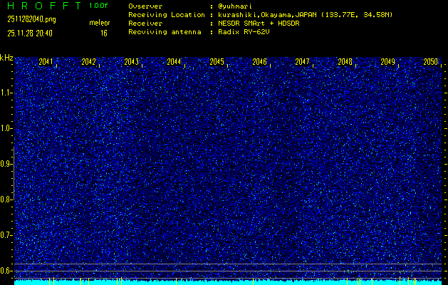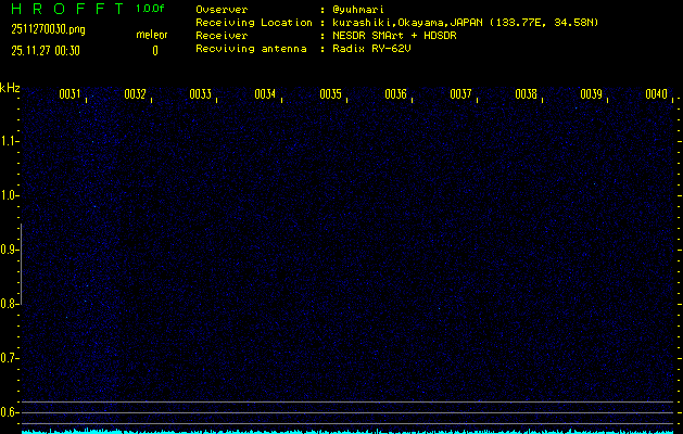 過去のデータは「流星電波観測国際プロジェクト」様サイト内のFRO LIVE in 倉敷(岡山県)でもご覧いただけます。(現在、送信を停止しています)