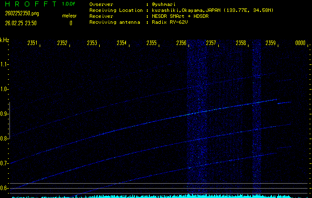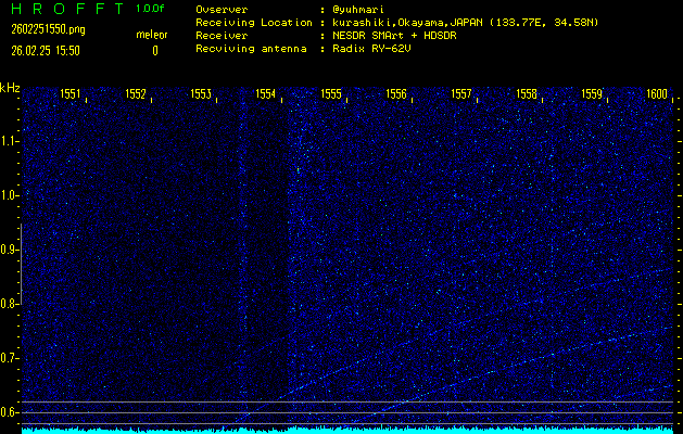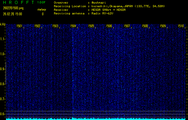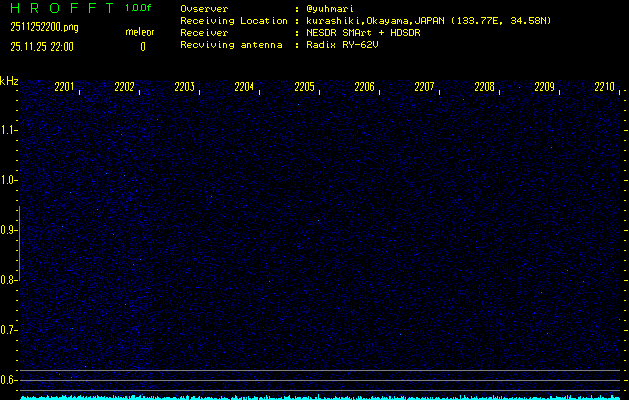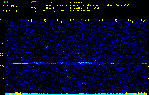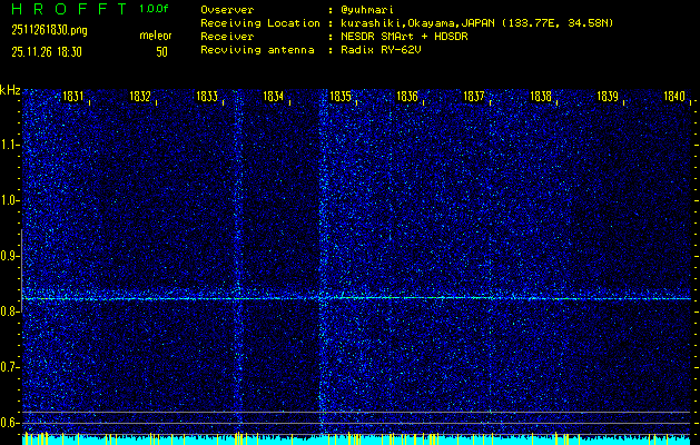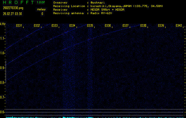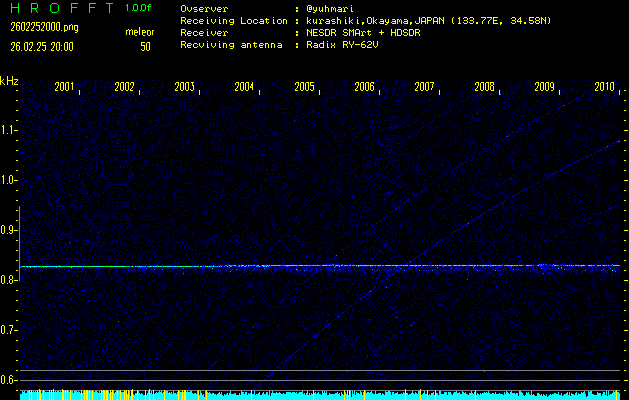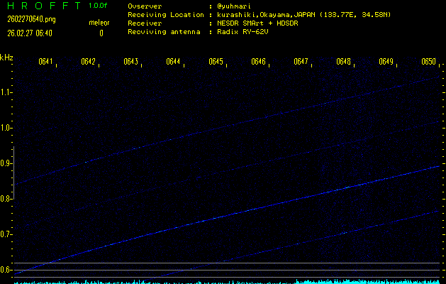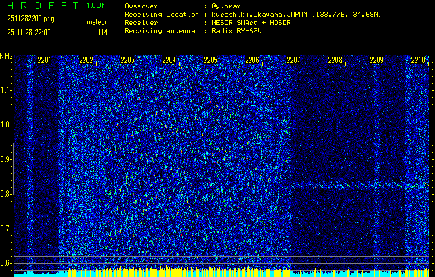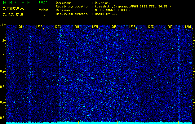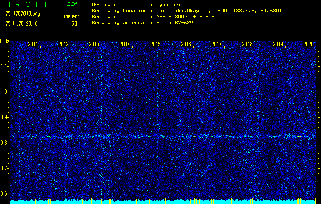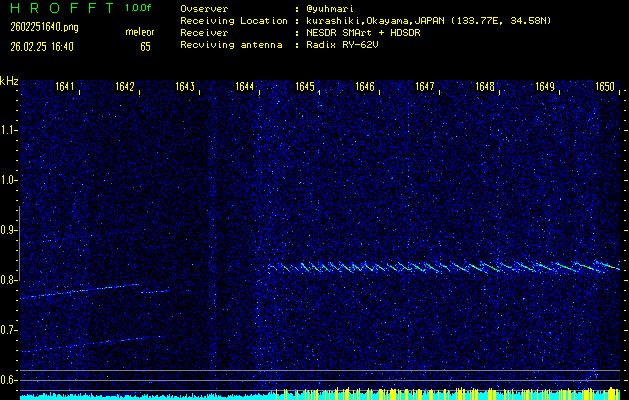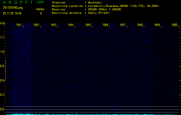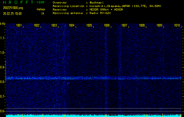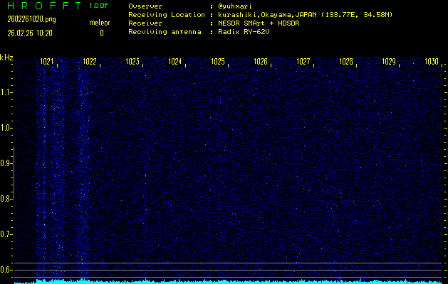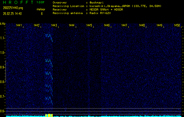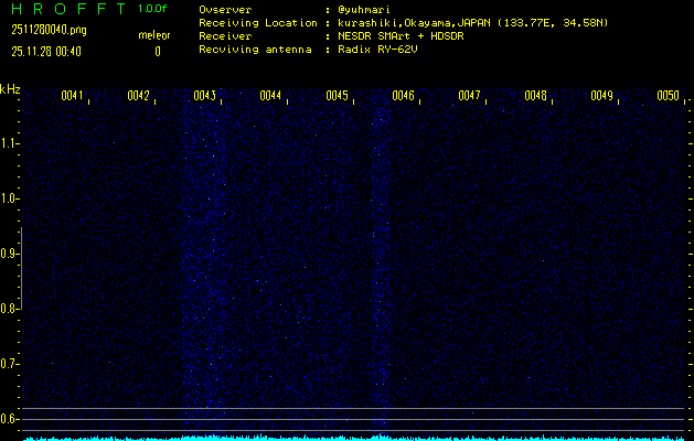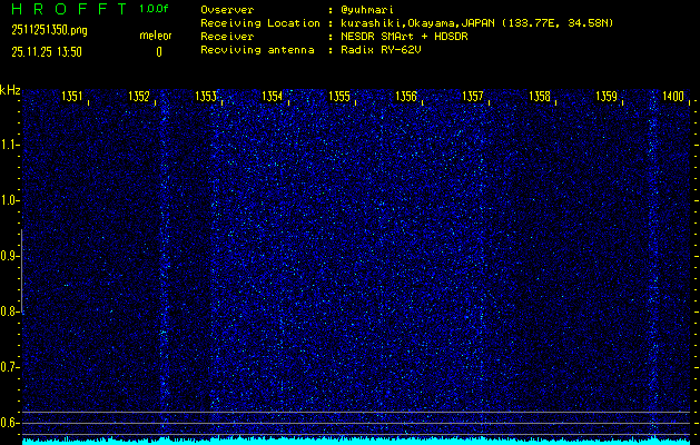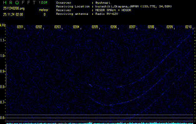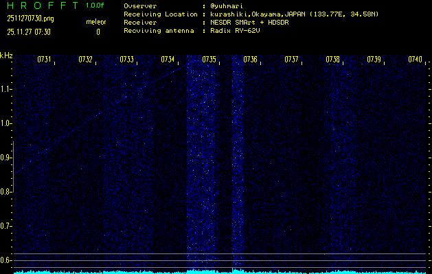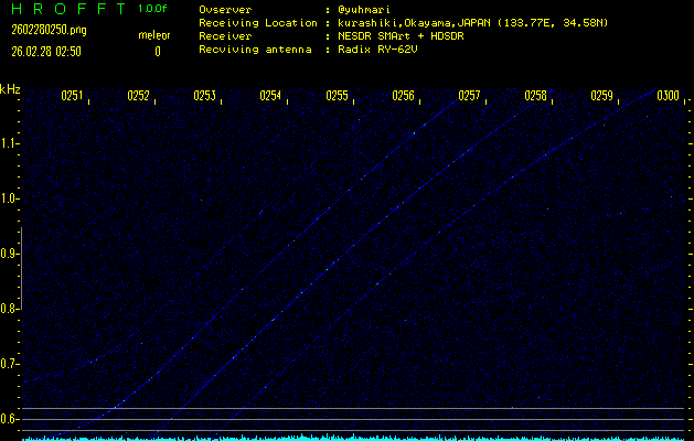 過去のデータは「流星電波観測国際プロジェクト」様サイト内のFRO LIVE in 倉敷(岡山県)でもご覧いただけます。(現在、送信を停止しています)