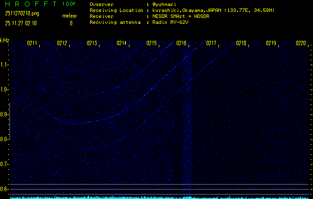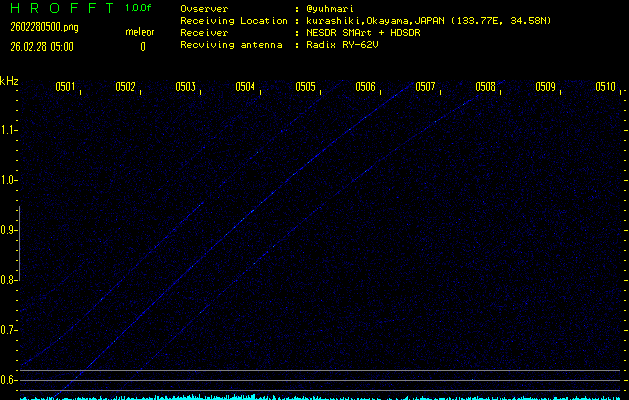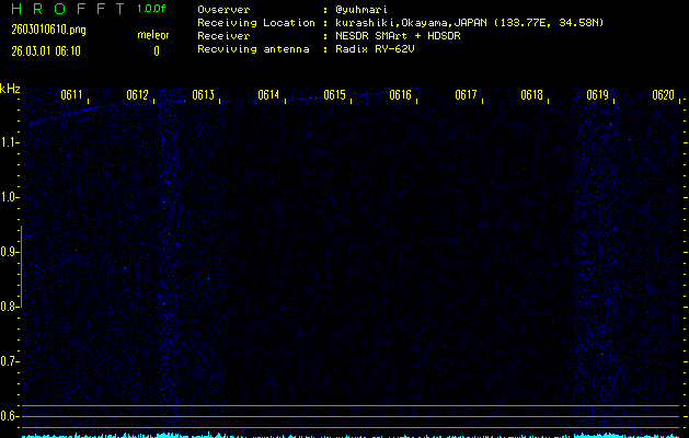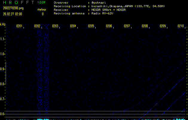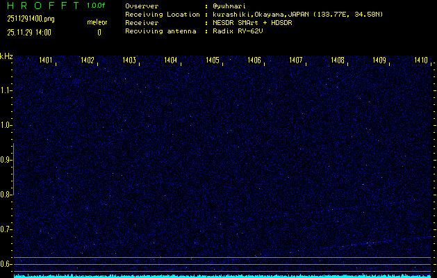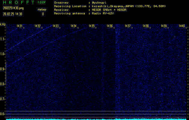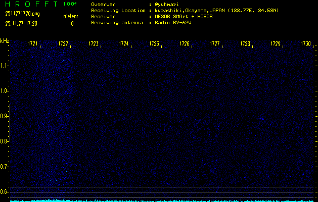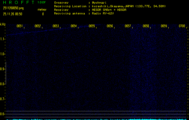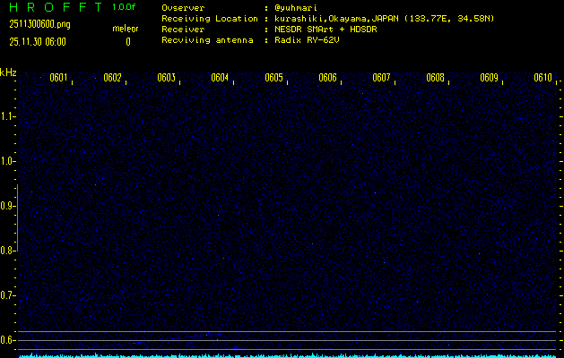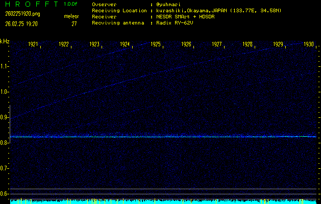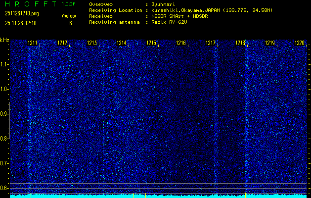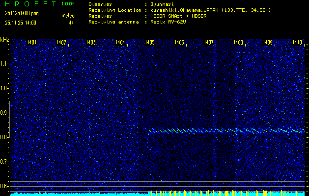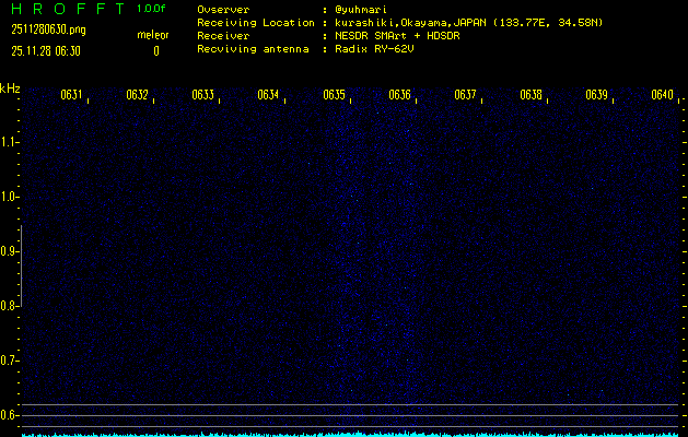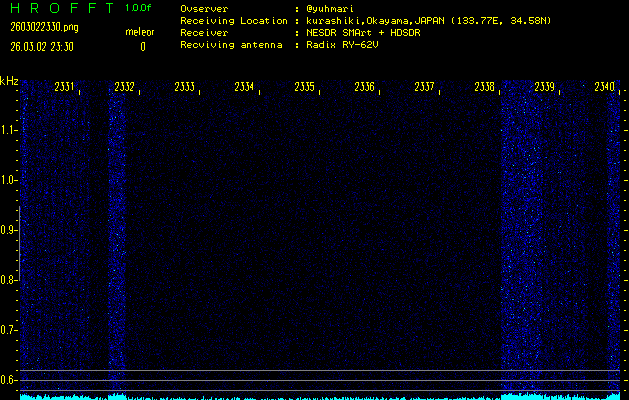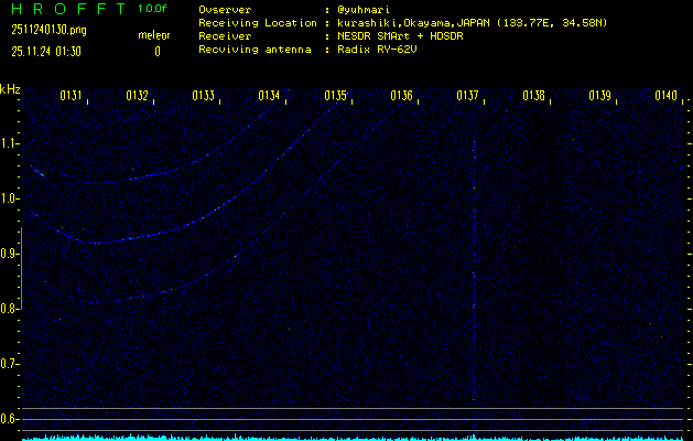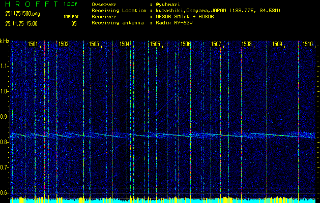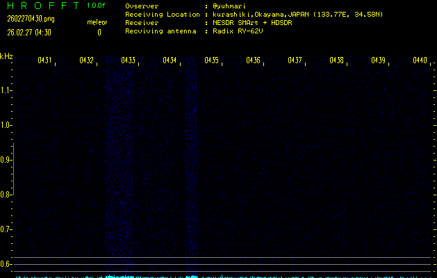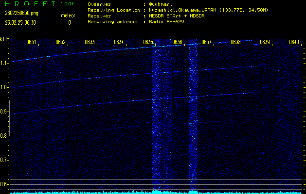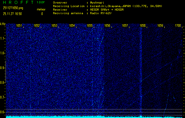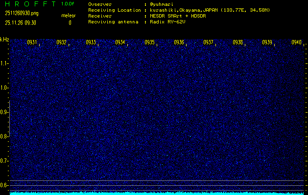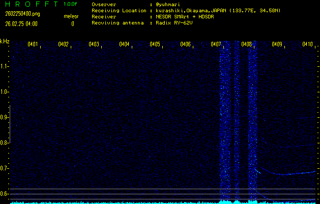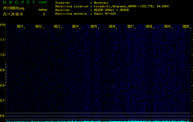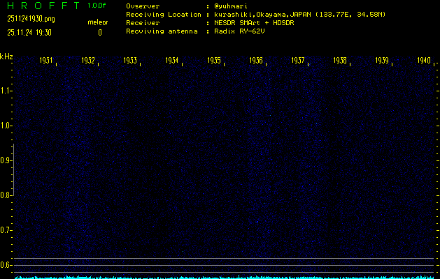 過去のデータは「流星電波観測国際プロジェクト」様サイト内のFRO LIVE in 倉敷(岡山県)でもご覧いただけます。(現在、送信を停止しています)