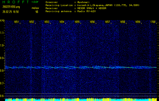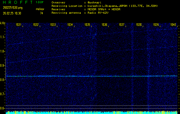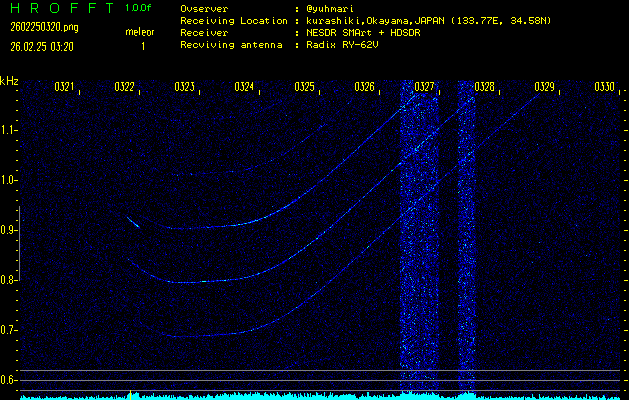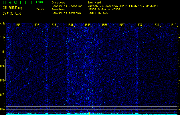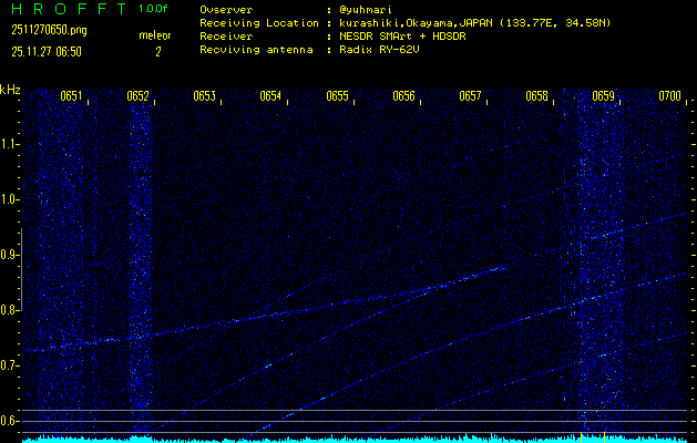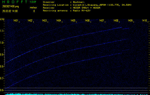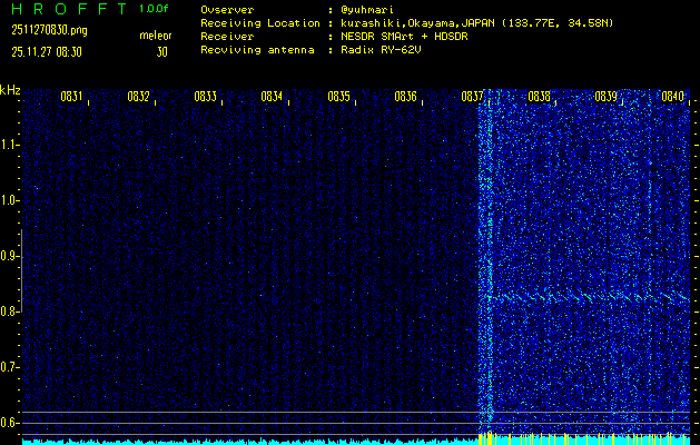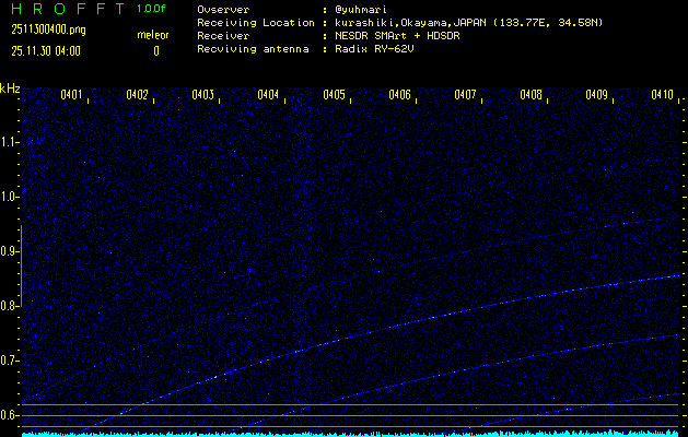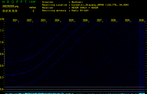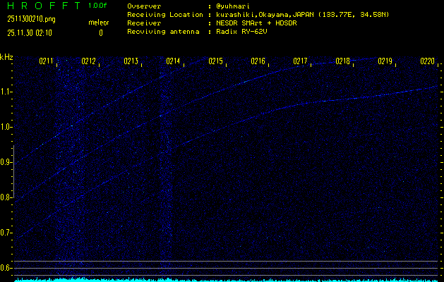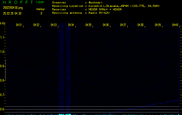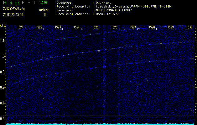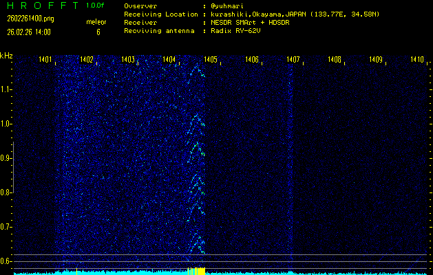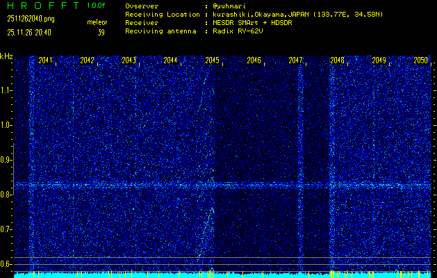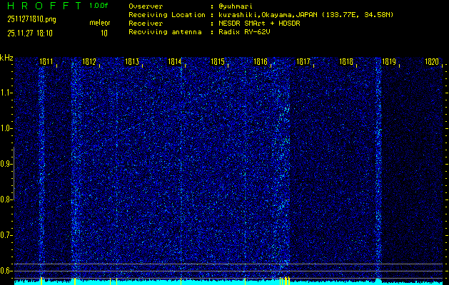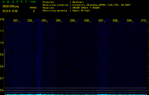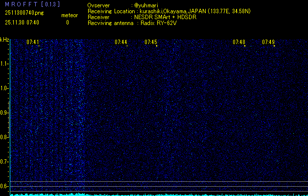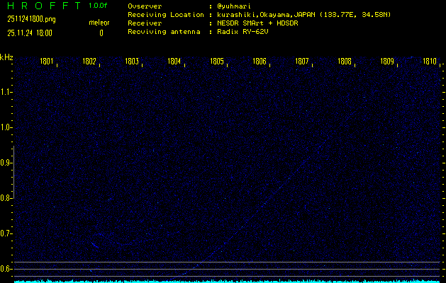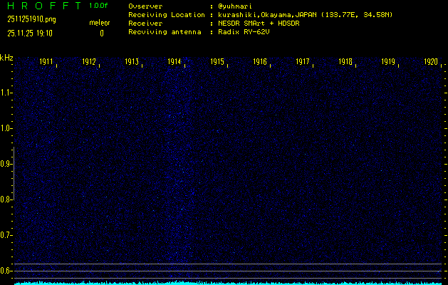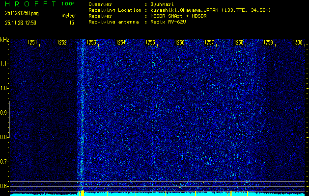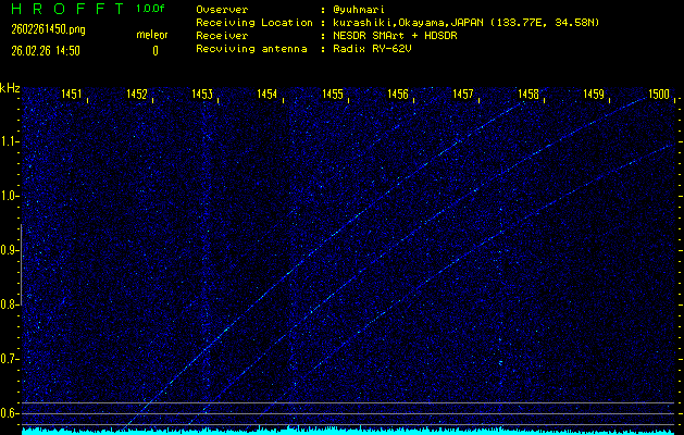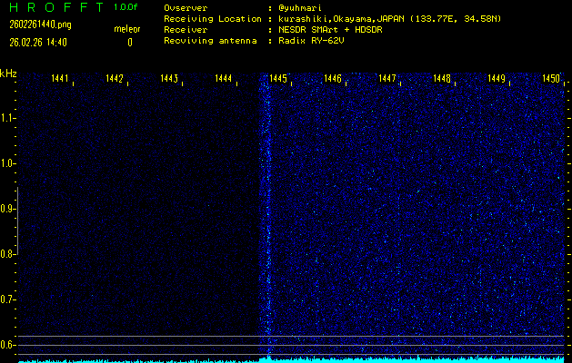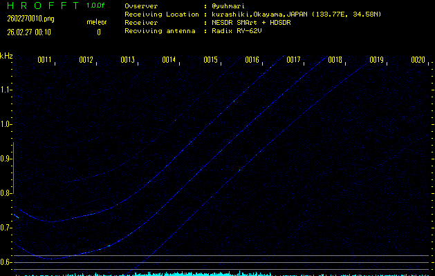 過去のデータは「流星電波観測国際プロジェクト」様サイト内のFRO LIVE in 倉敷(岡山県)でもご覧いただけます。(現在、送信を停止しています)