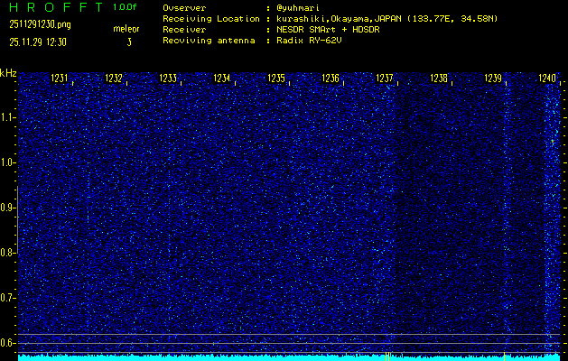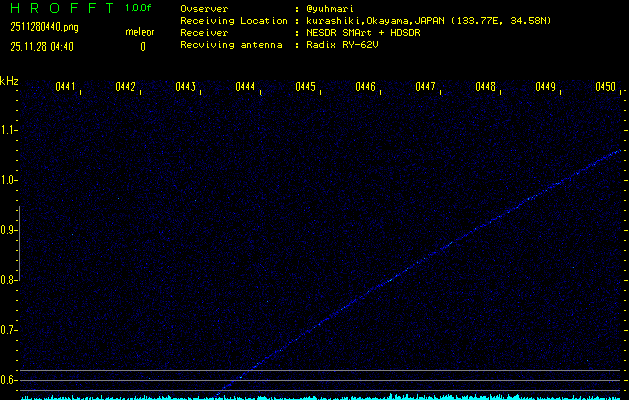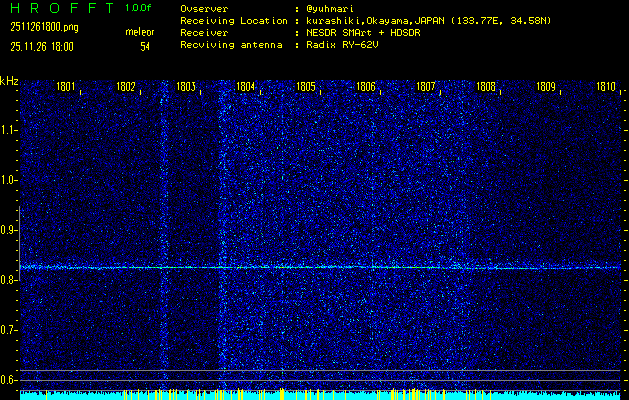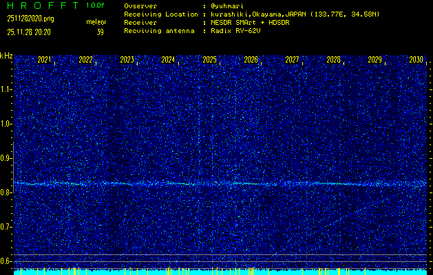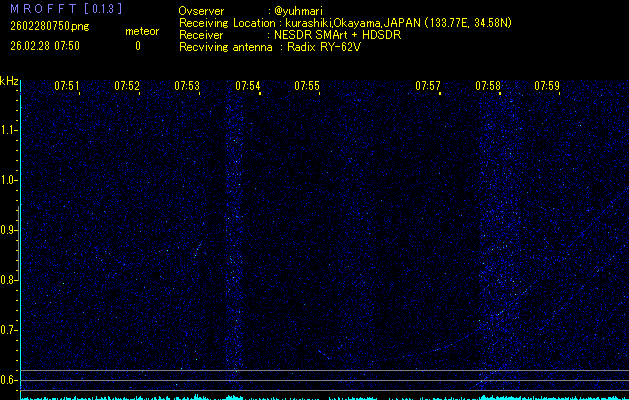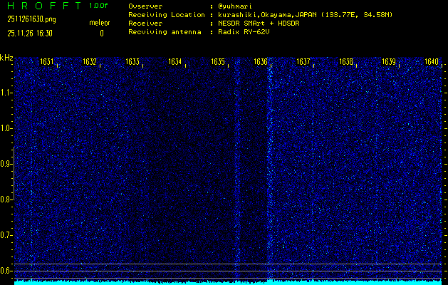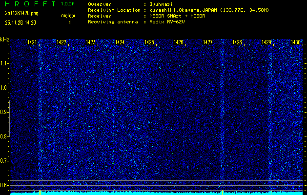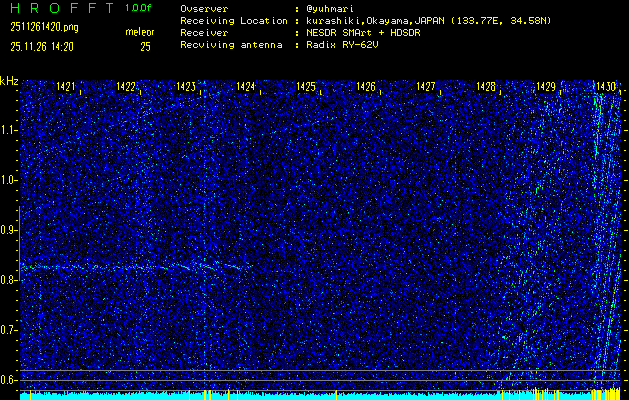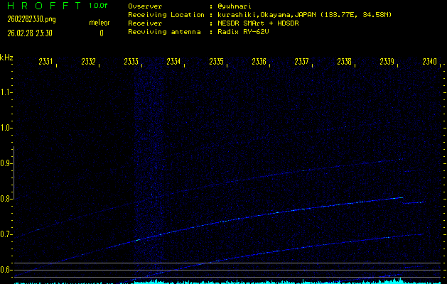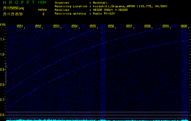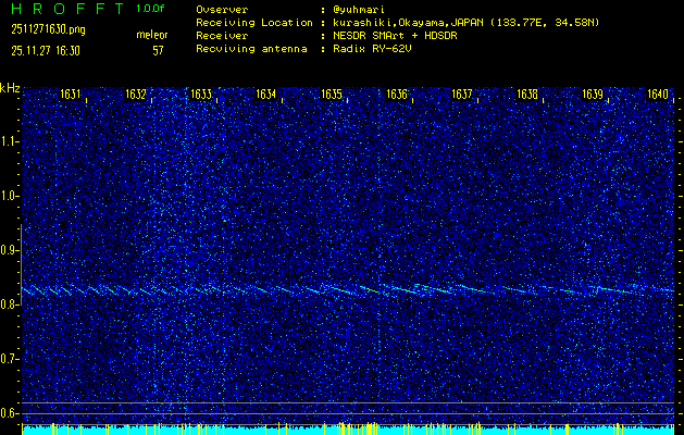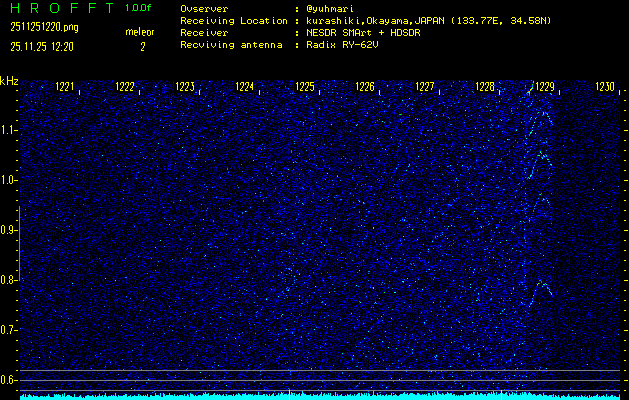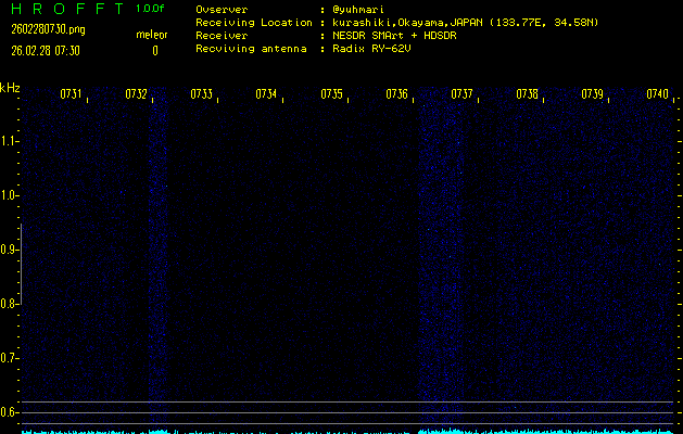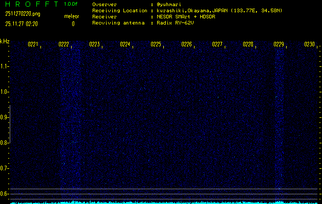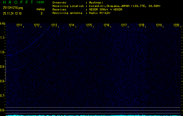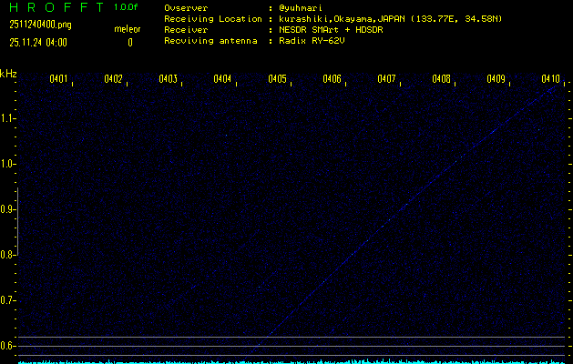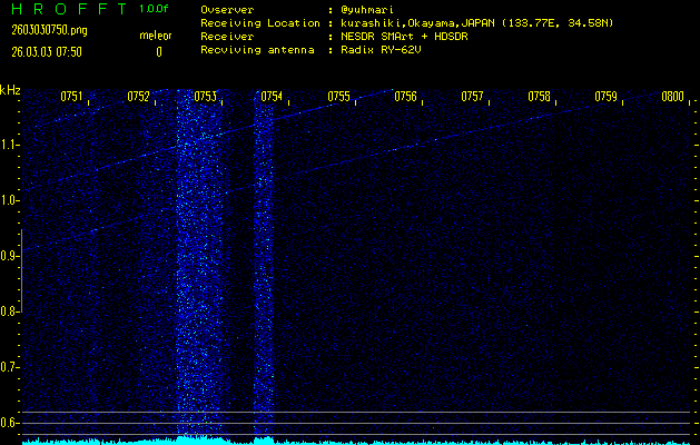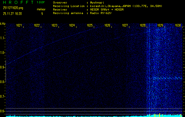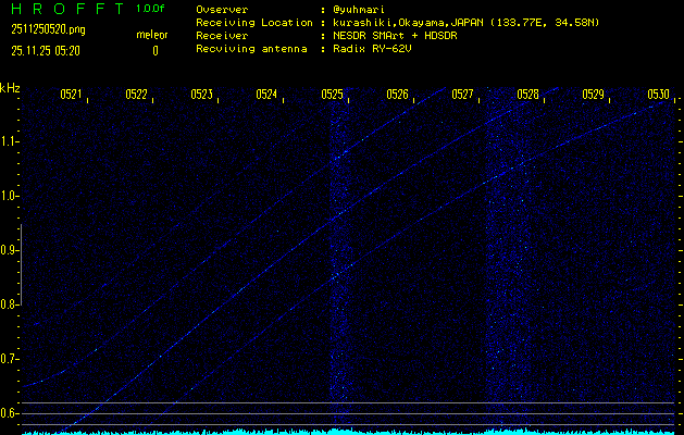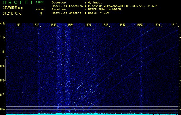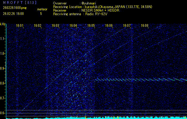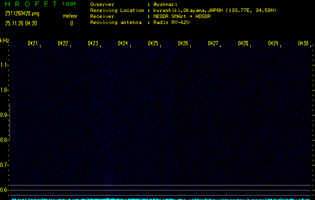 過去のデータは「流星電波観測国際プロジェクト」様サイト内のFRO LIVE in 倉敷(岡山県)でもご覧いただけます。(現在、送信を停止しています)