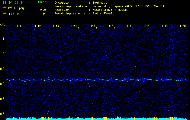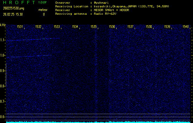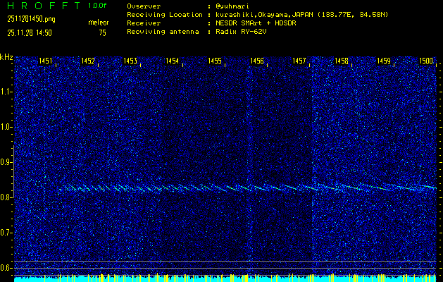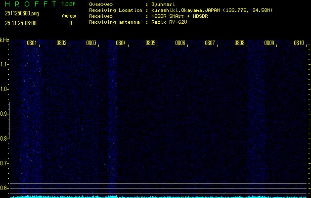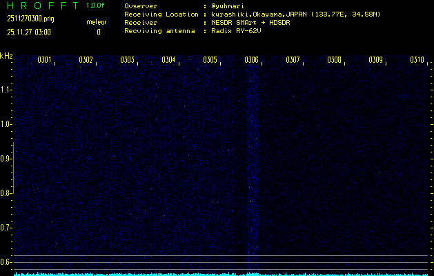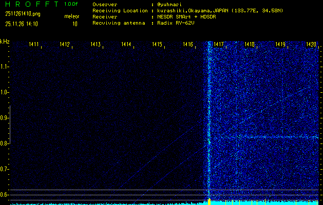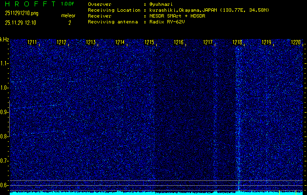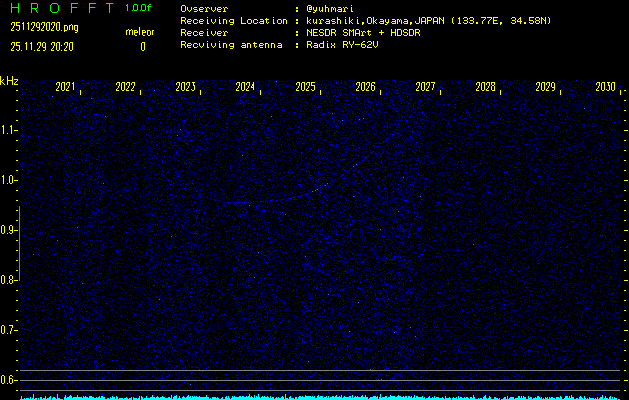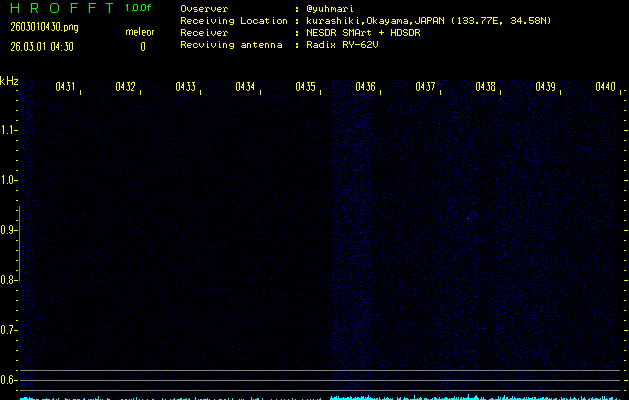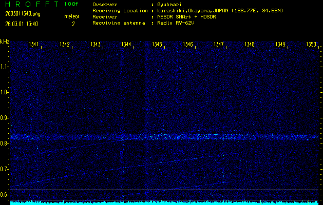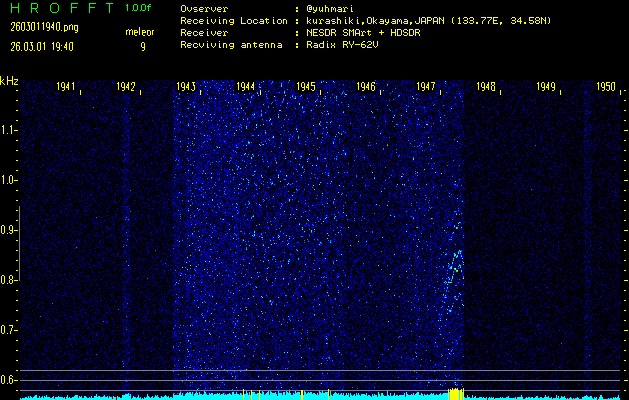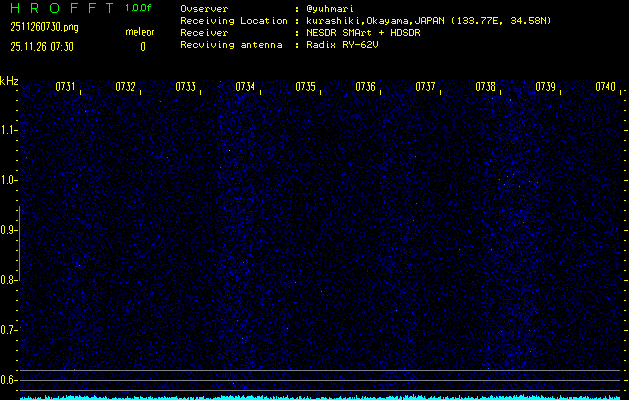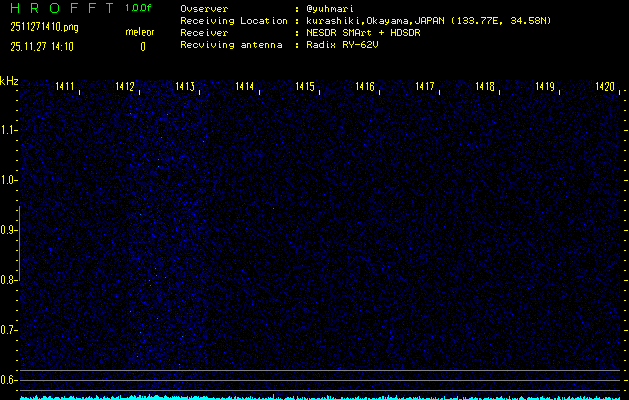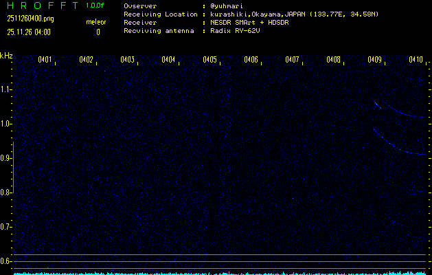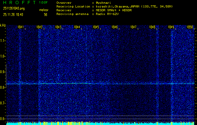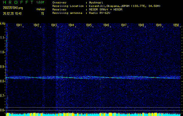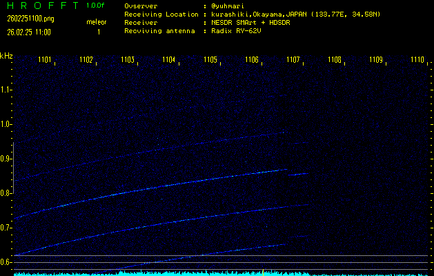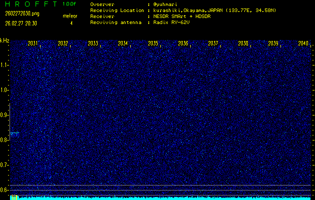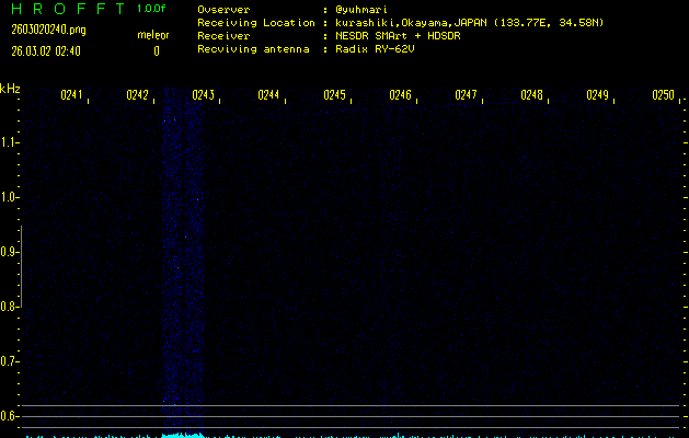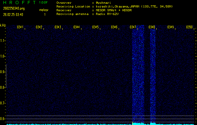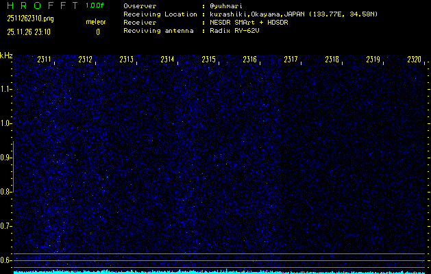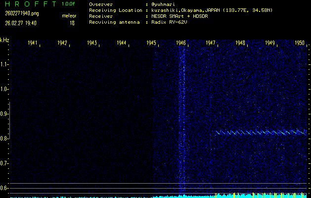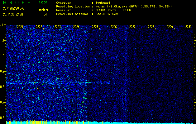 過去のデータは「流星電波観測国際プロジェクト」様サイト内のFRO LIVE in 倉敷(岡山県)でもご覧いただけます。(現在、送信を停止しています)