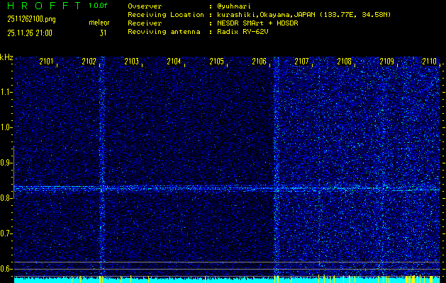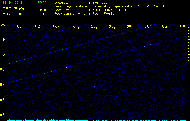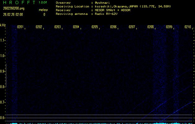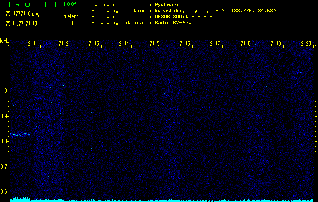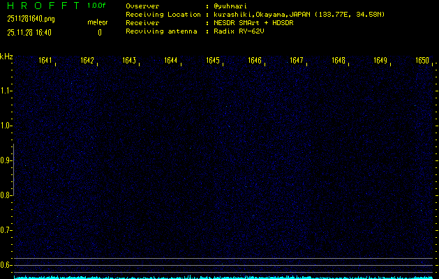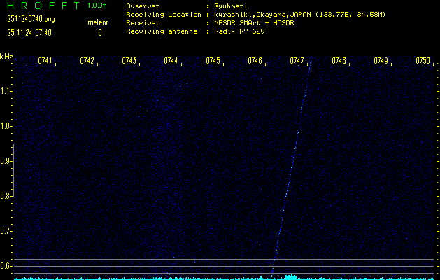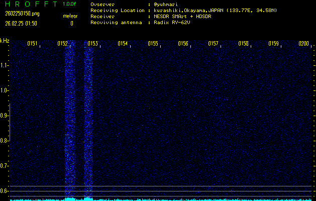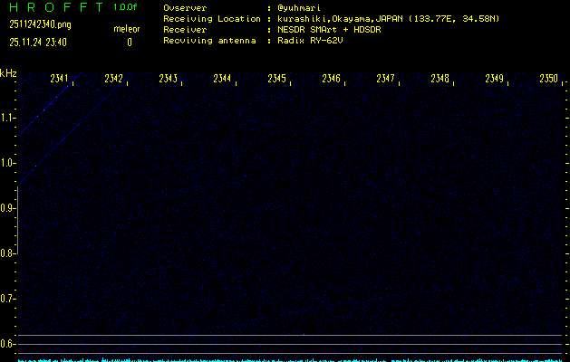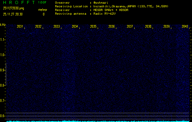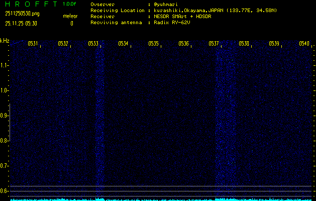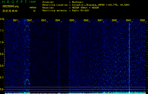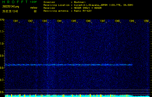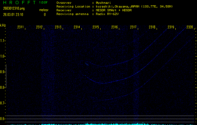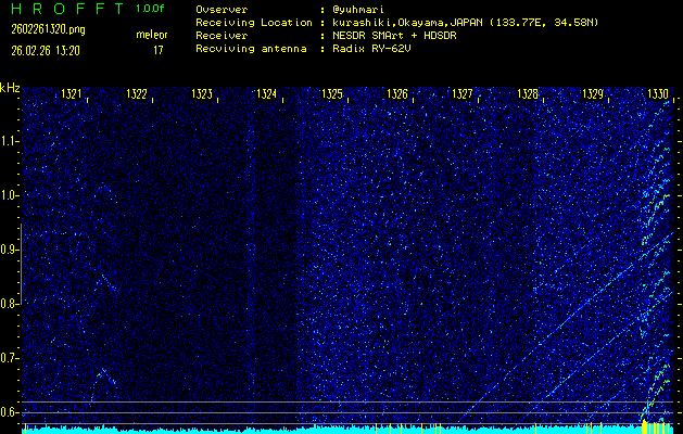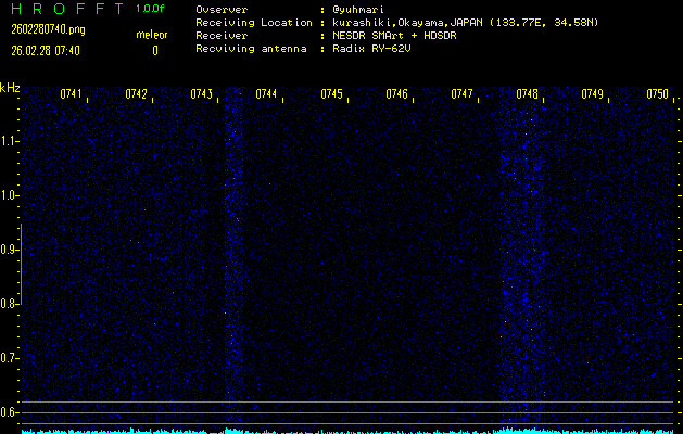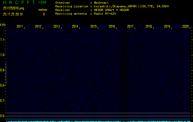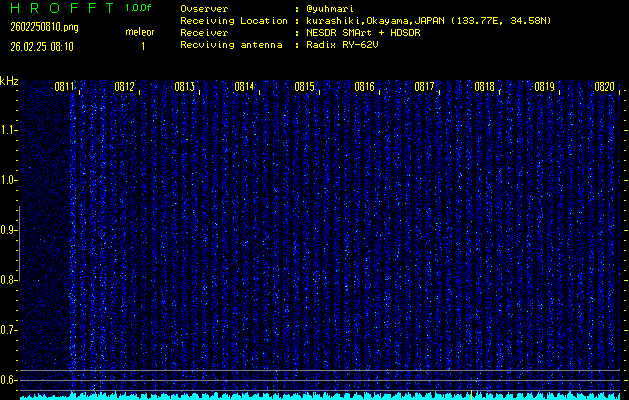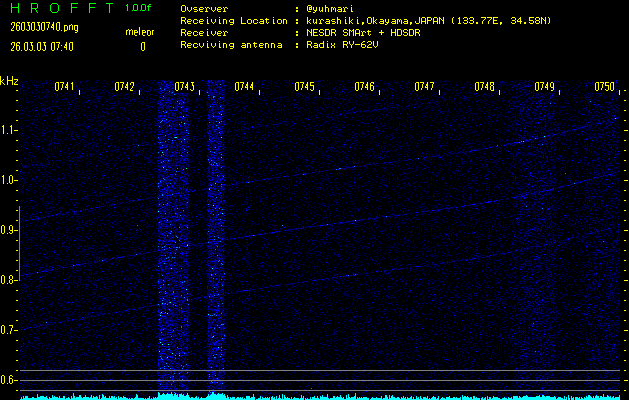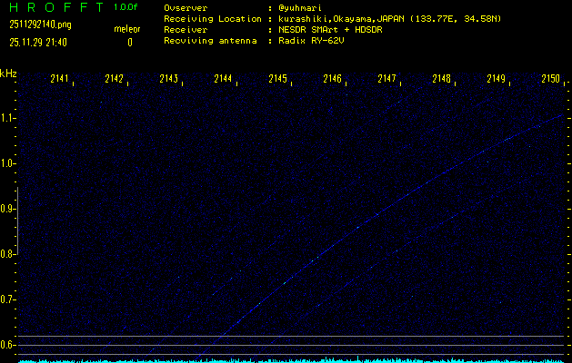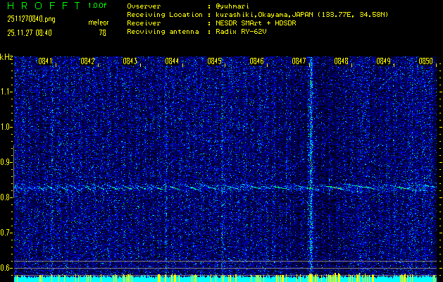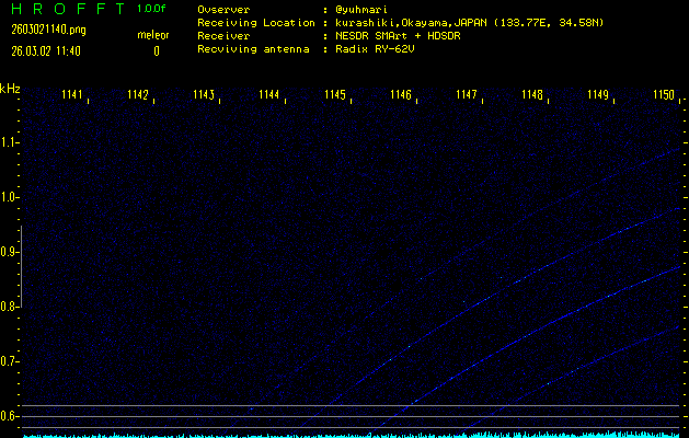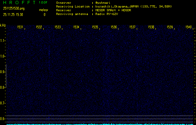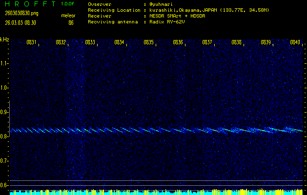 過去のデータは「流星電波観測国際プロジェクト」様サイト内のFRO LIVE in 倉敷(岡山県)でもご覧いただけます。(現在、送信を停止しています)