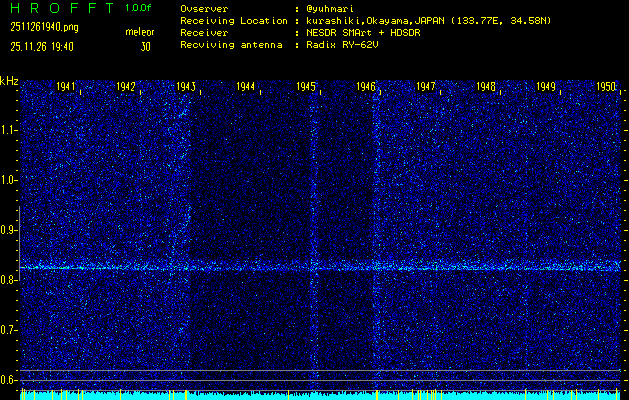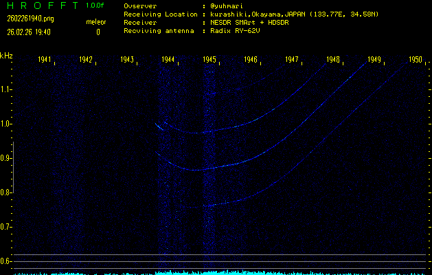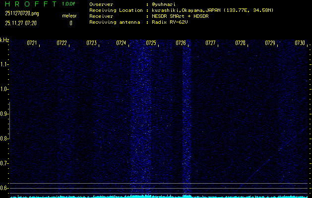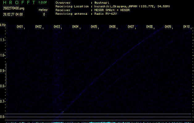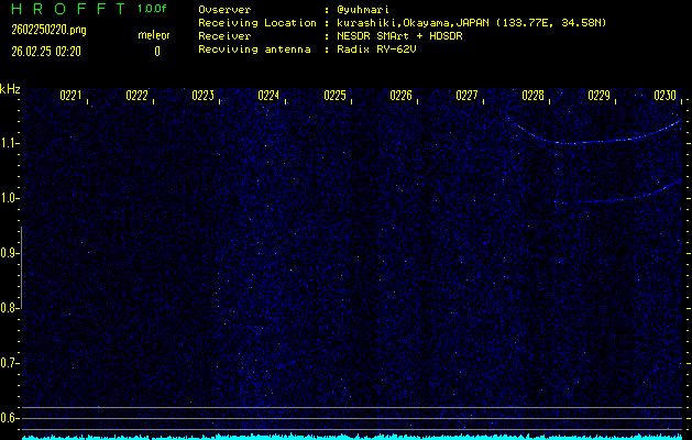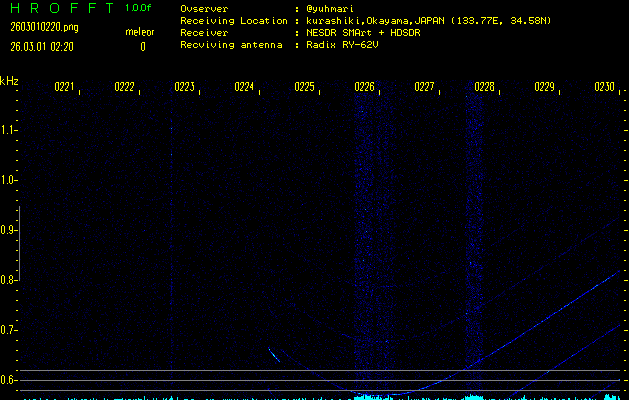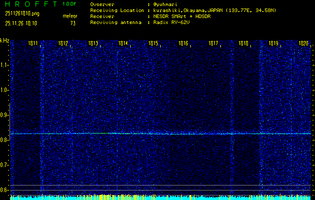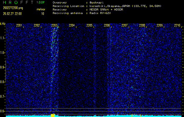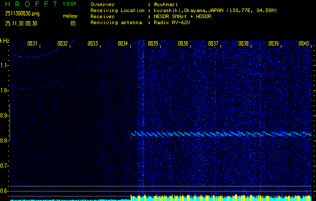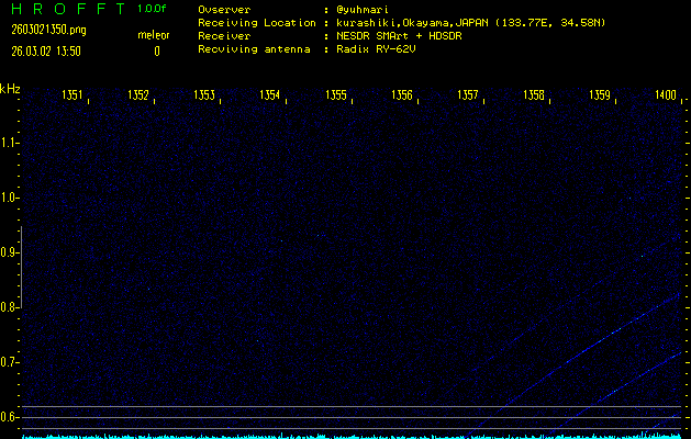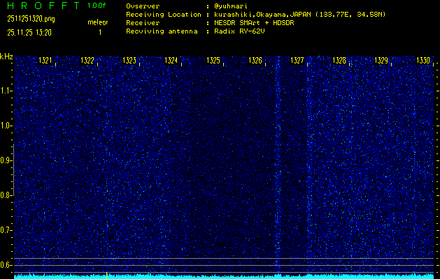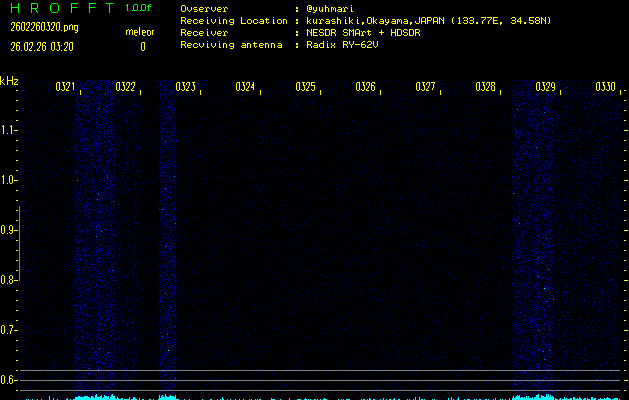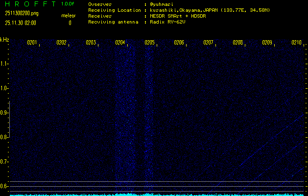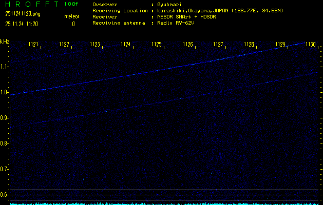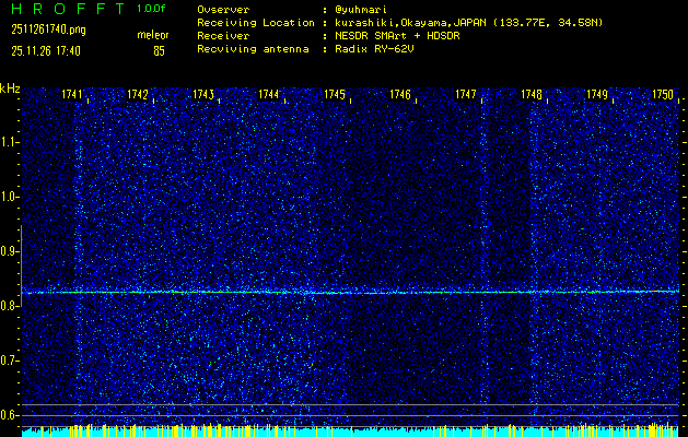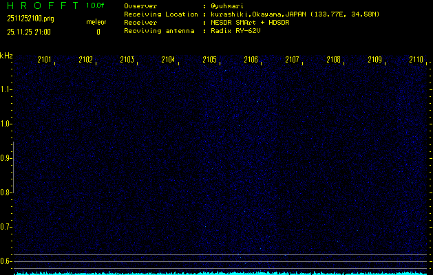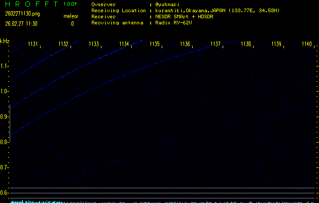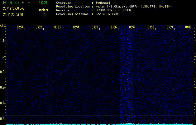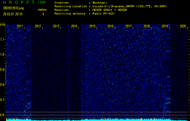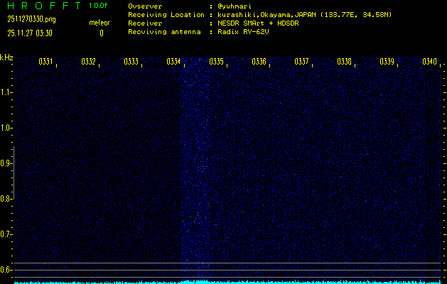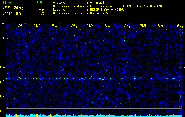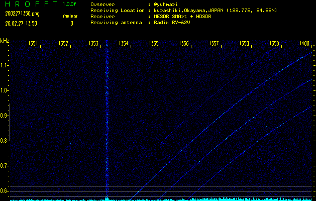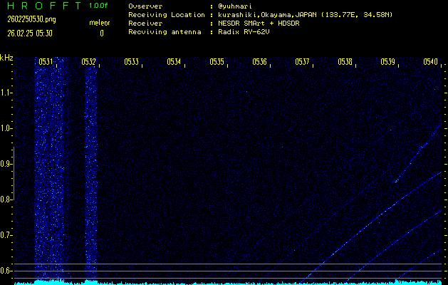 過去のデータは「流星電波観測国際プロジェクト」様サイト内のFRO LIVE in 倉敷(岡山県)でもご覧いただけます。(現在、送信を停止しています)