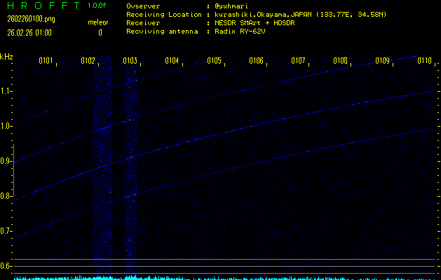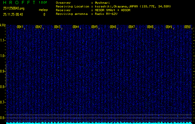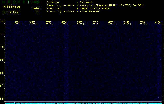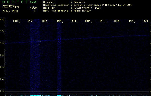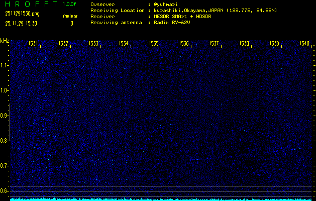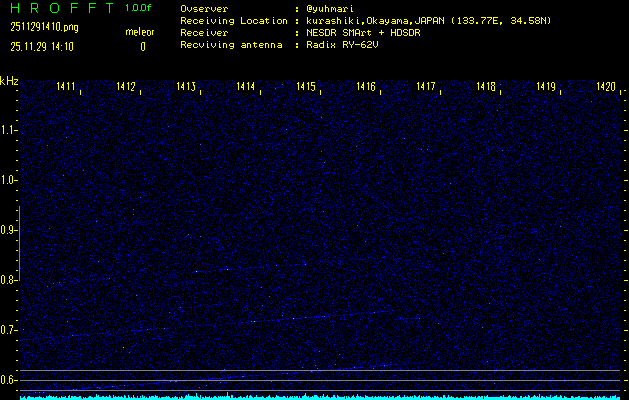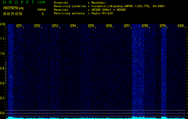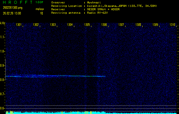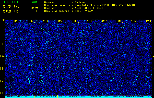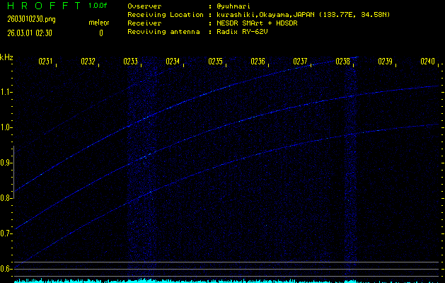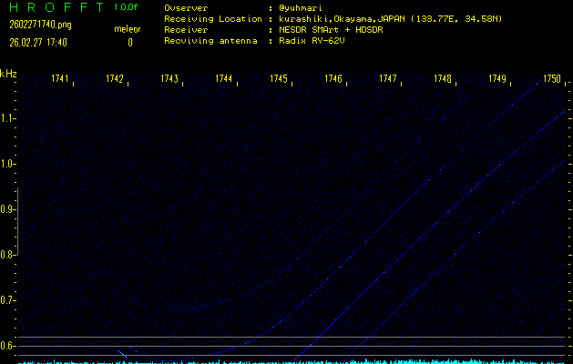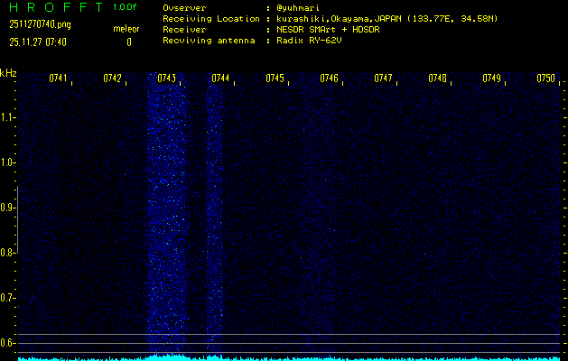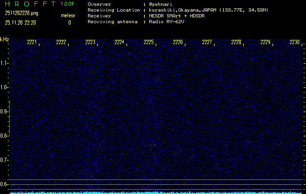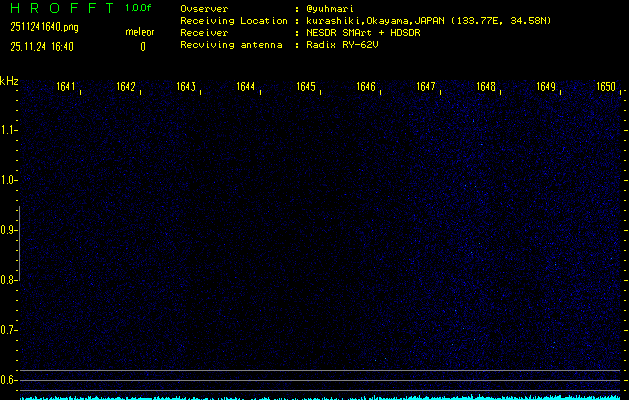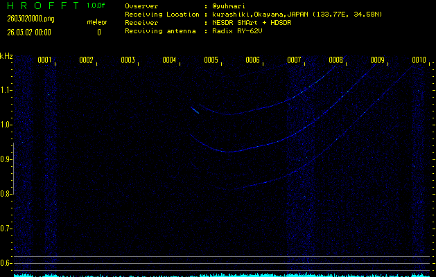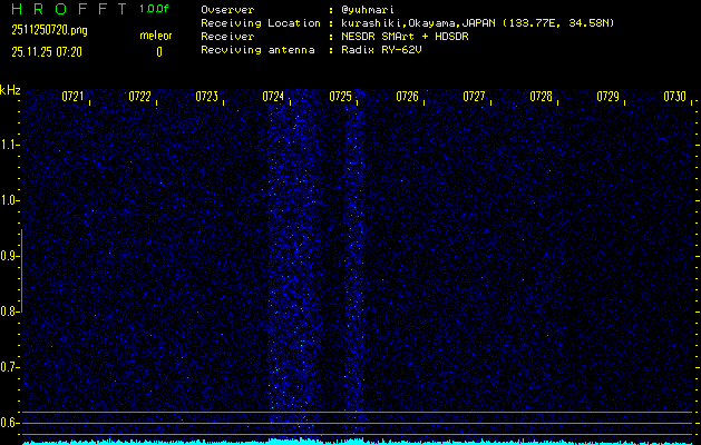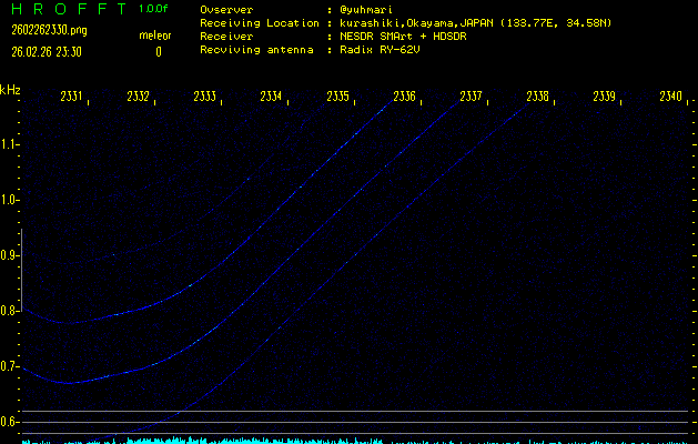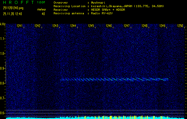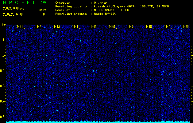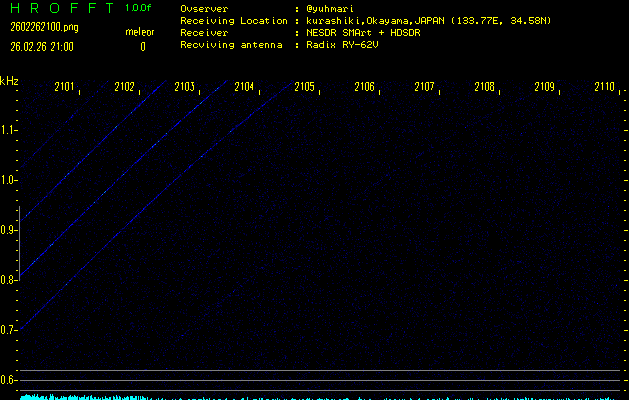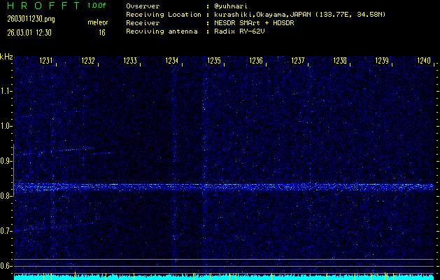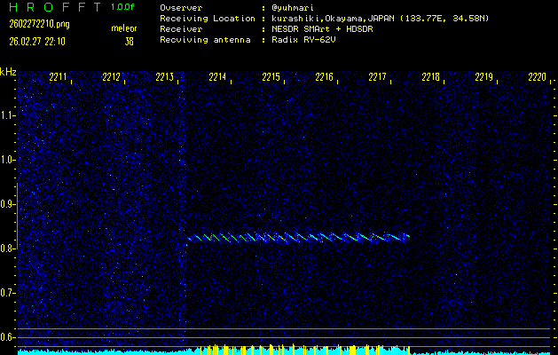 過去のデータは「流星電波観測国際プロジェクト」様サイト内のFRO LIVE in 倉敷(岡山県)でもご覧いただけます。(現在、送信を停止しています)