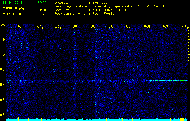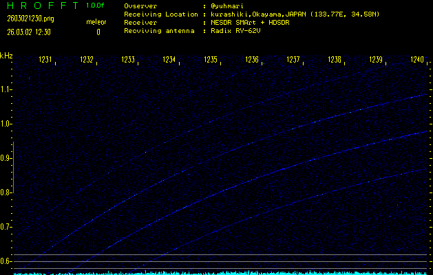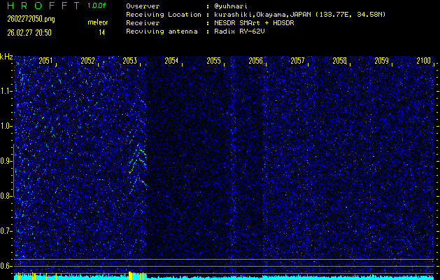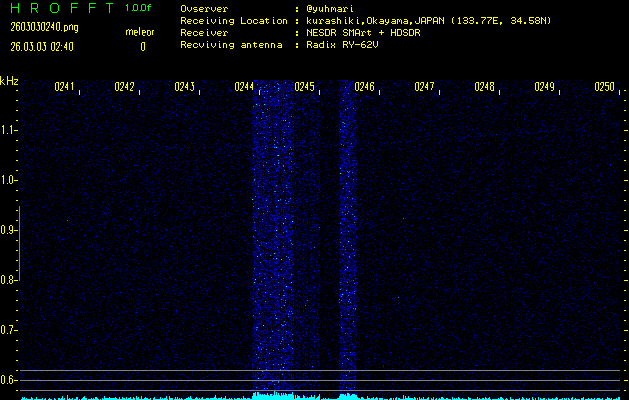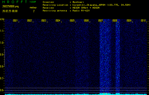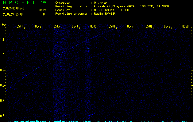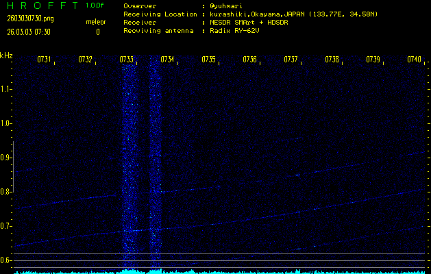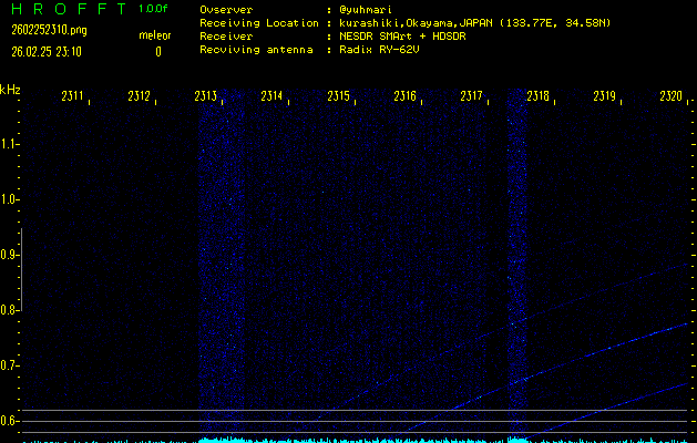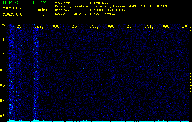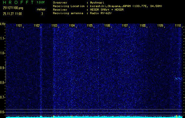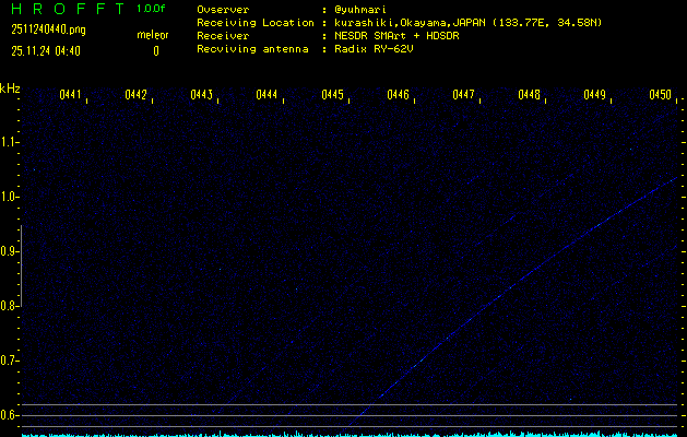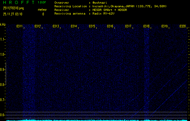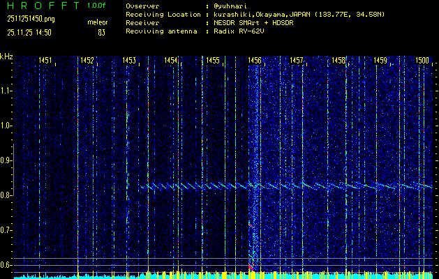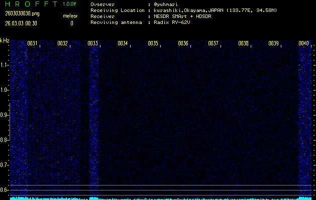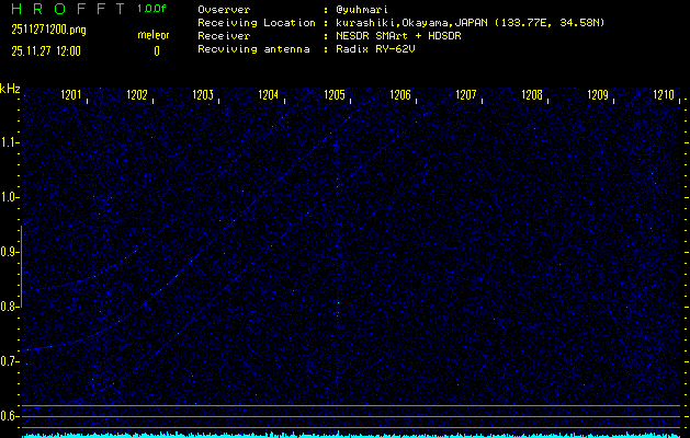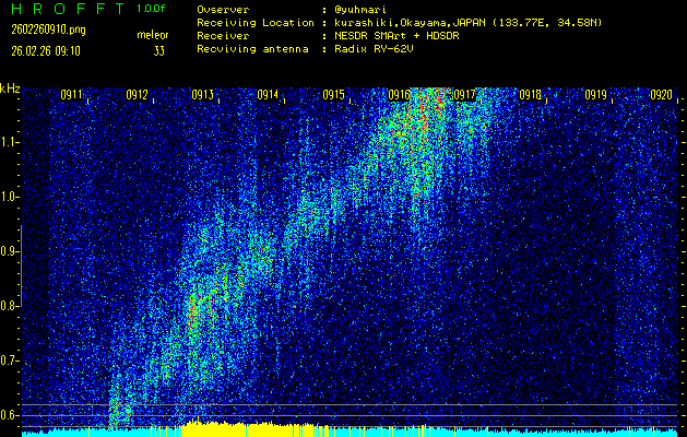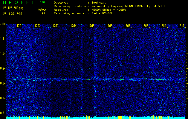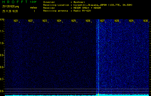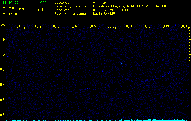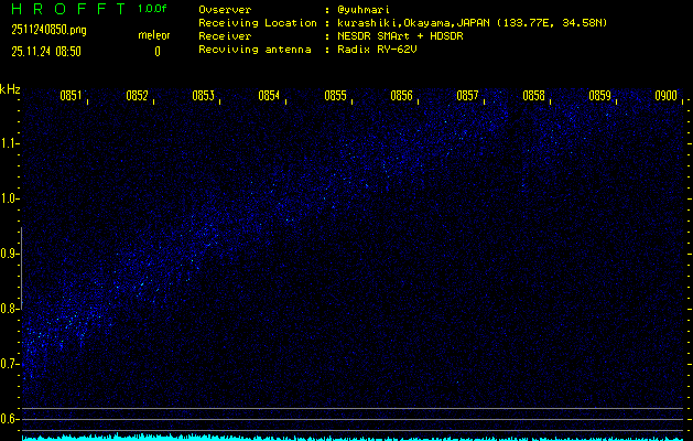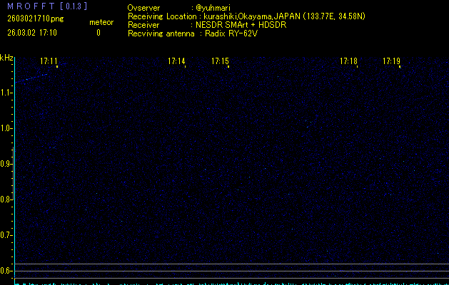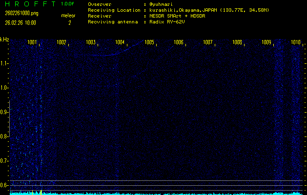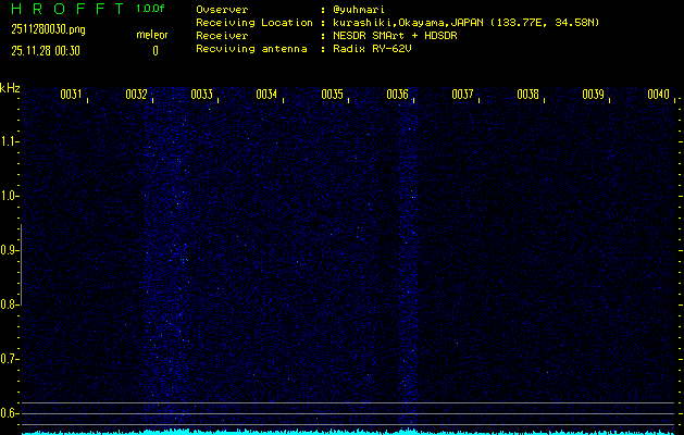 過去のデータは「流星電波観測国際プロジェクト」様サイト内のFRO LIVE in 倉敷(岡山県)でもご覧いただけます。(現在、送信を停止しています)