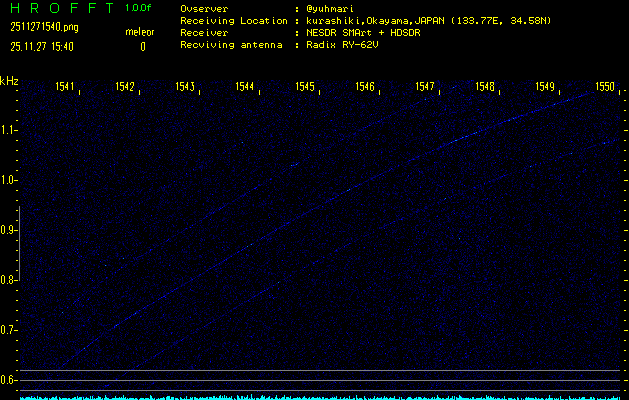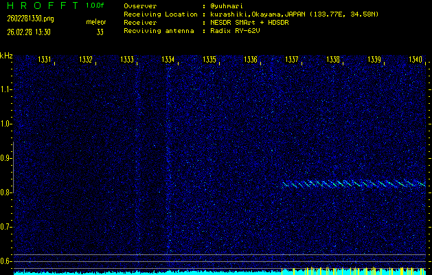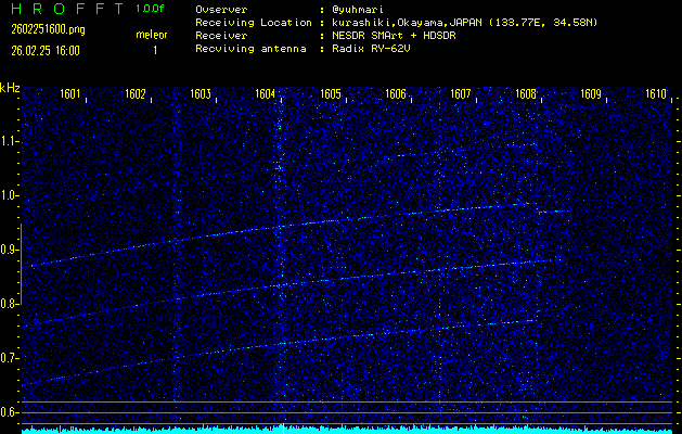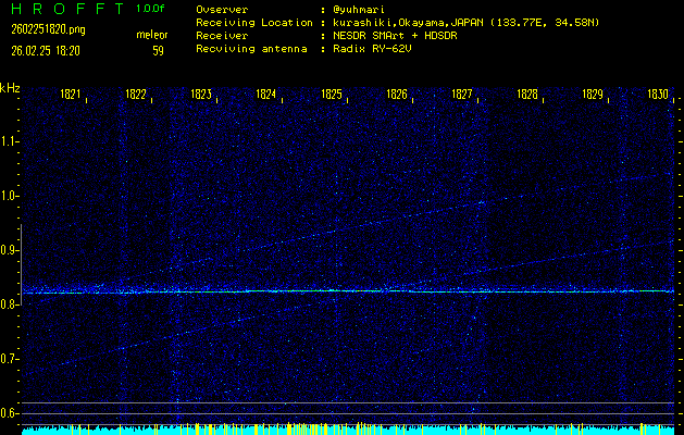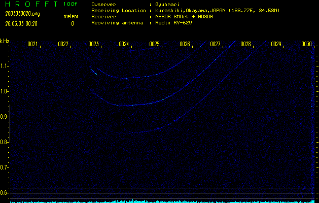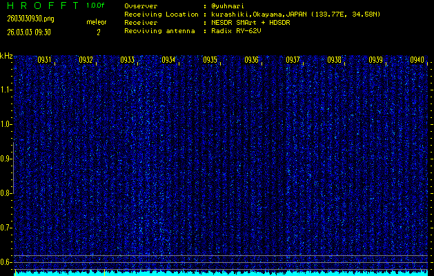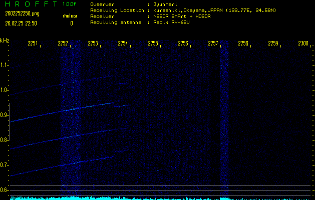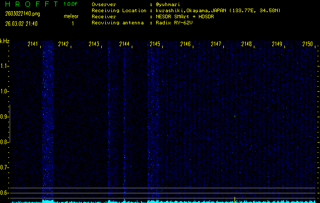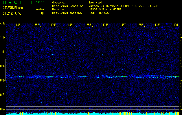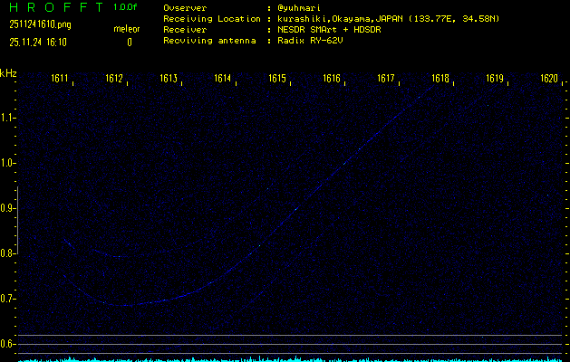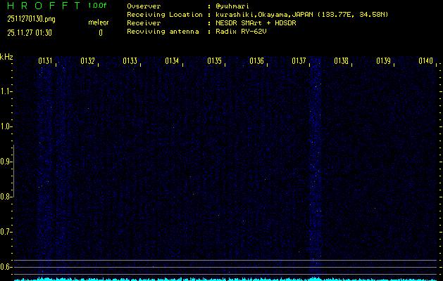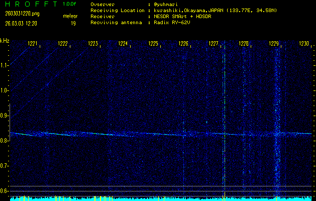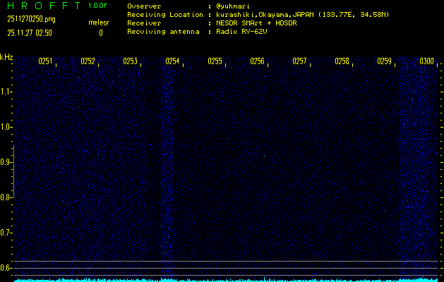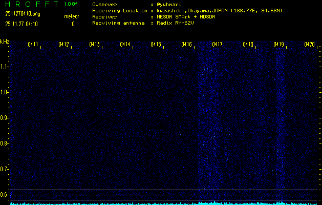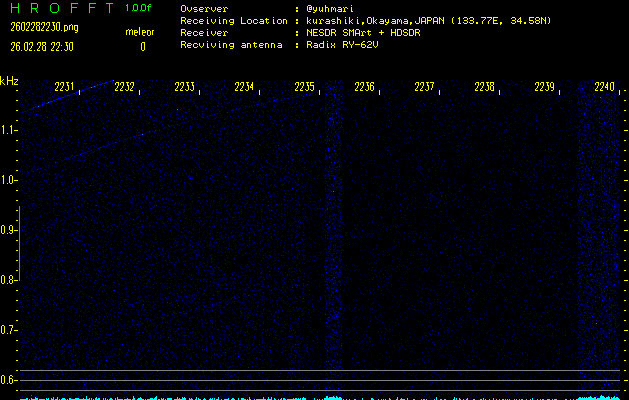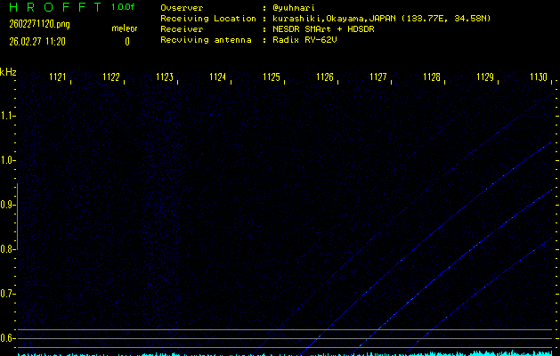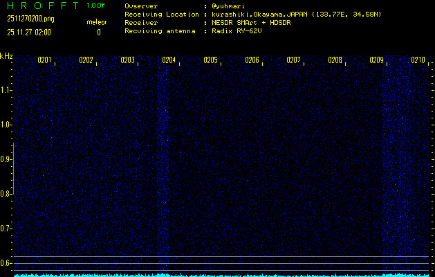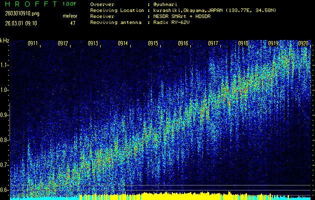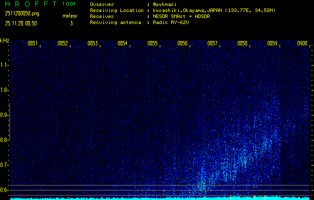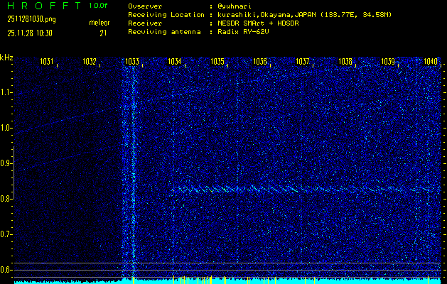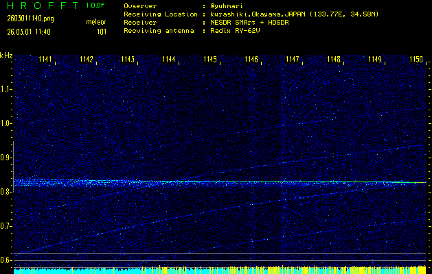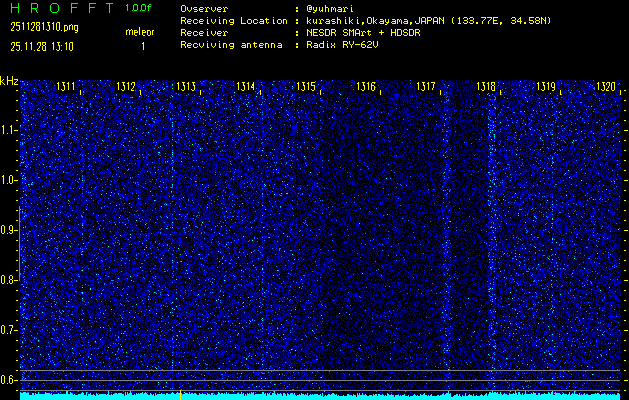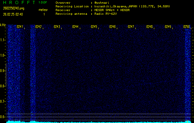 過去のデータは「流星電波観測国際プロジェクト」様サイト内のFRO LIVE in 倉敷(岡山県)でもご覧いただけます。(現在、送信を停止しています)