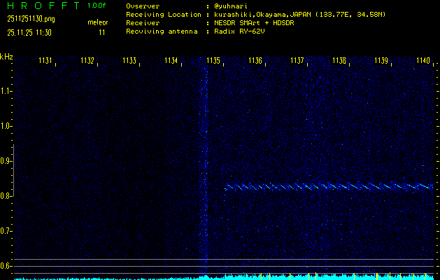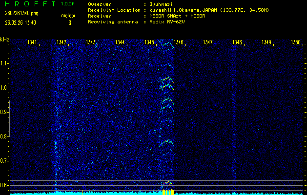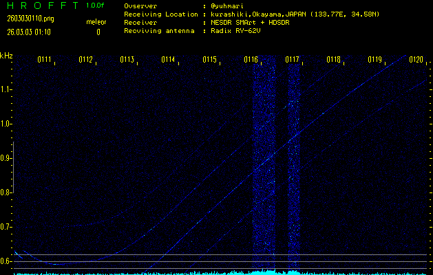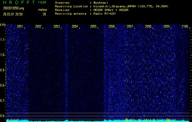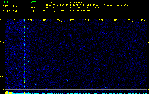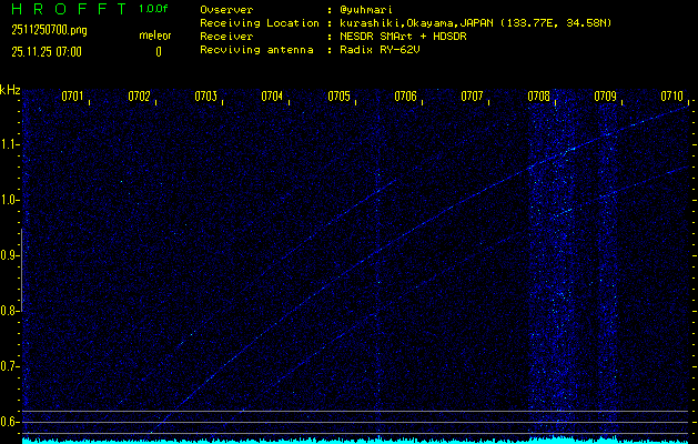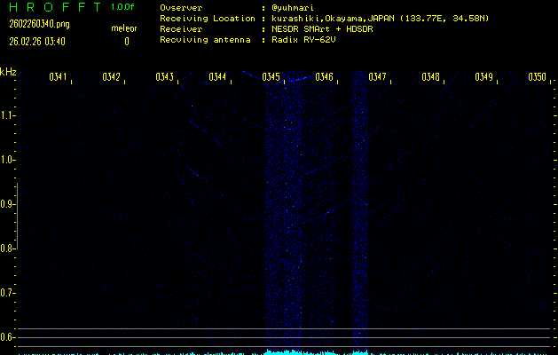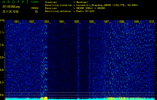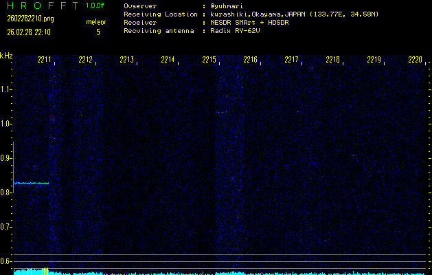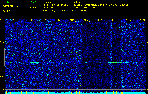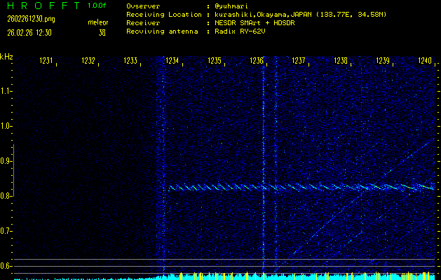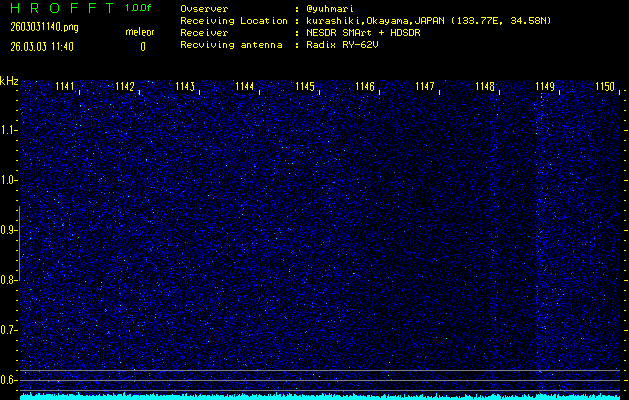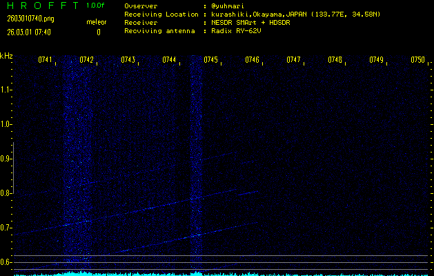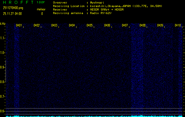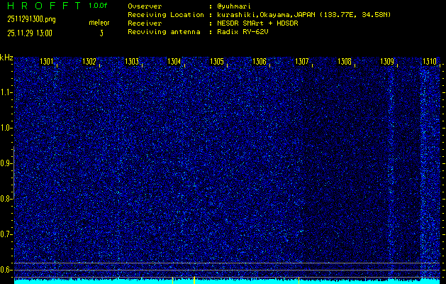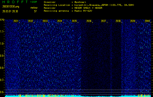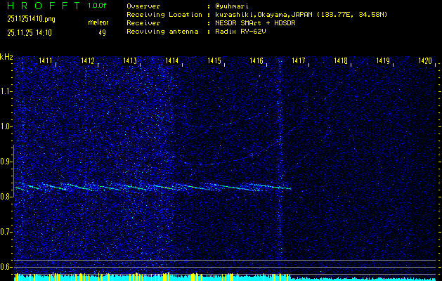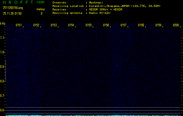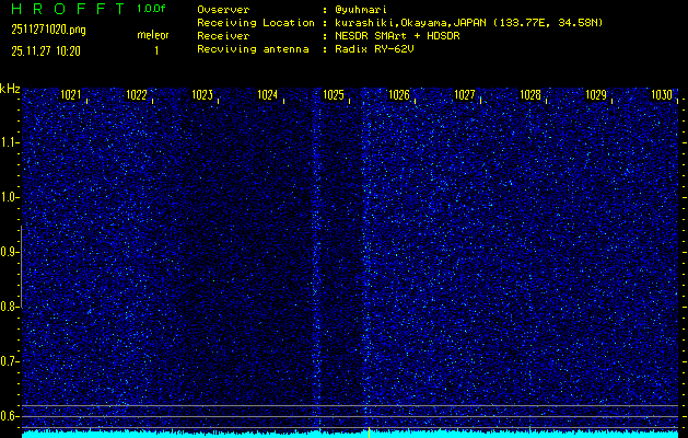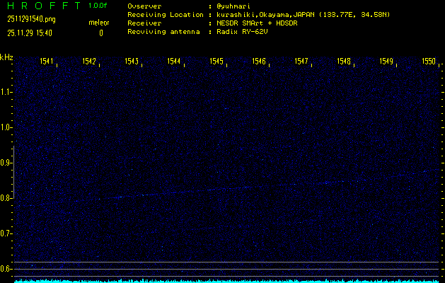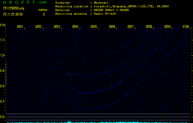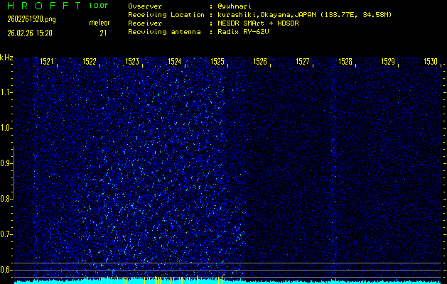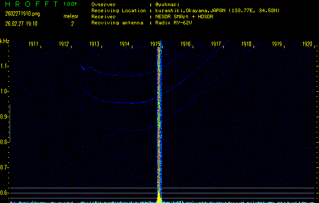 過去のデータは「流星電波観測国際プロジェクト」様サイト内のFRO LIVE in 倉敷(岡山県)でもご覧いただけます。(現在、送信を停止しています)