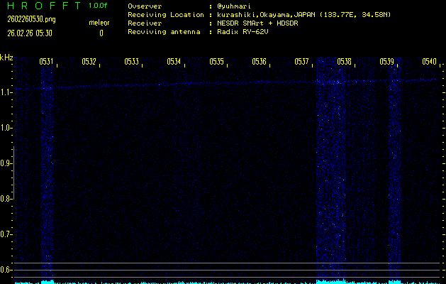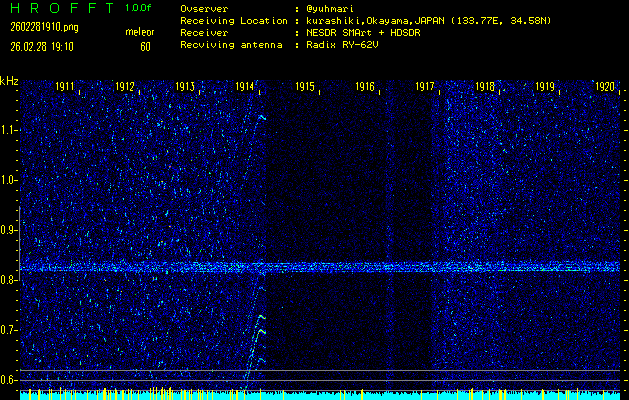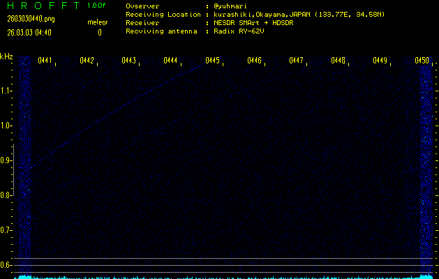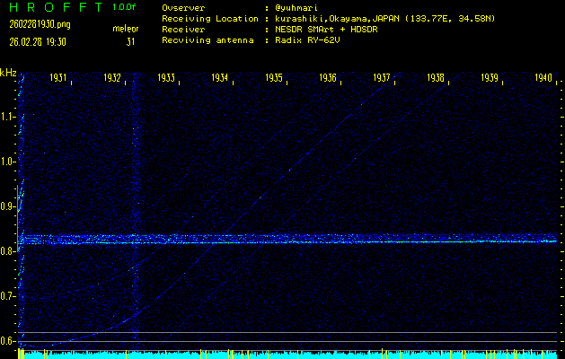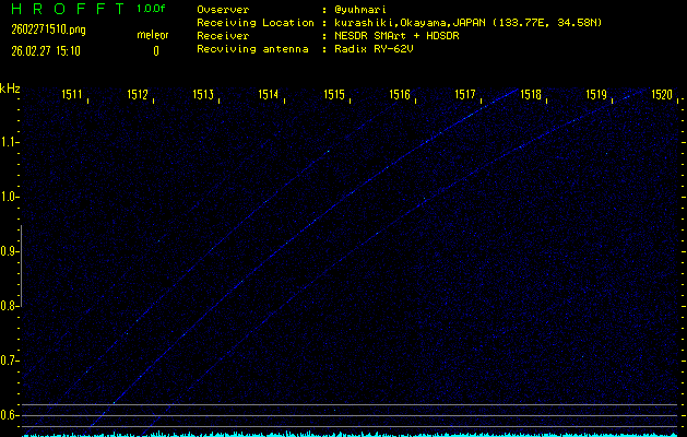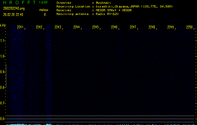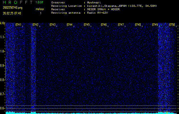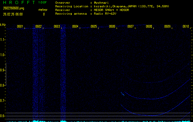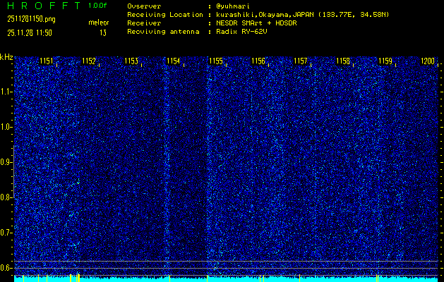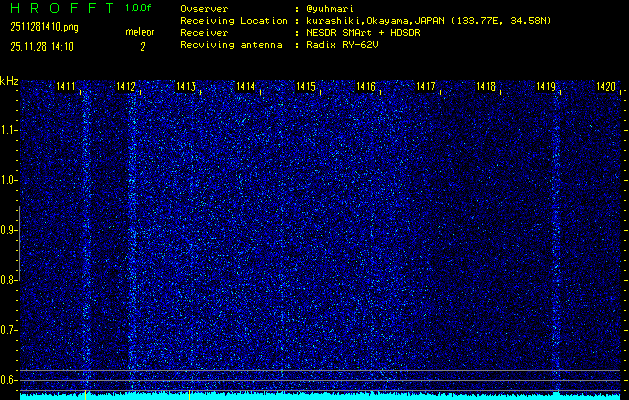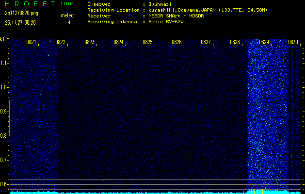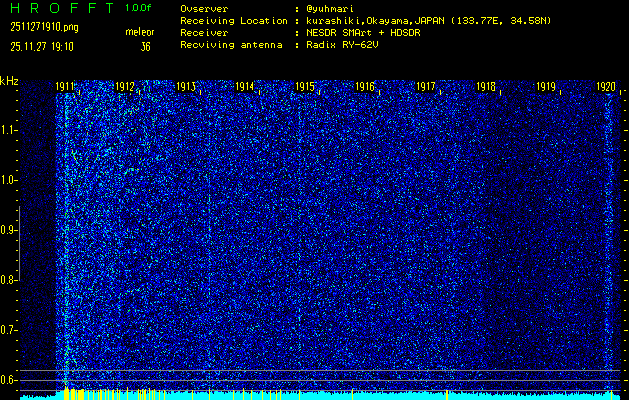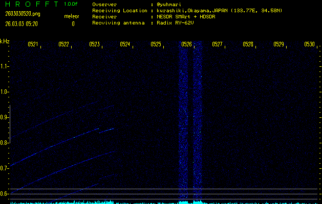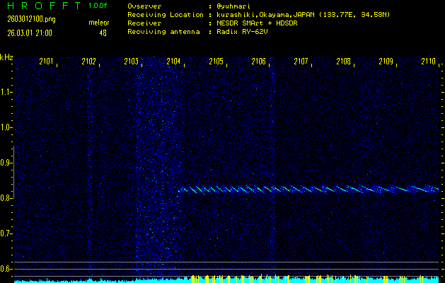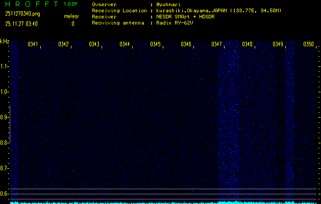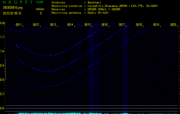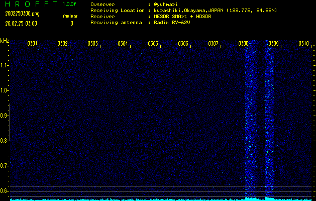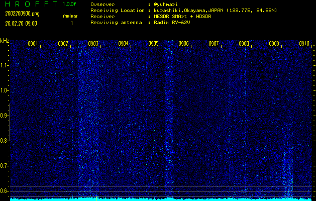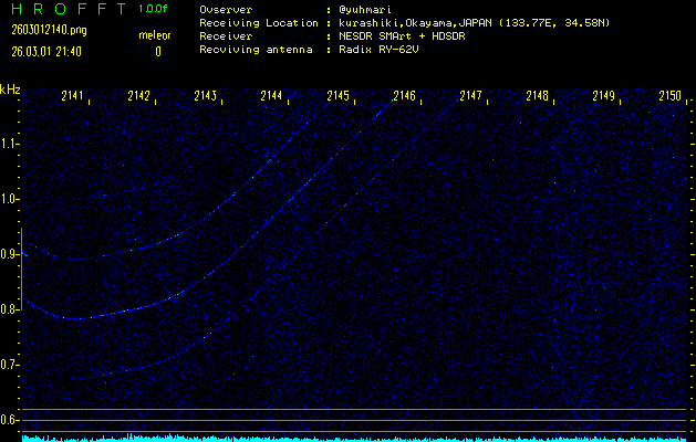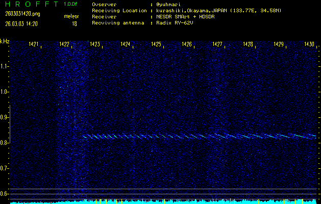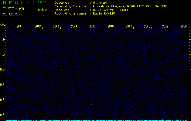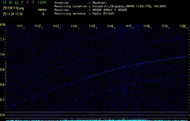 過去のデータは「流星電波観測国際プロジェクト」様サイト内のFRO LIVE in 倉敷(岡山県)でもご覧いただけます。(現在、送信を停止しています)