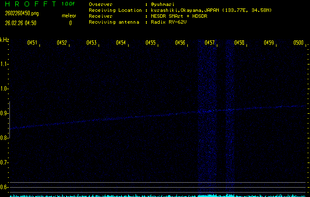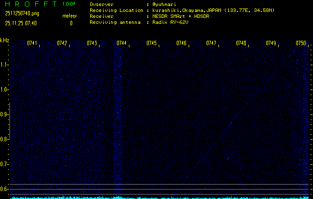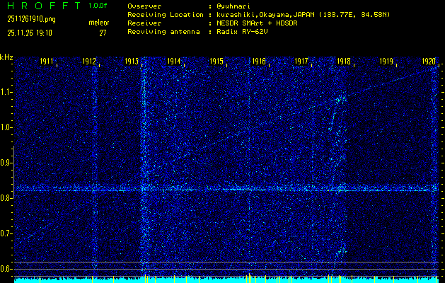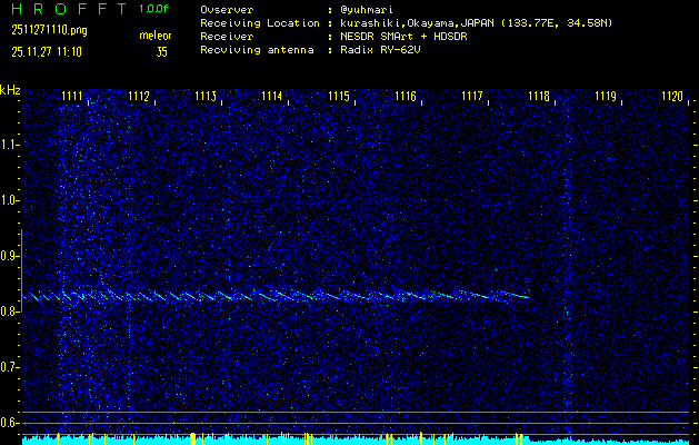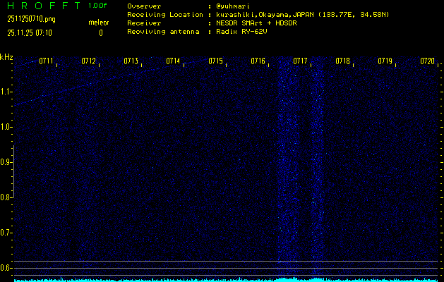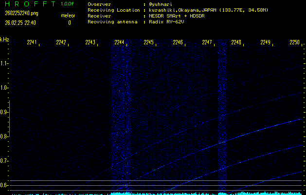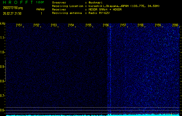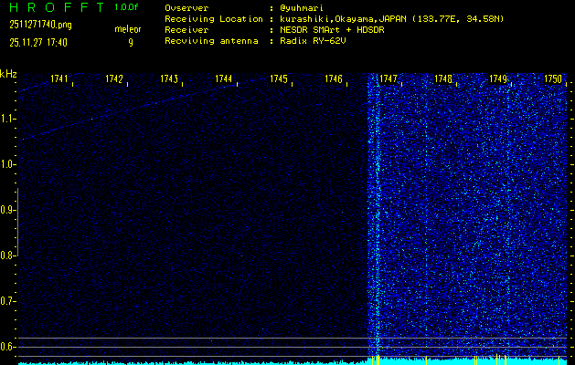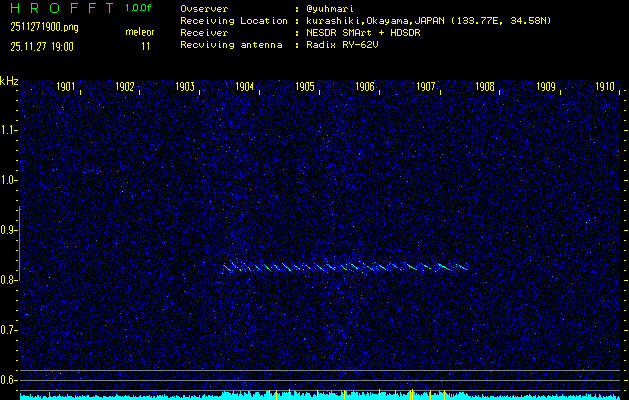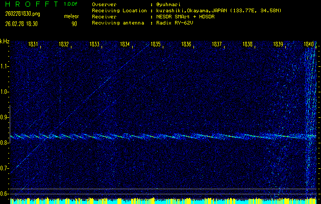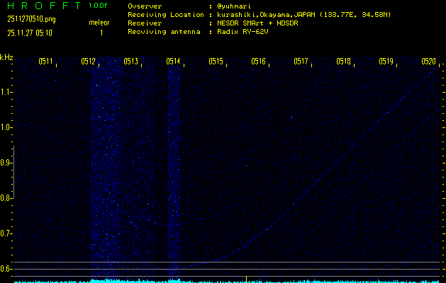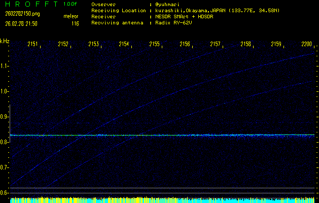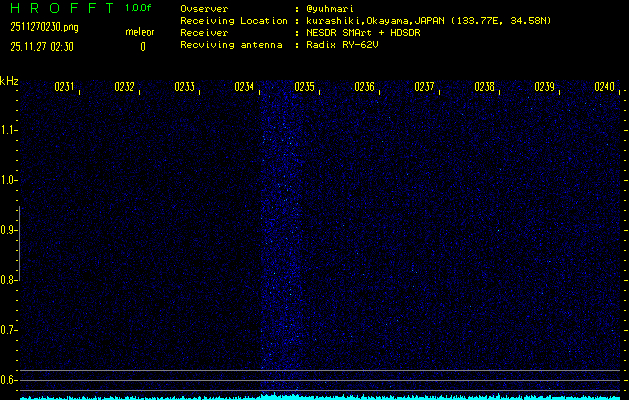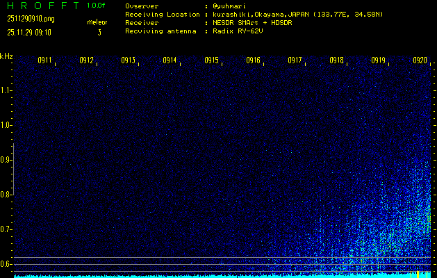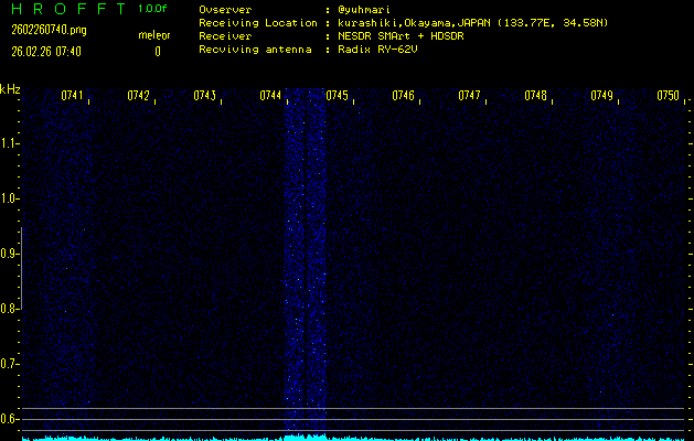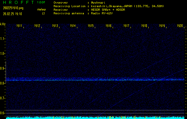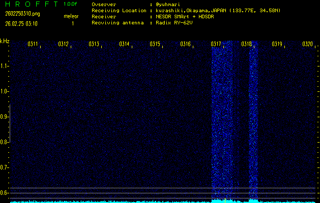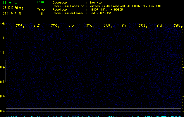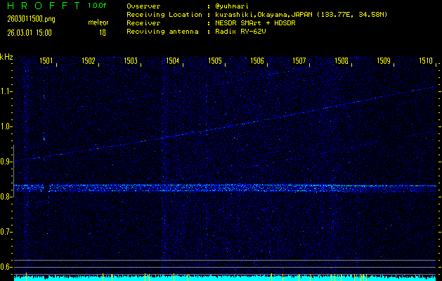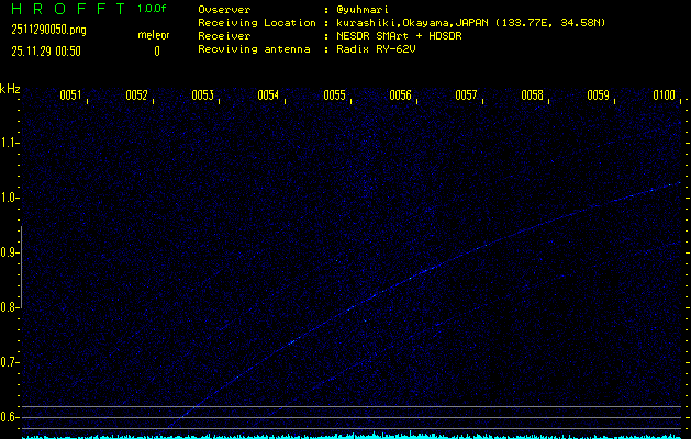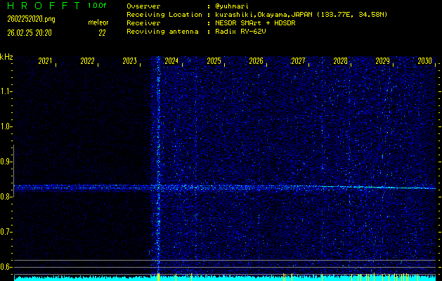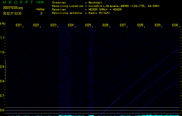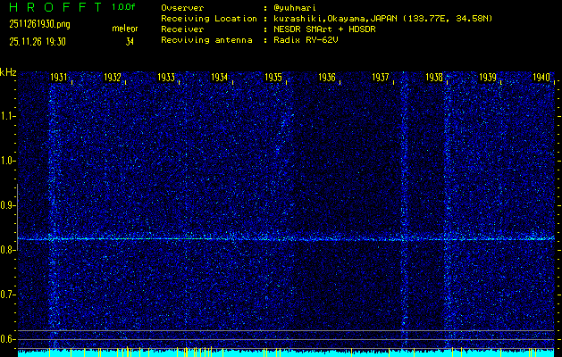 過去のデータは「流星電波観測国際プロジェクト」様サイト内のFRO LIVE in 倉敷(岡山県)でもご覧いただけます。(現在、送信を停止しています)