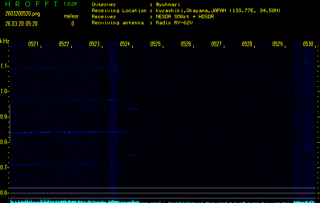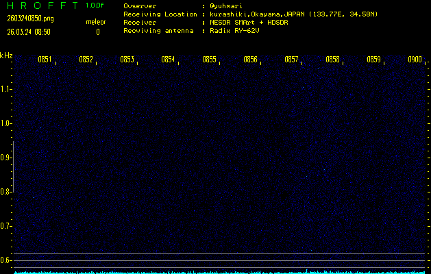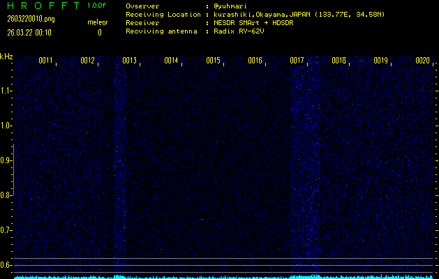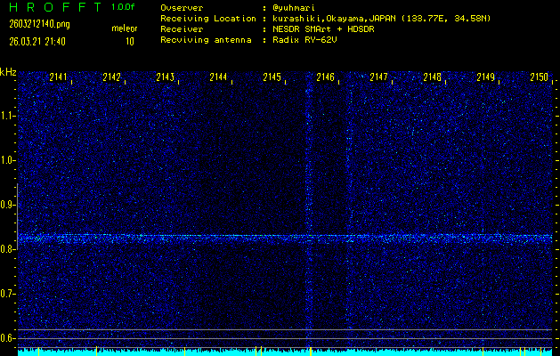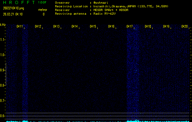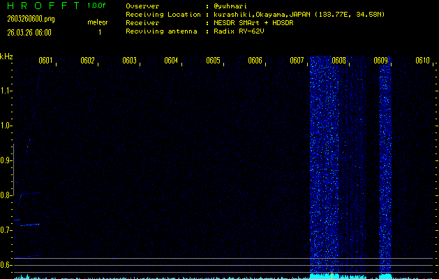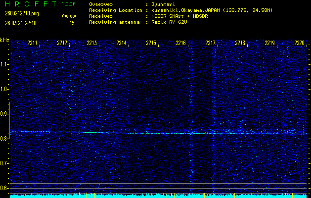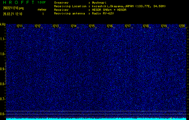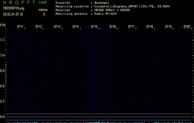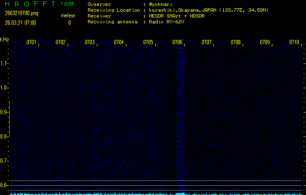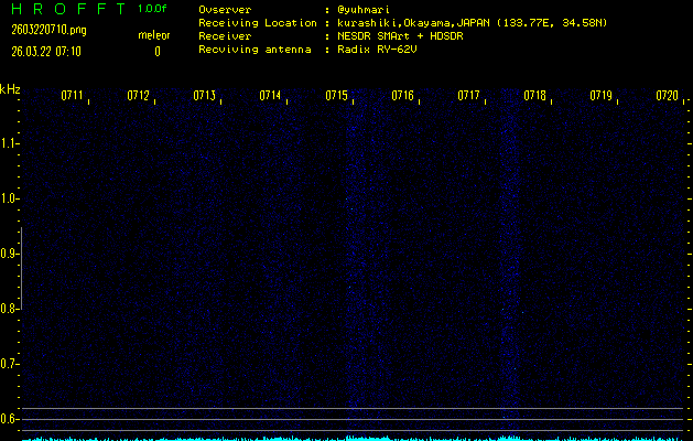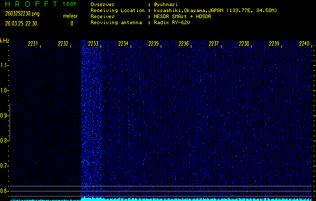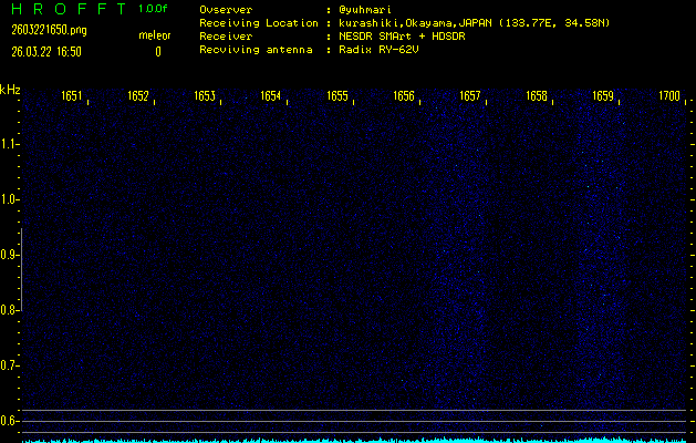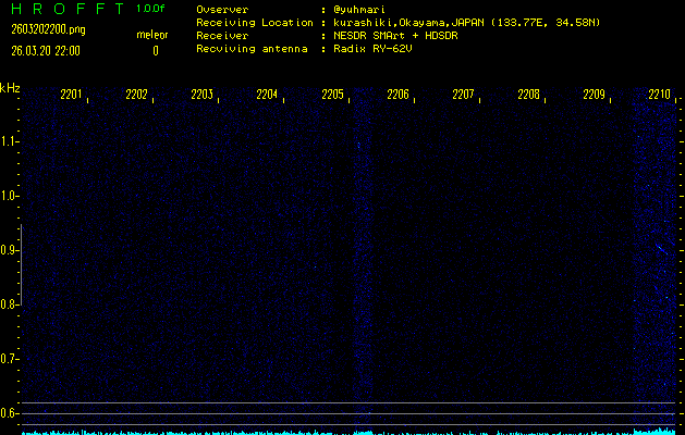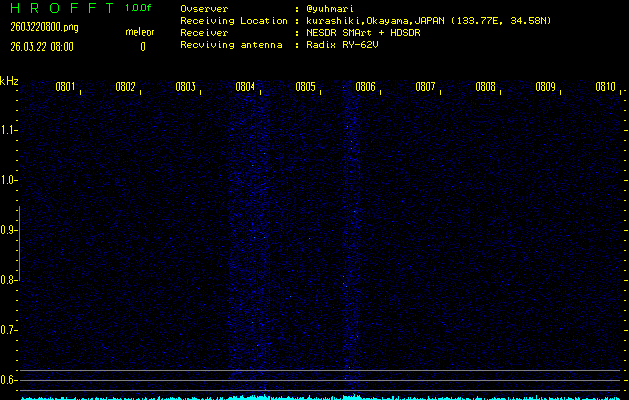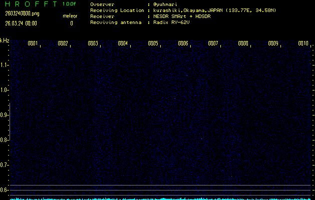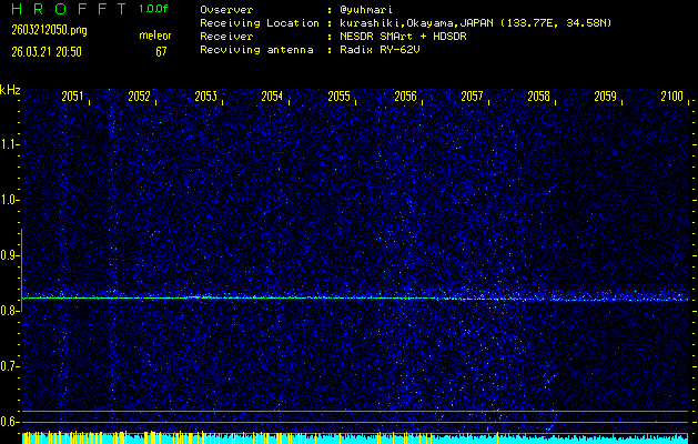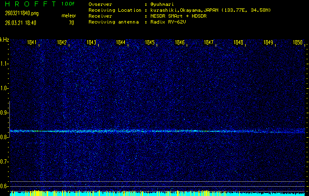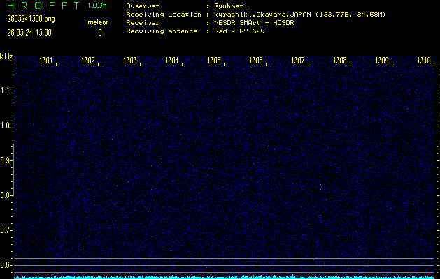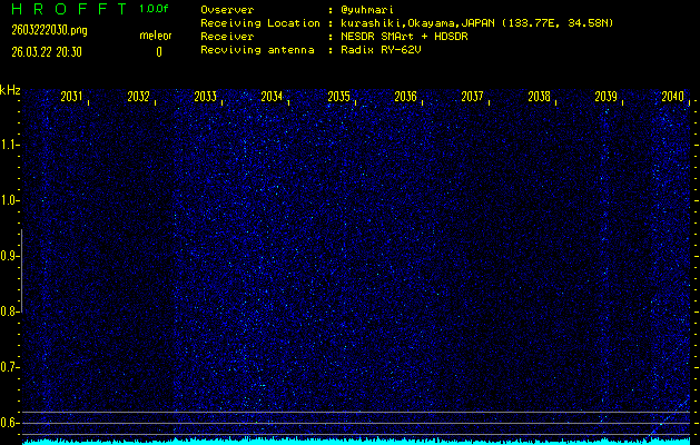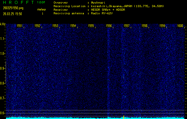 ただいま宮崎大学無線部OB会によって運用されているアマチュア無線50.017MHz(JA6YBR,50/10/1/0.1W,CW)を利用して試験受信を行っています。