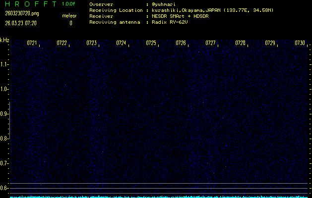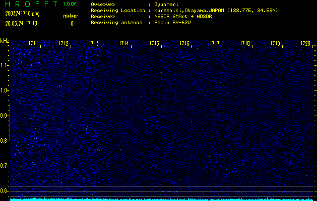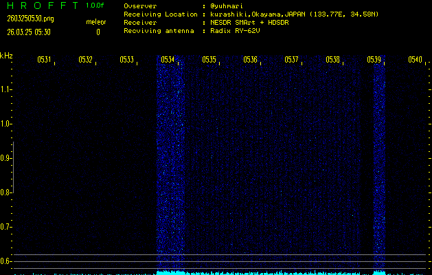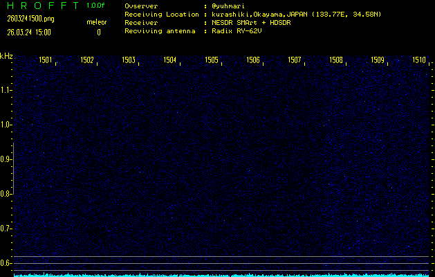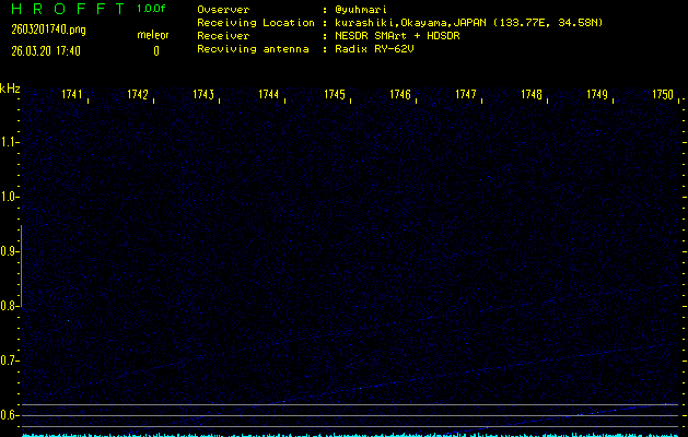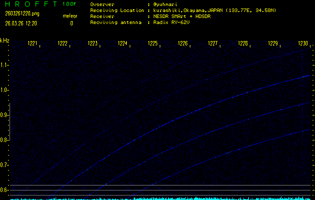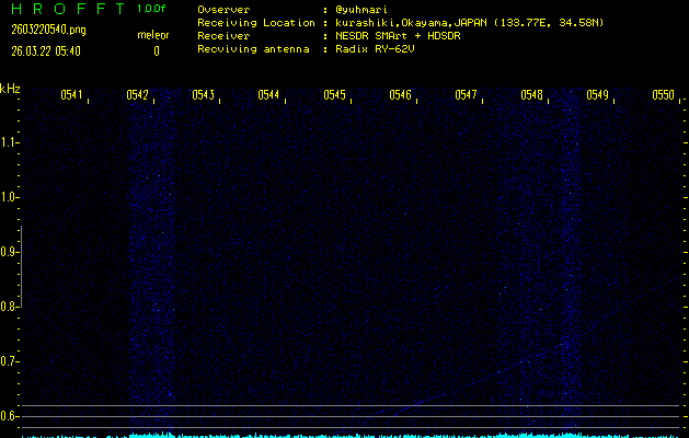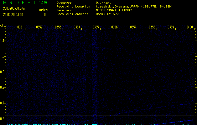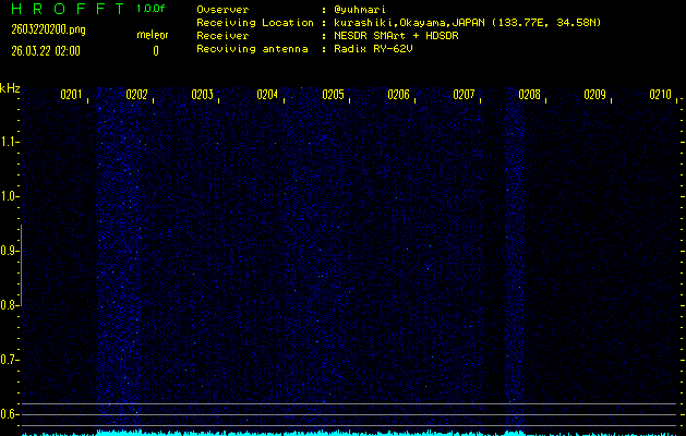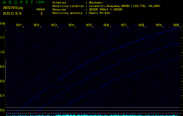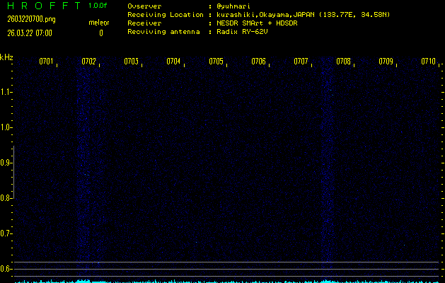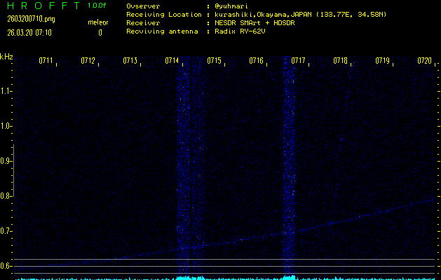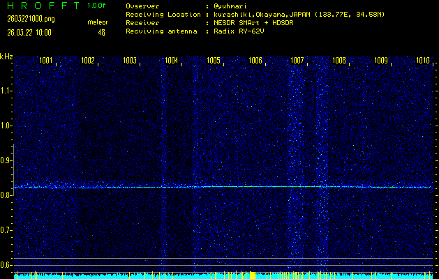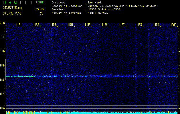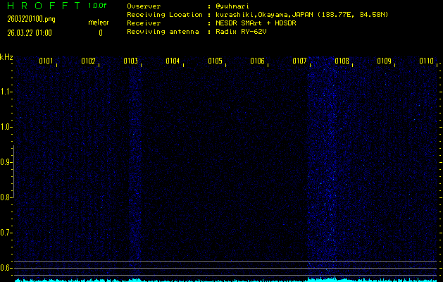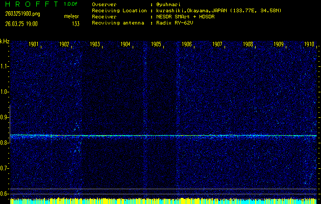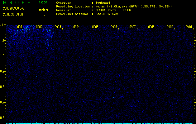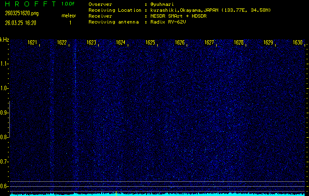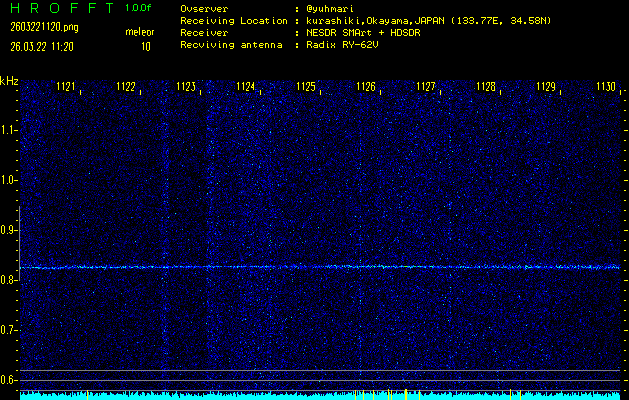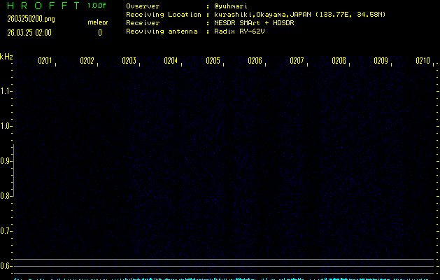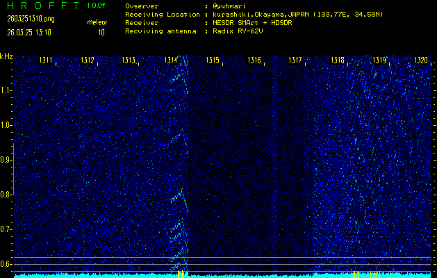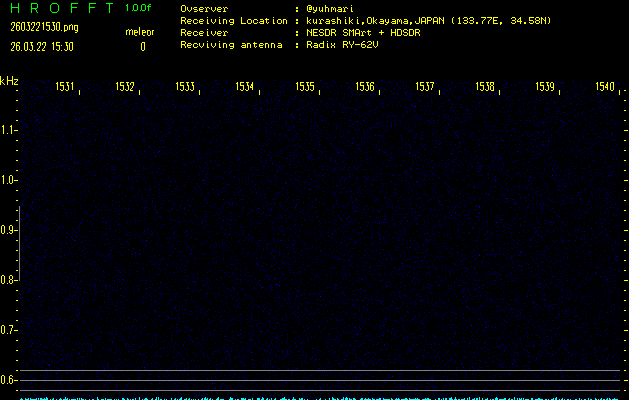 ただいま宮崎大学無線部OB会によって運用されているアマチュア無線50.017MHz(JA6YBR,50/10/1/0.1W,CW)を利用して試験受信を行っています。