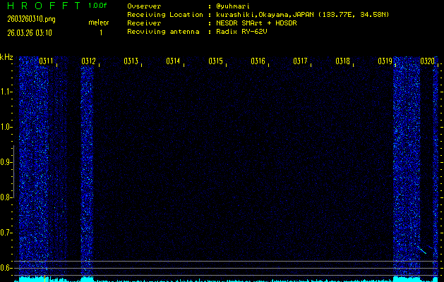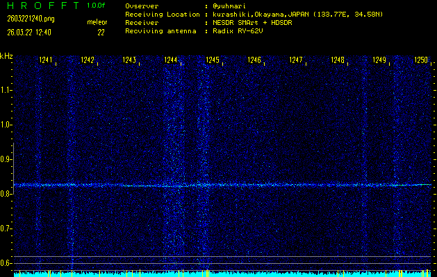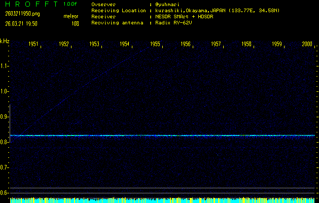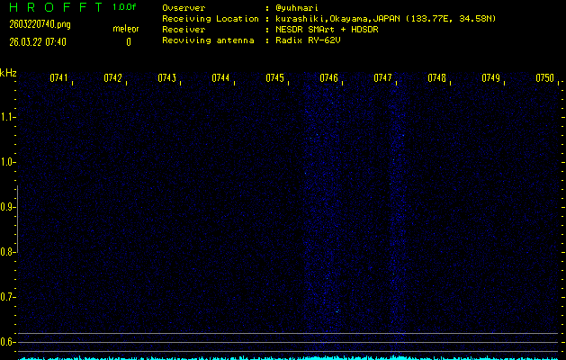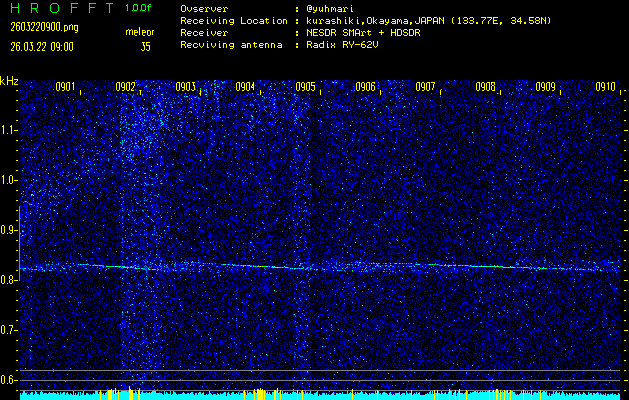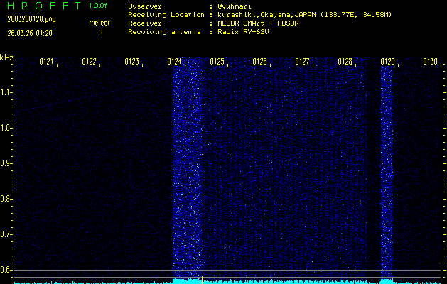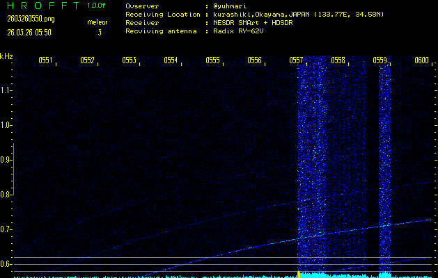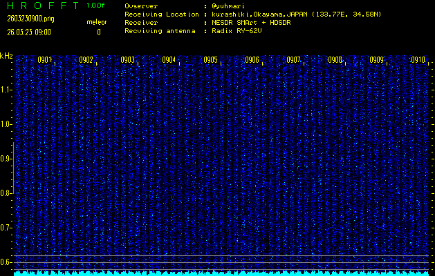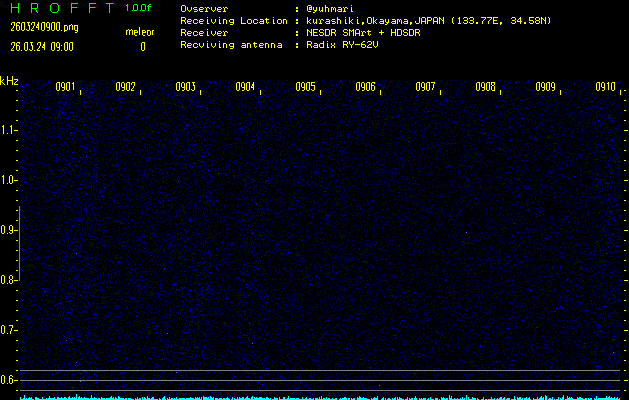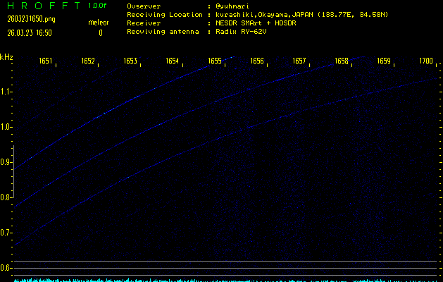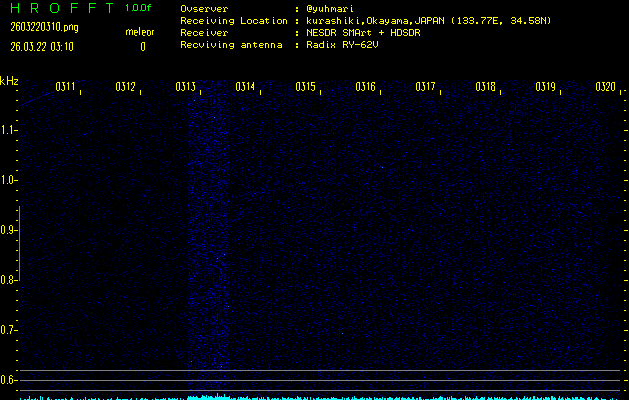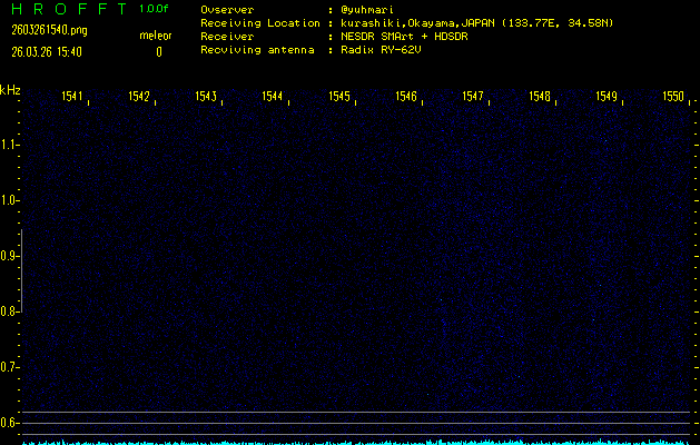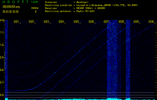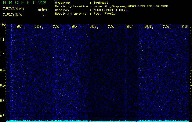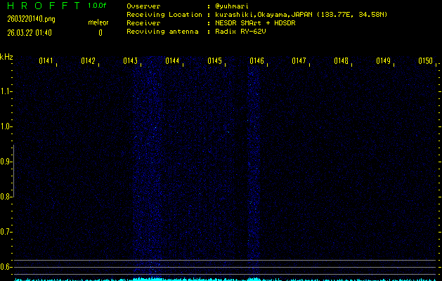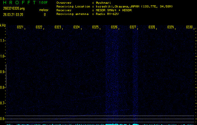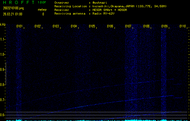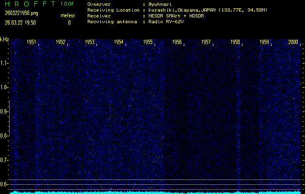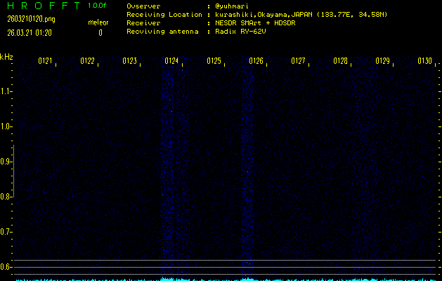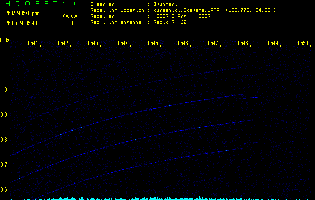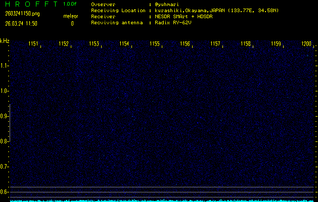 ただいま宮崎大学無線部OB会によって運用されているアマチュア無線50.017MHz(JA6YBR,50/10/1/0.1W,CW)を利用して試験受信を行っています。