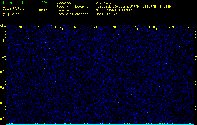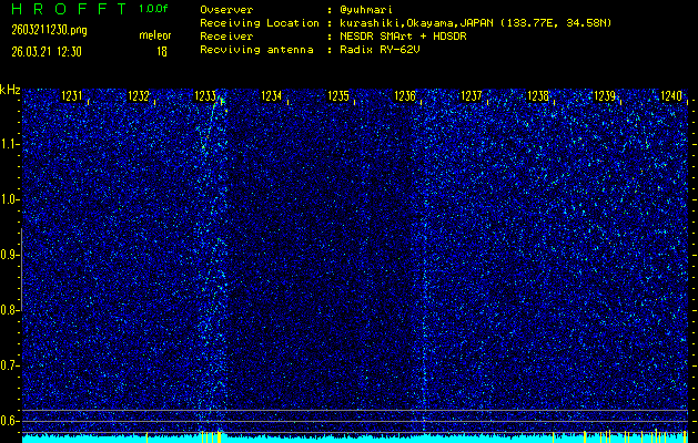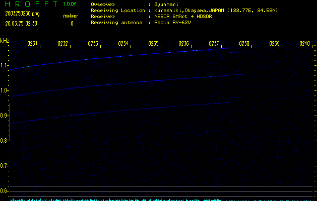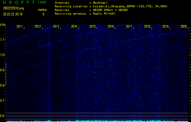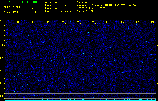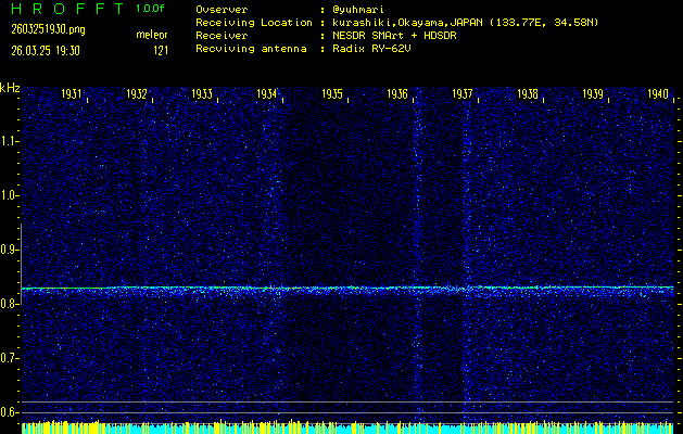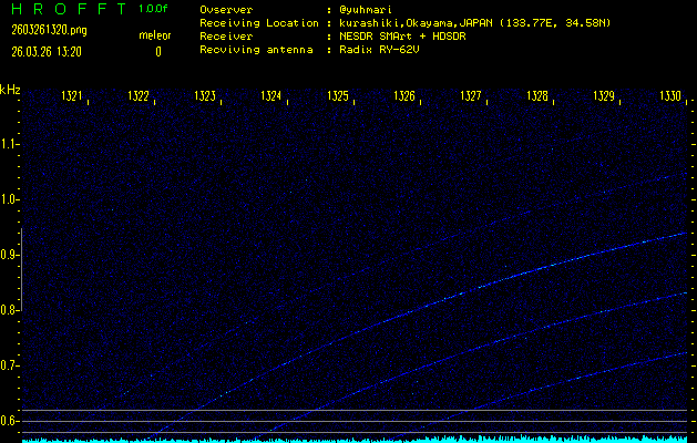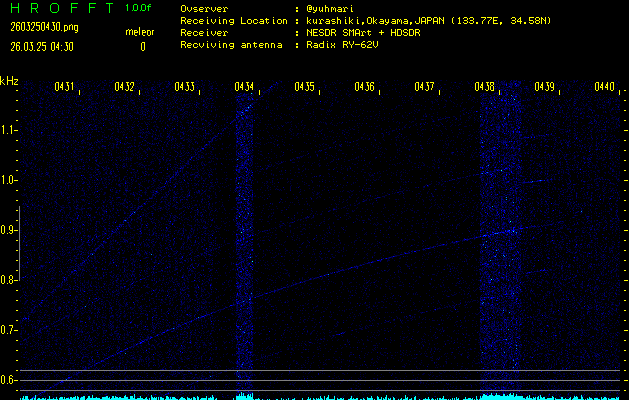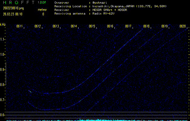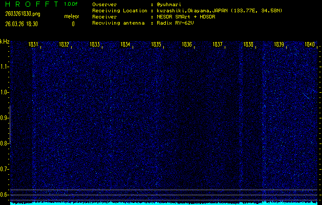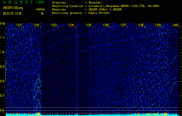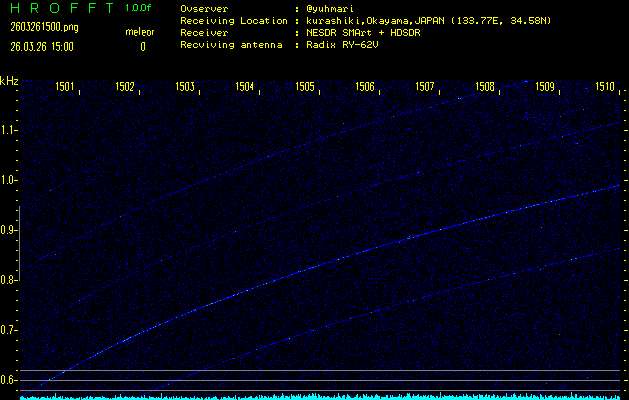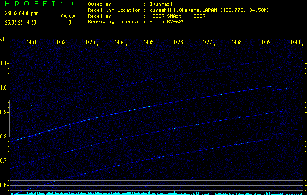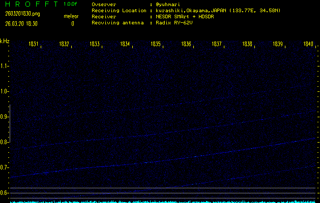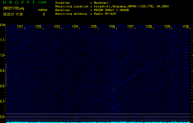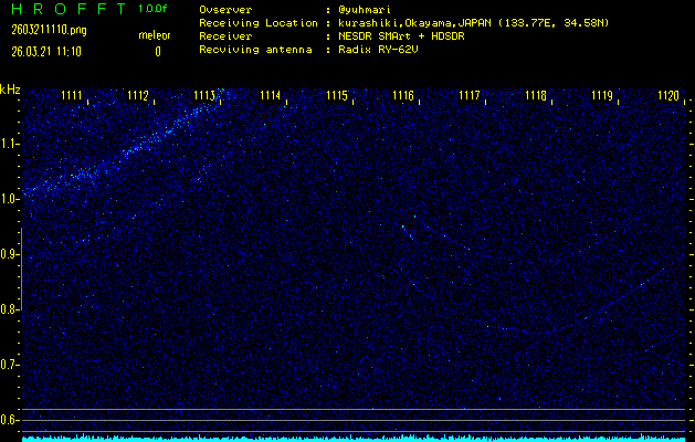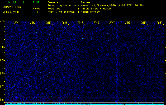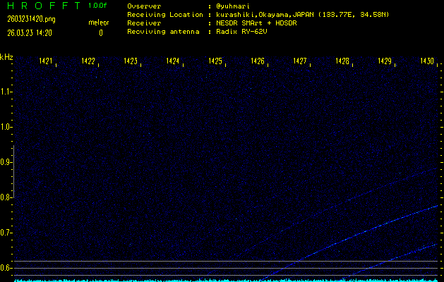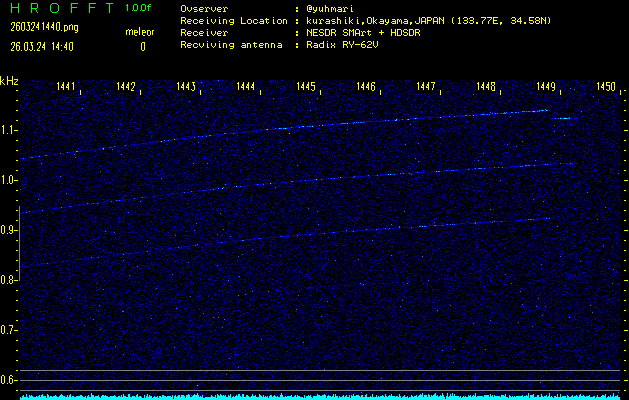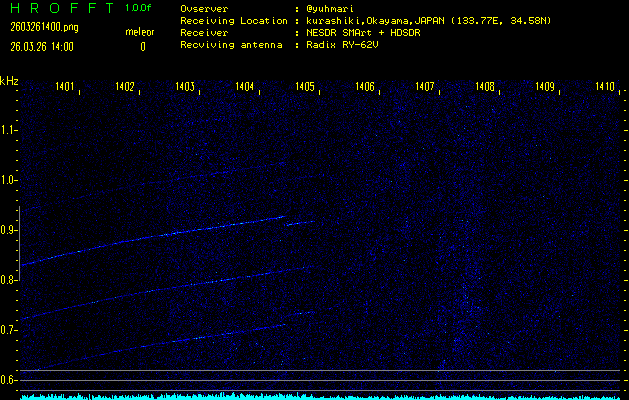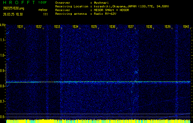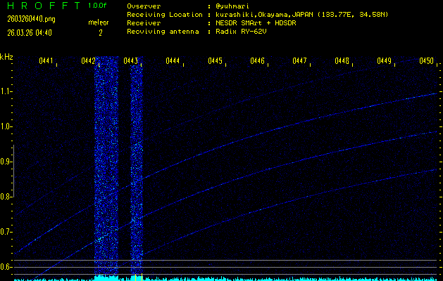 過去のデータは「流星電波観測国際プロジェクト」様サイト内のFRO LIVE in 倉敷(岡山県)でもご覧いただけます。(現在、送信を停止しています)