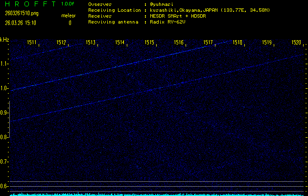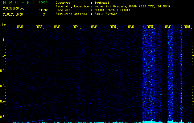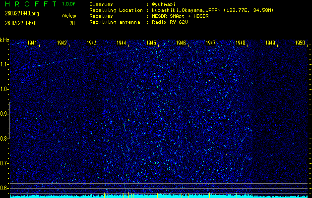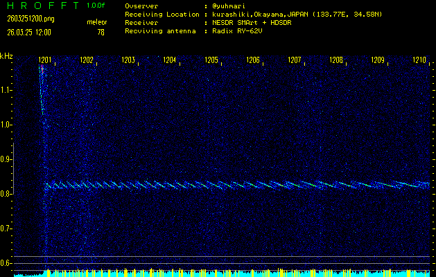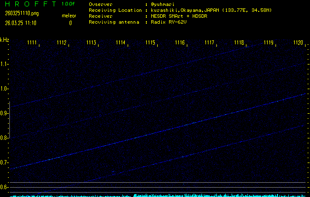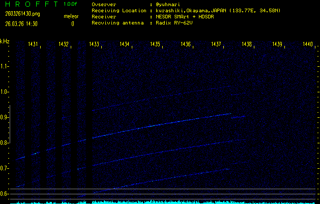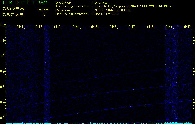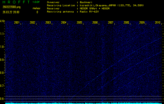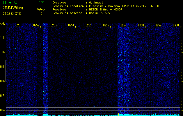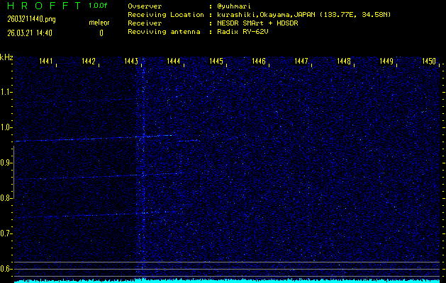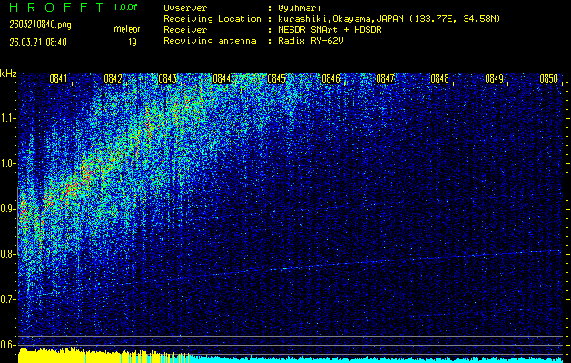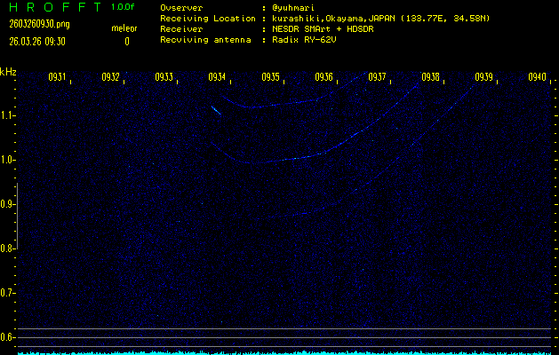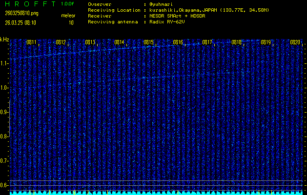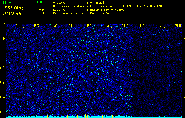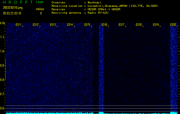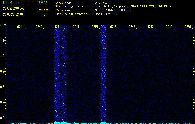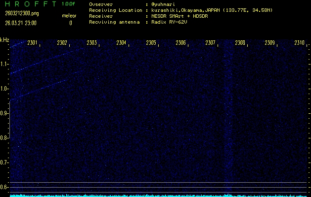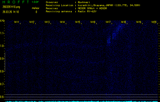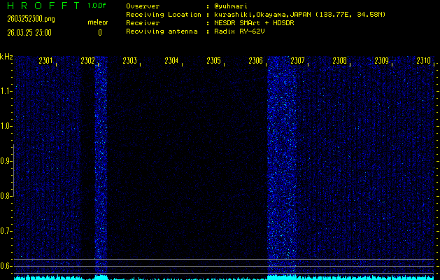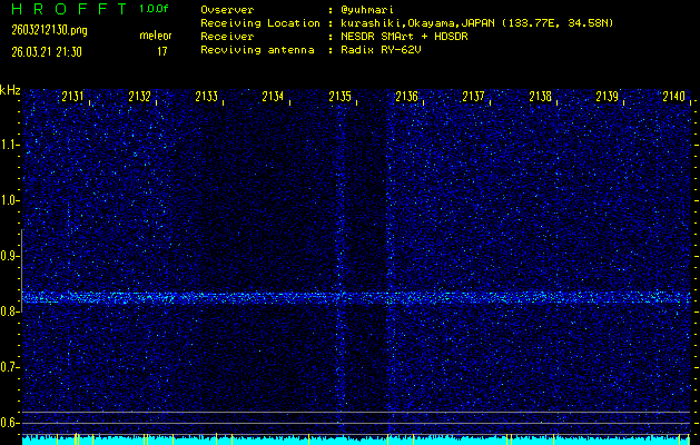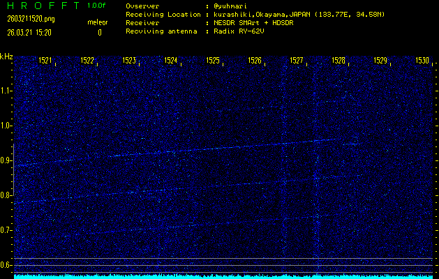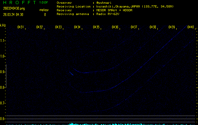 過去のデータは「流星電波観測国際プロジェクト」様サイト内のFRO LIVE in 倉敷(岡山県)でもご覧いただけます。(現在、送信を停止しています)