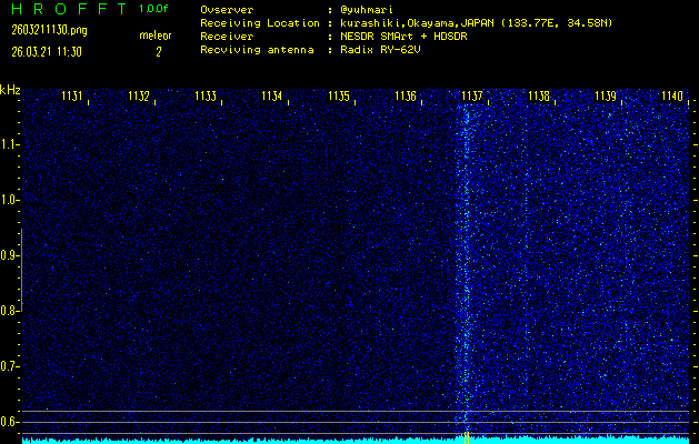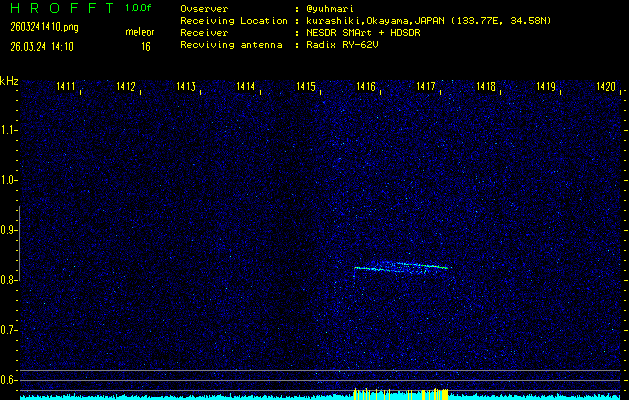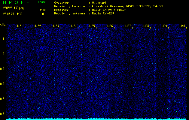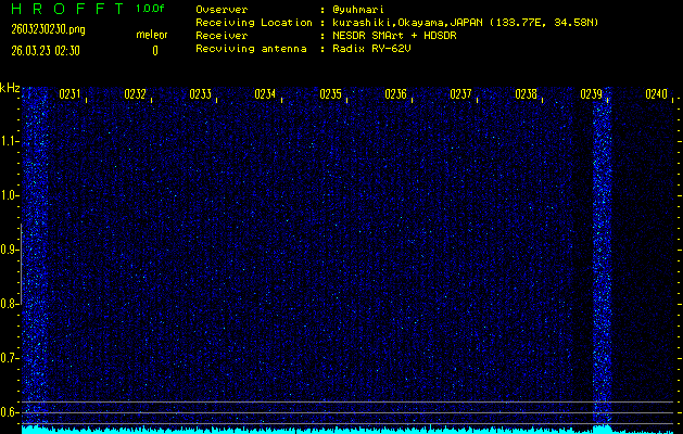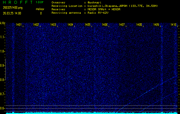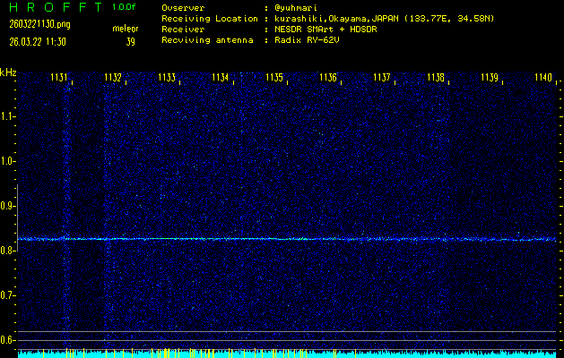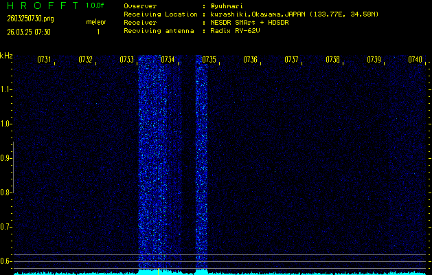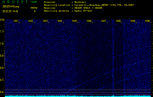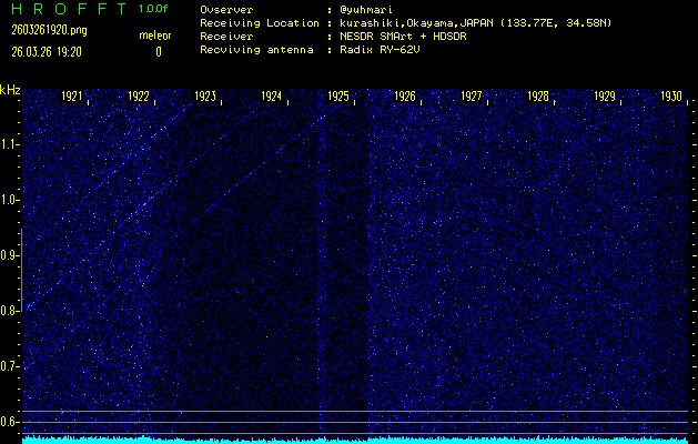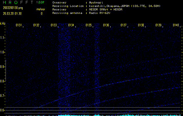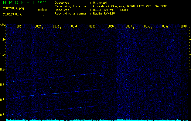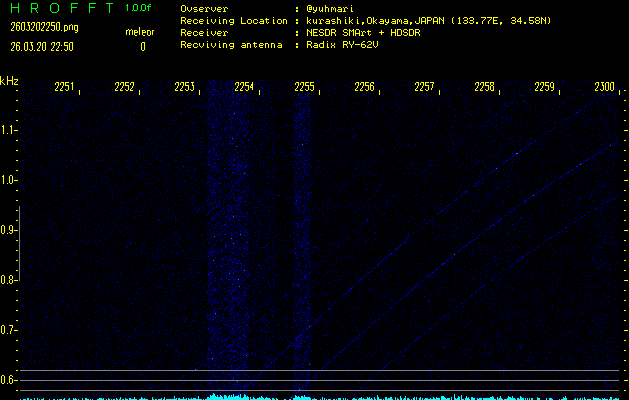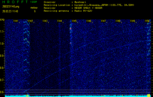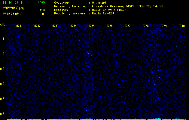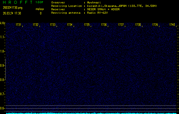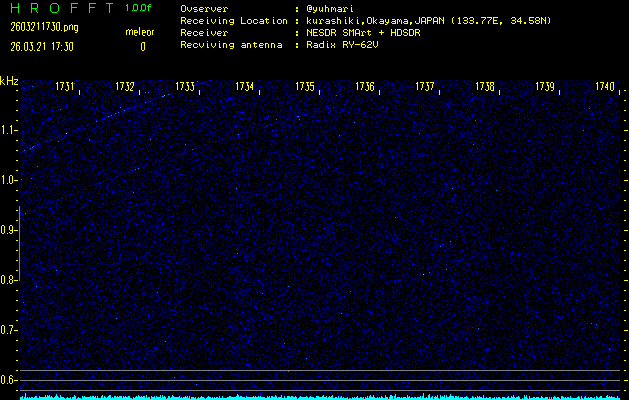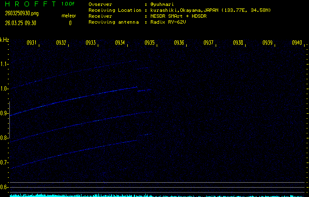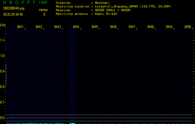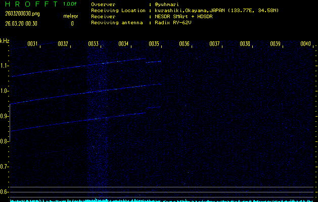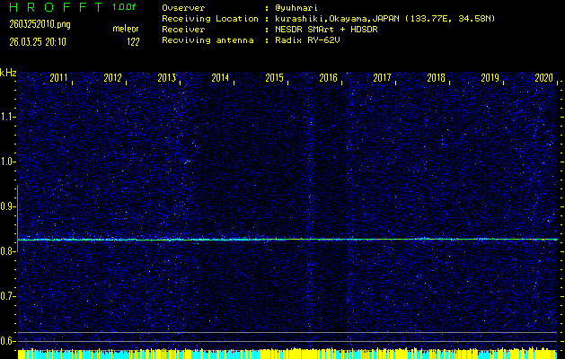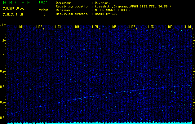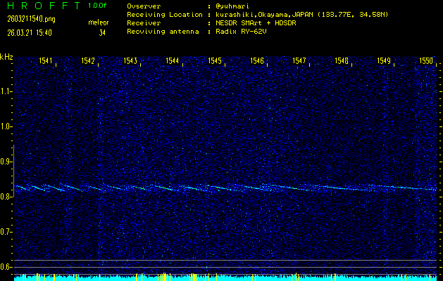 過去のデータは「流星電波観測国際プロジェクト」様サイト内のFRO LIVE in 倉敷(岡山県)でもご覧いただけます。(現在、送信を停止しています)