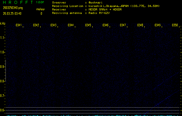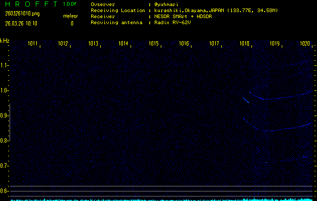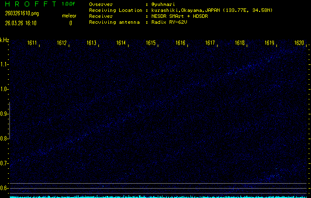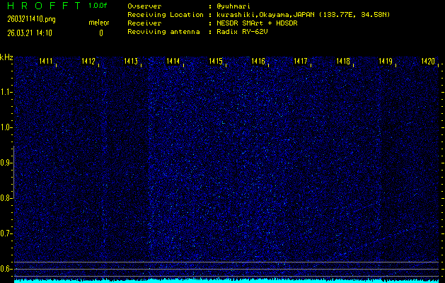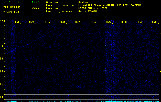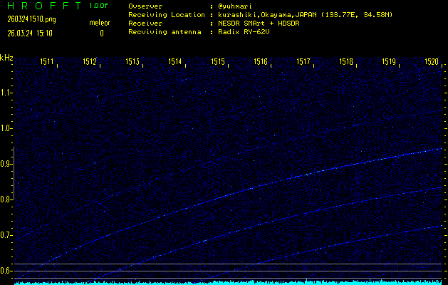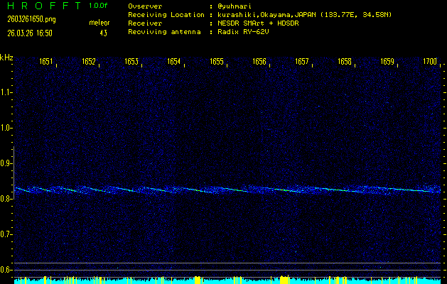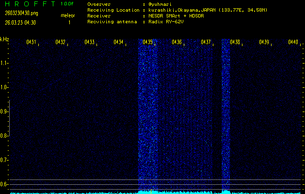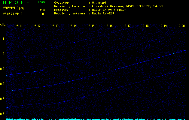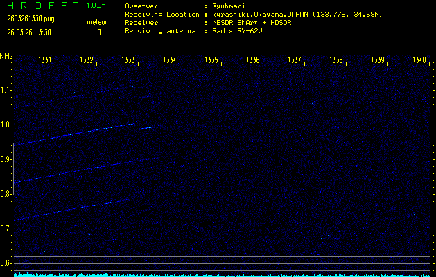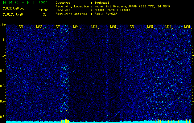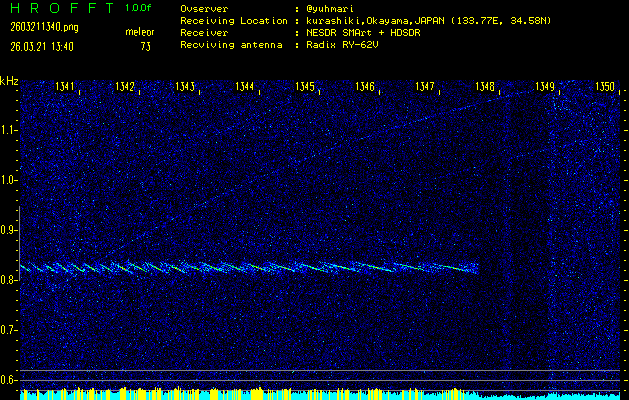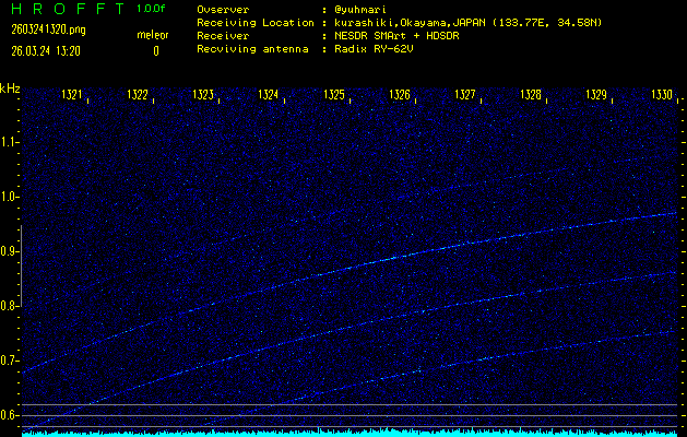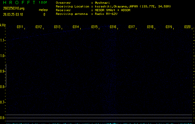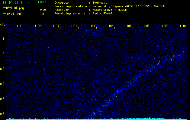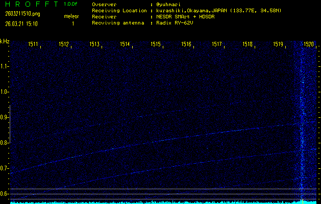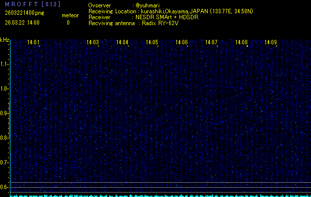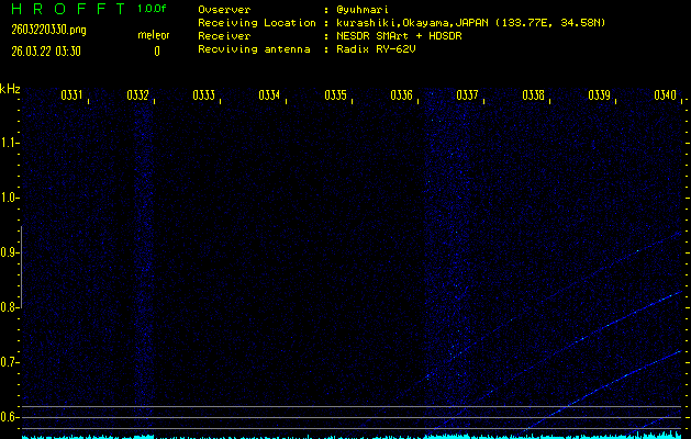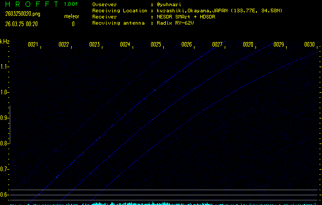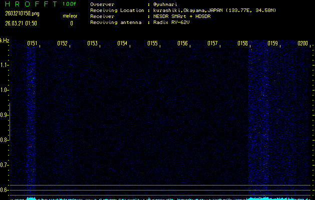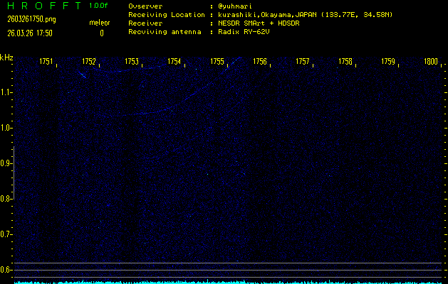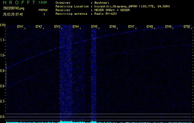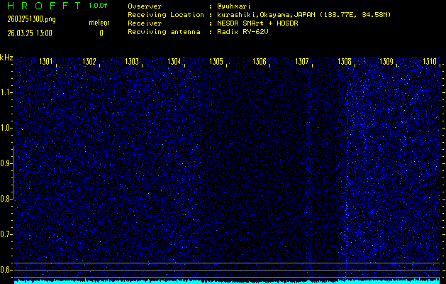 過去のデータは「流星電波観測国際プロジェクト」様サイト内のFRO LIVE in 倉敷(岡山県)でもご覧いただけます。(現在、送信を停止しています)