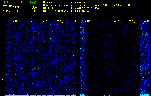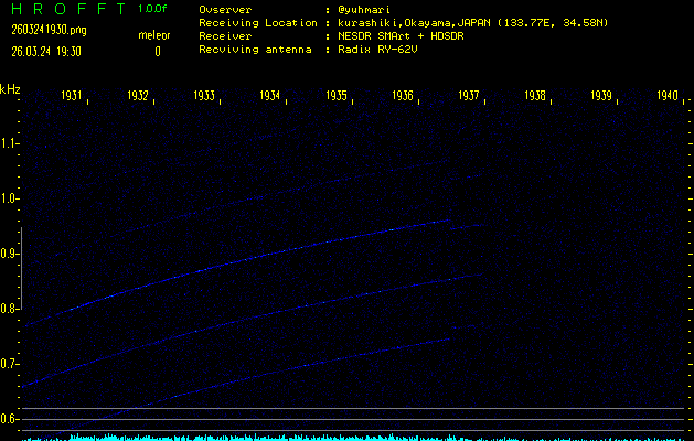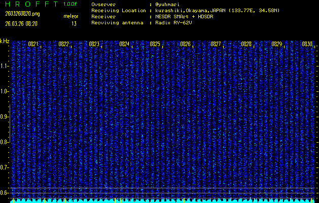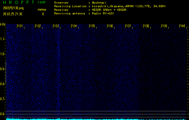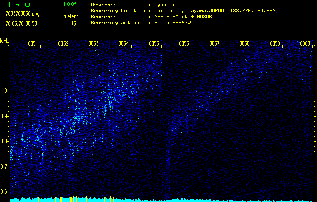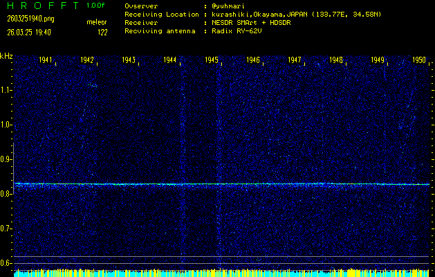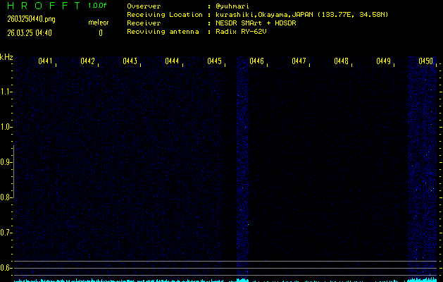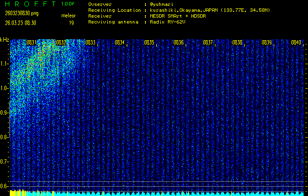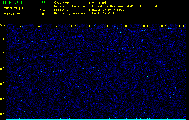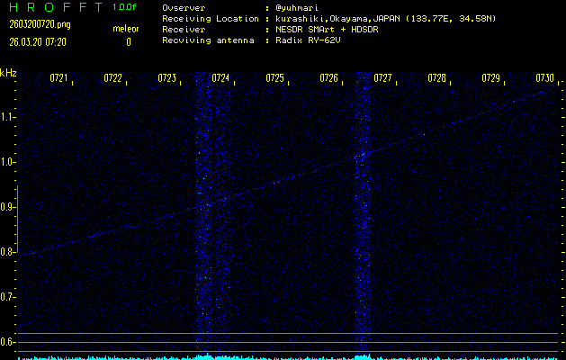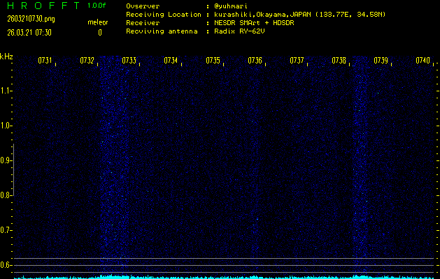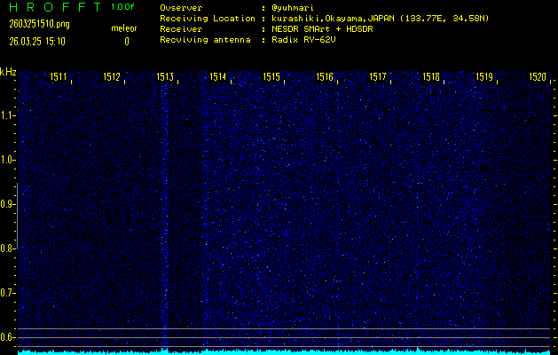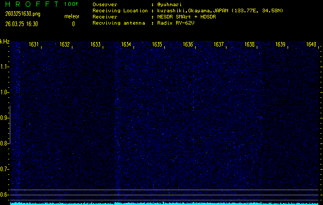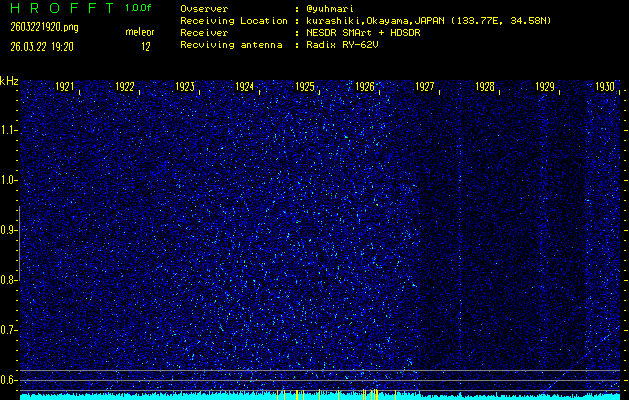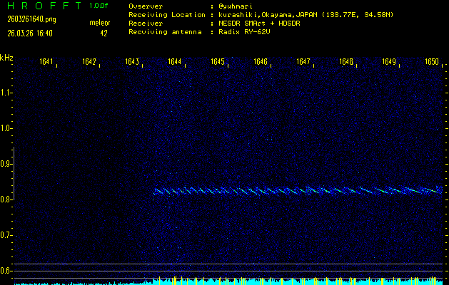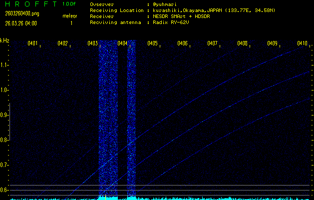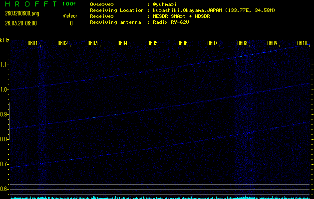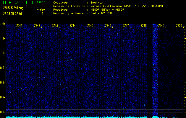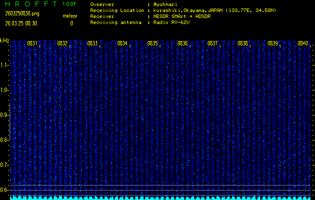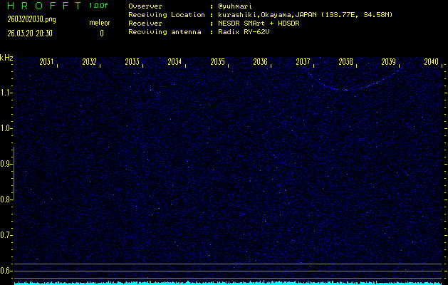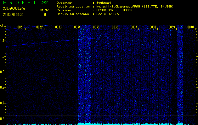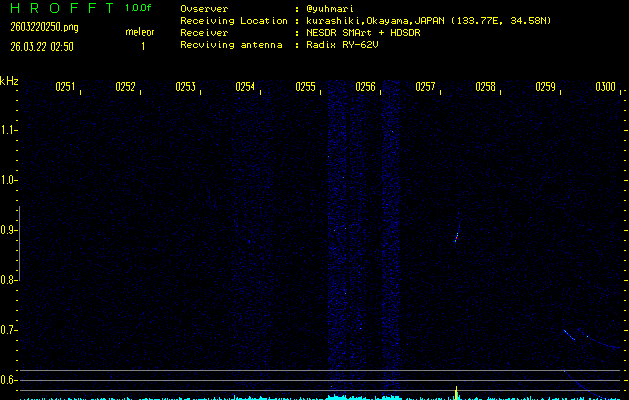 過去のデータは「流星電波観測国際プロジェクト」様サイト内のFRO LIVE in 倉敷(岡山県)でもご覧いただけます。(現在、送信を停止しています)