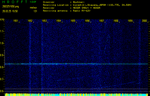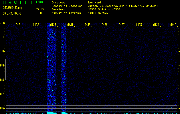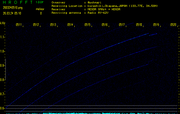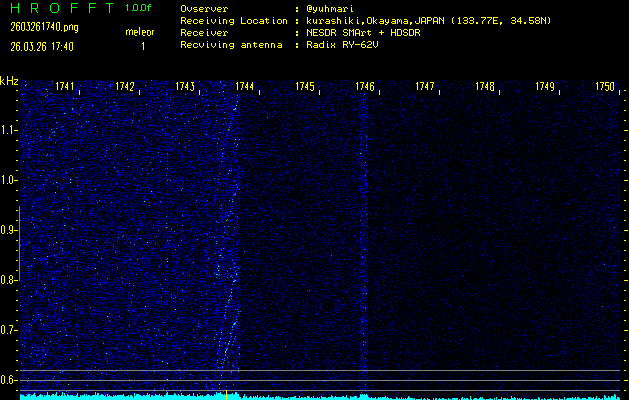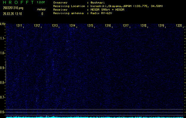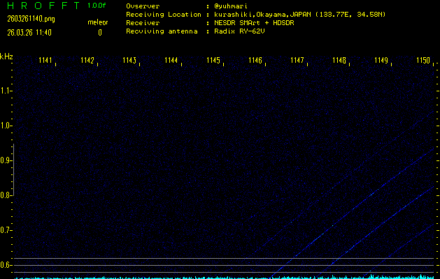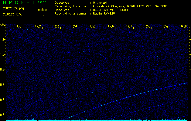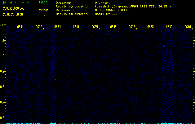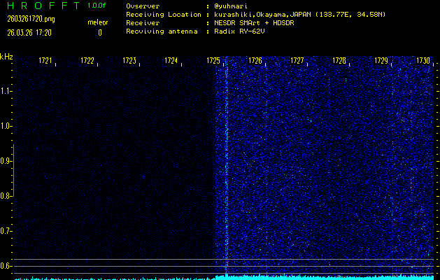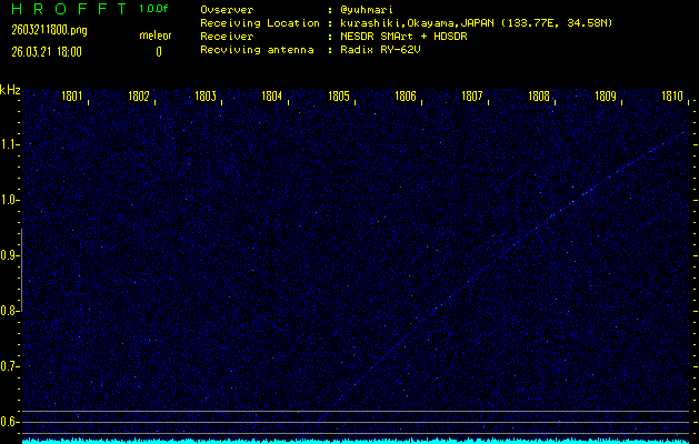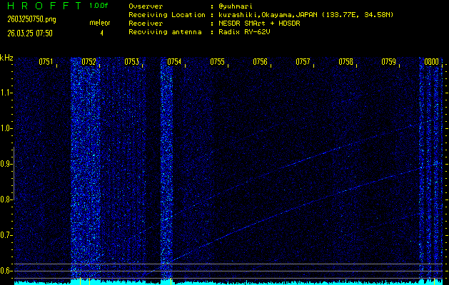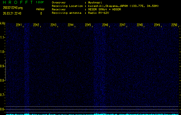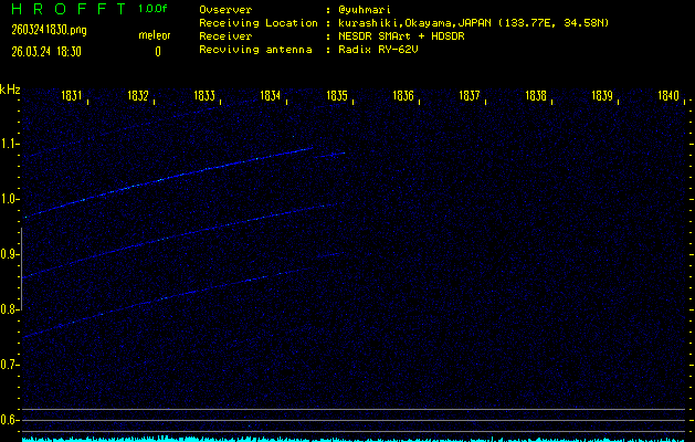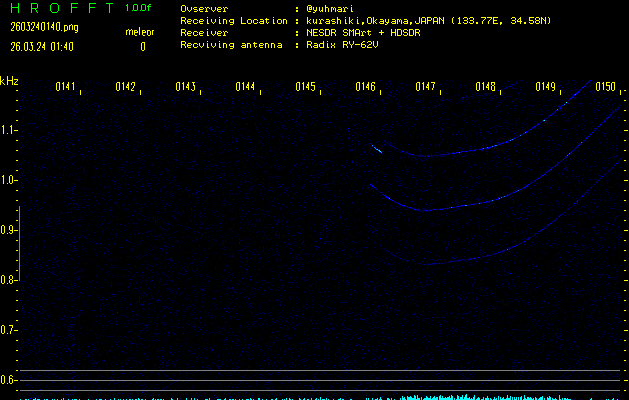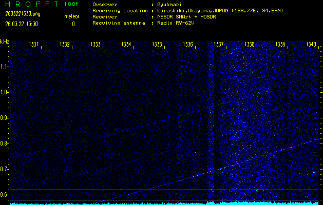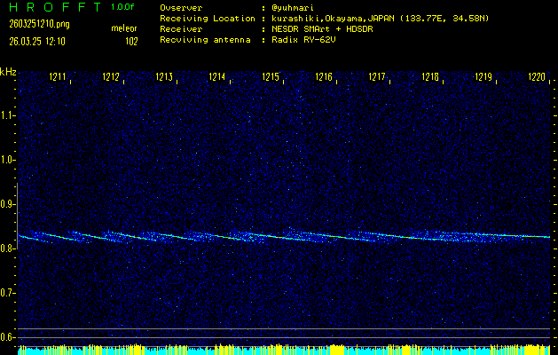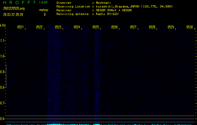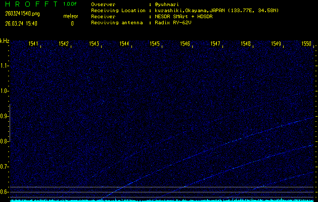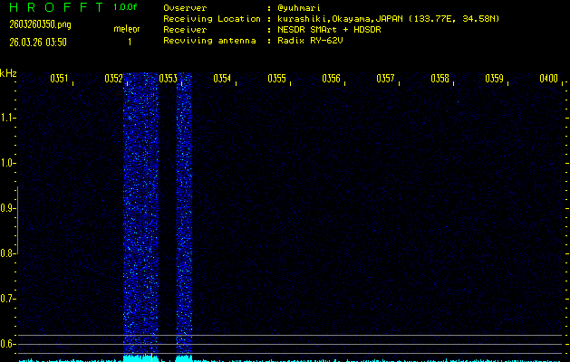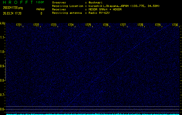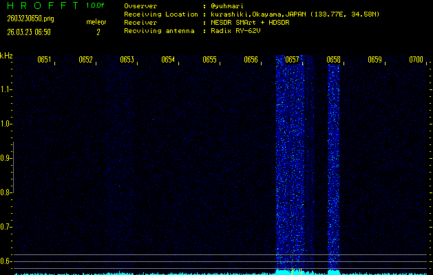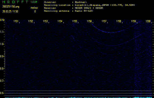 過去のデータは「流星電波観測国際プロジェクト」様サイト内のFRO LIVE in 倉敷(岡山県)でもご覧いただけます。(現在、送信を停止しています)