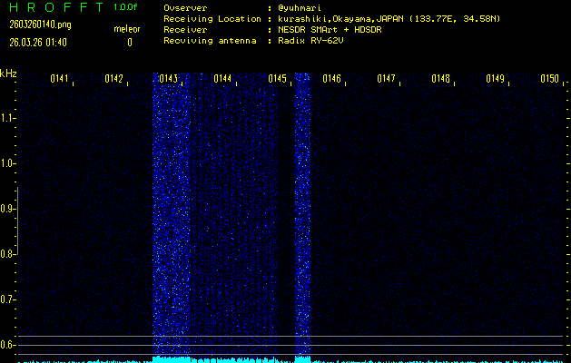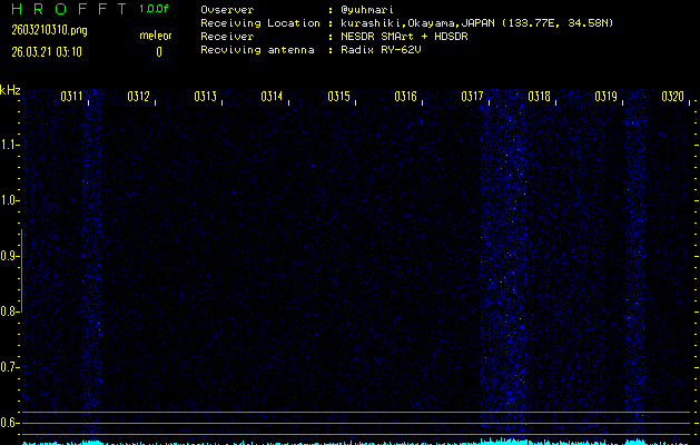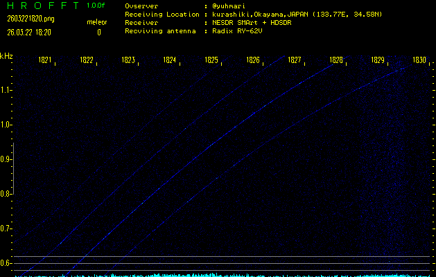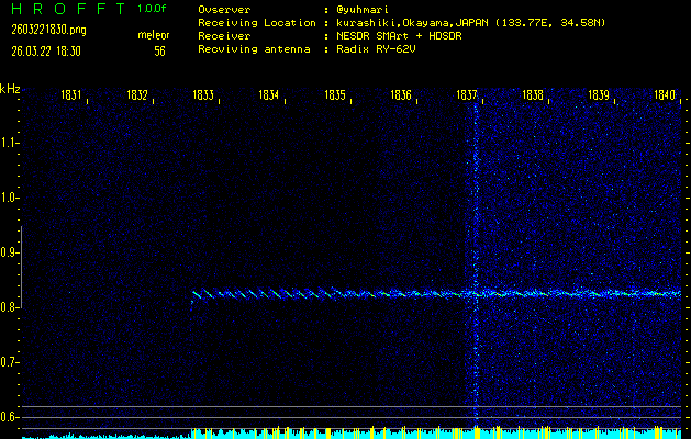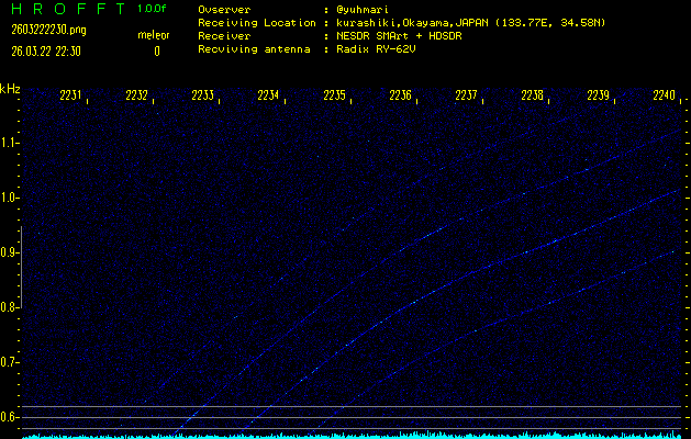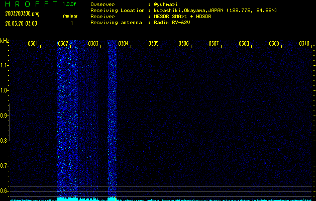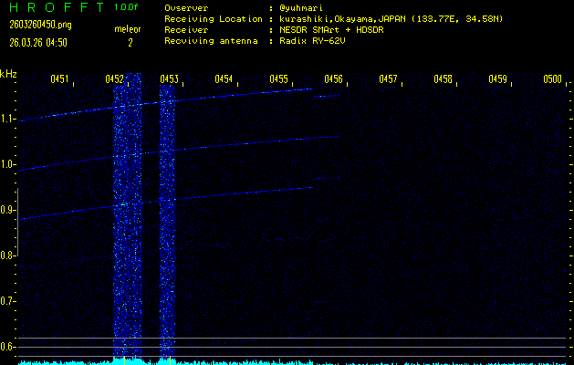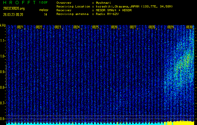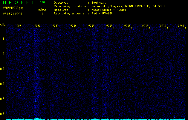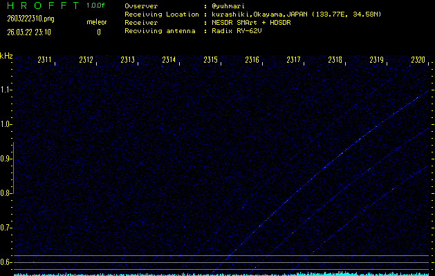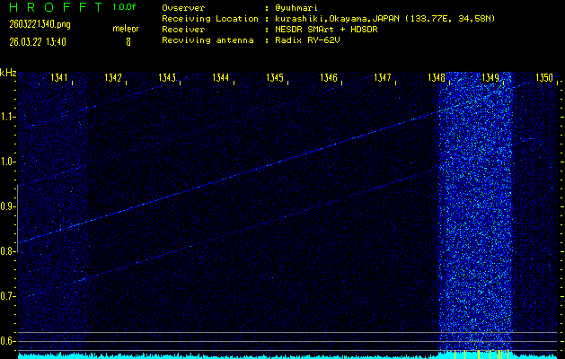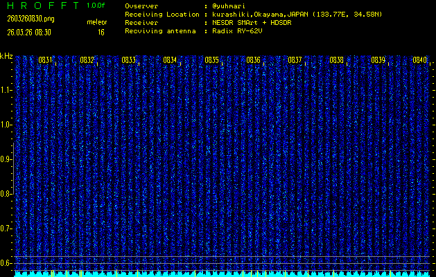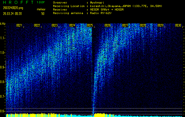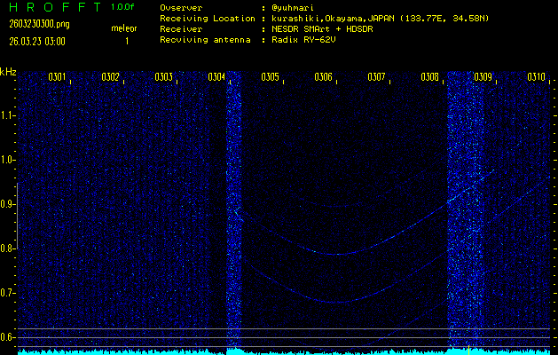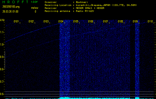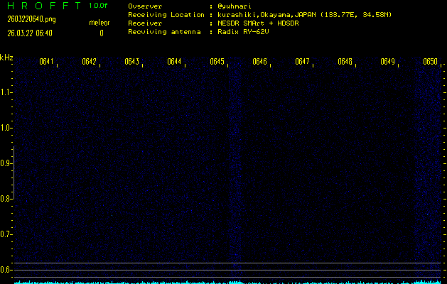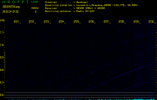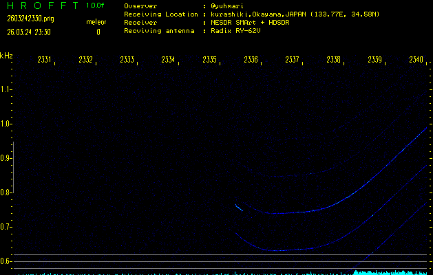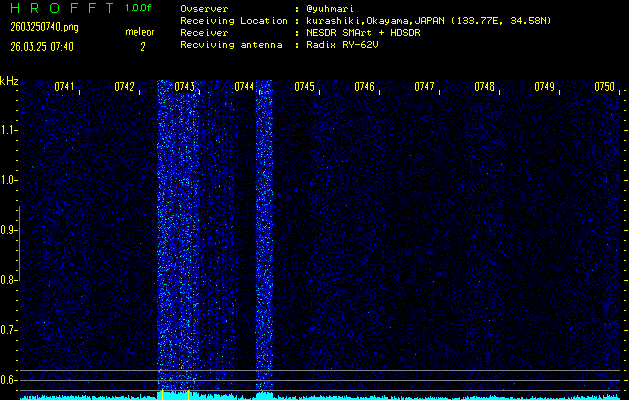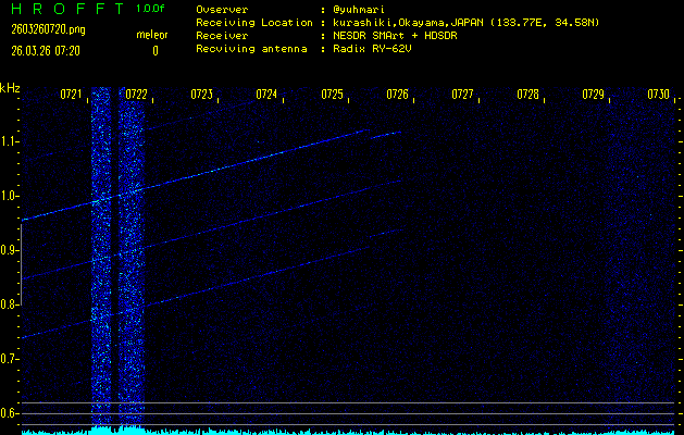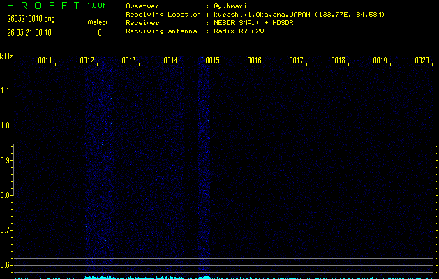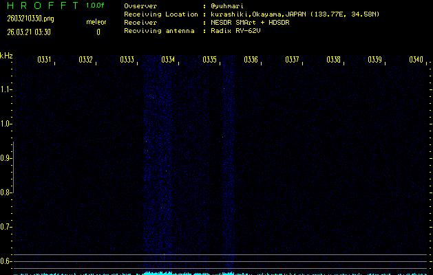 過去のデータは「流星電波観測国際プロジェクト」様サイト内のFRO LIVE in 倉敷(岡山県)でもご覧いただけます。(現在、送信を停止しています)