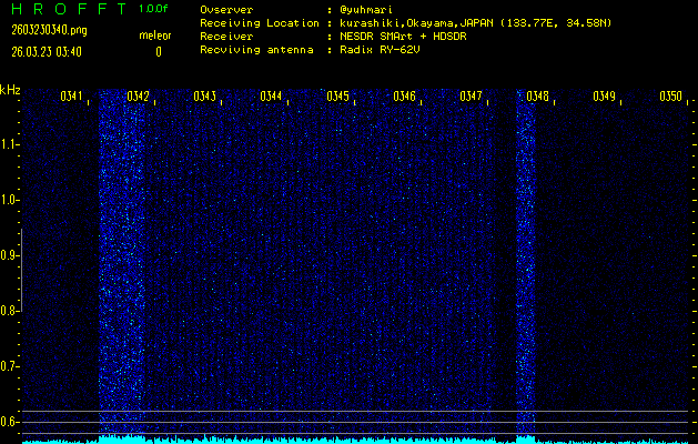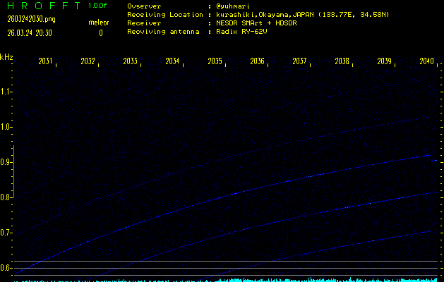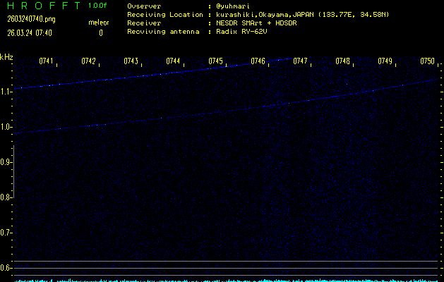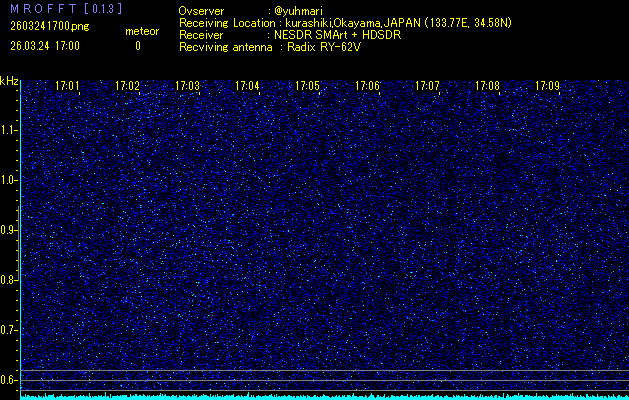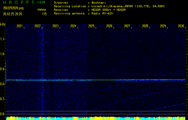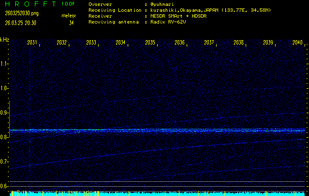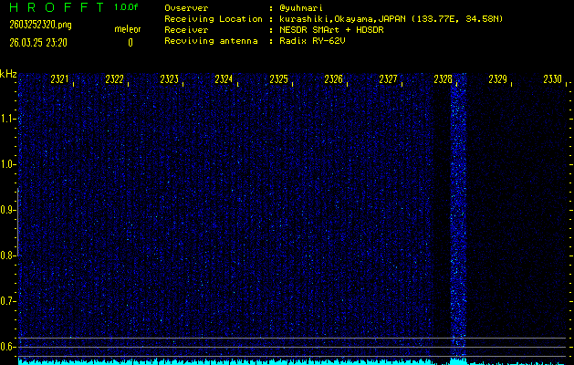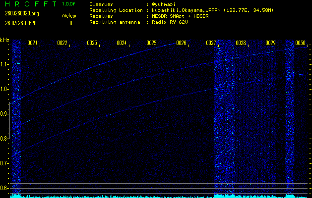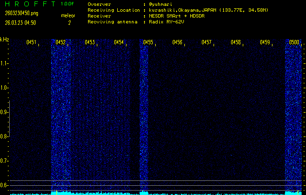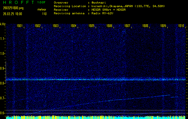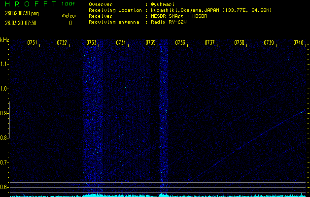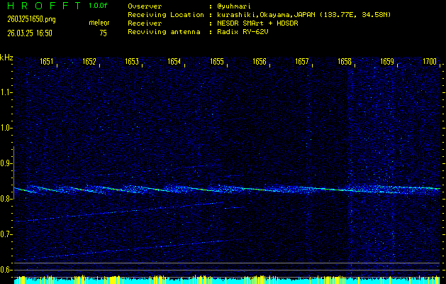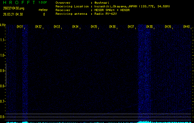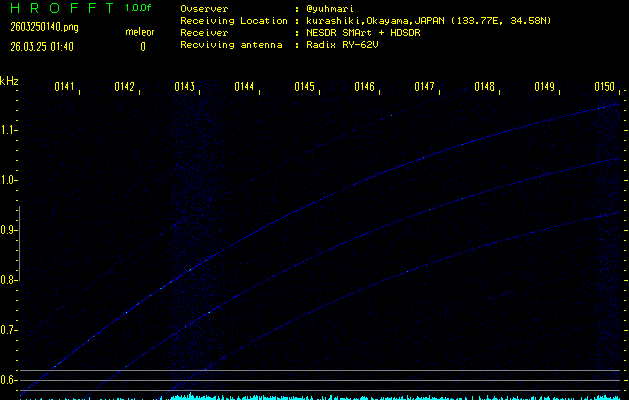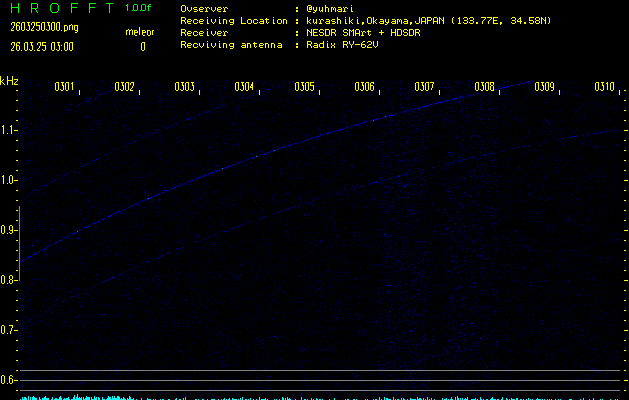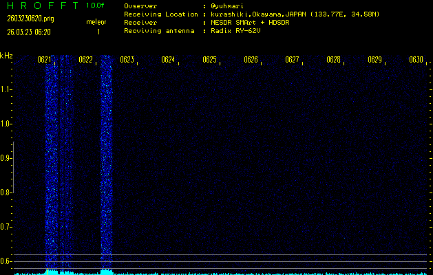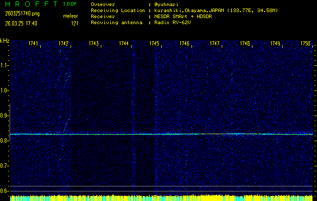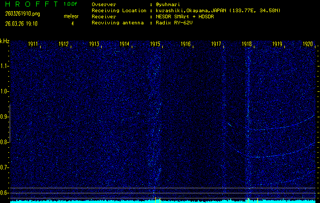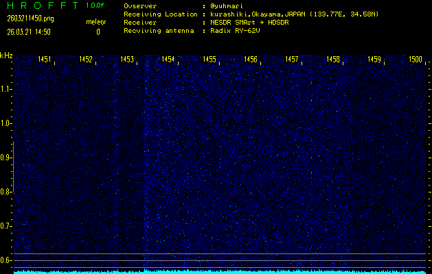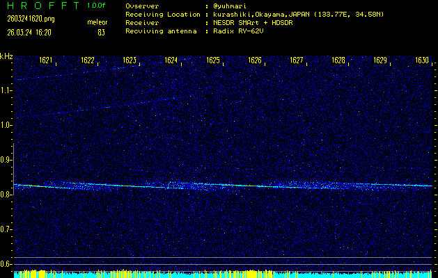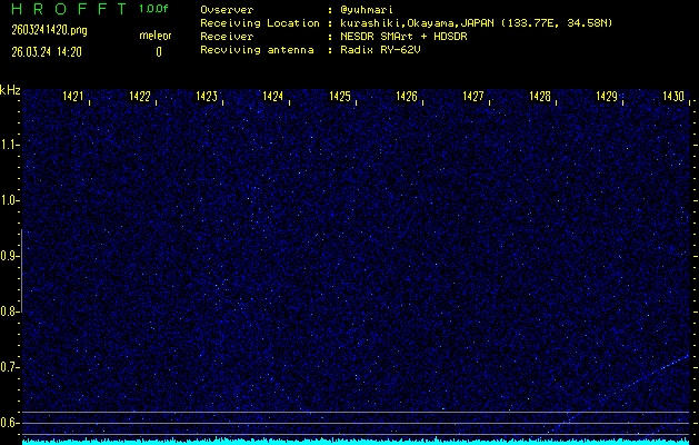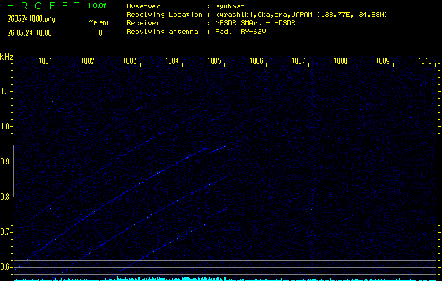 過去のデータは「流星電波観測国際プロジェクト」様サイト内のFRO LIVE in 倉敷(岡山県)でもご覧いただけます。(現在、送信を停止しています)