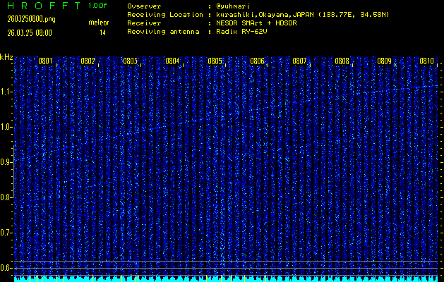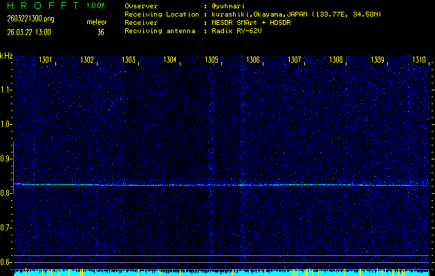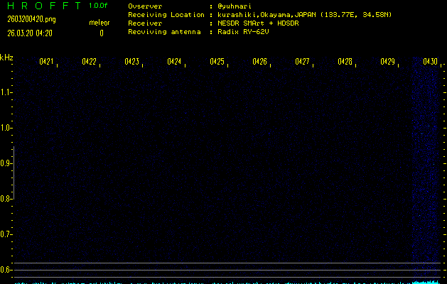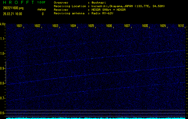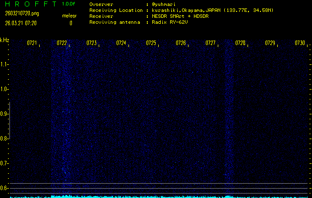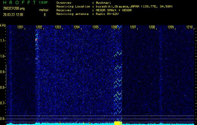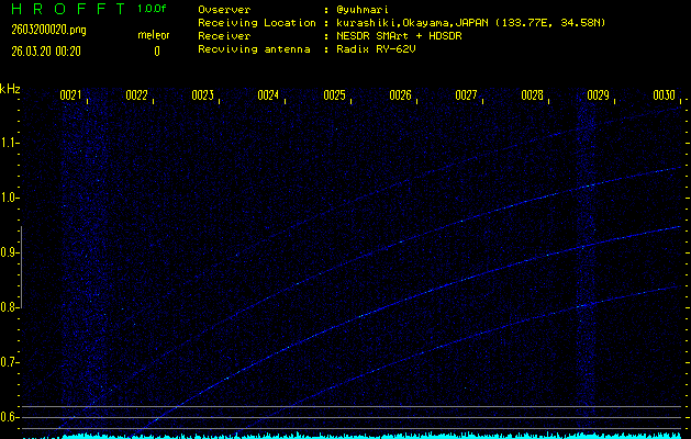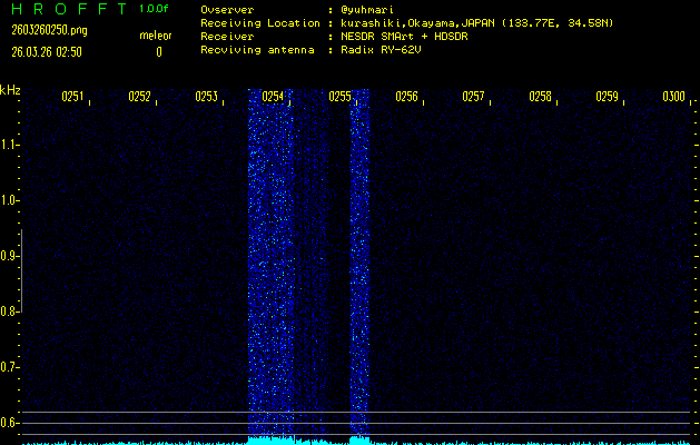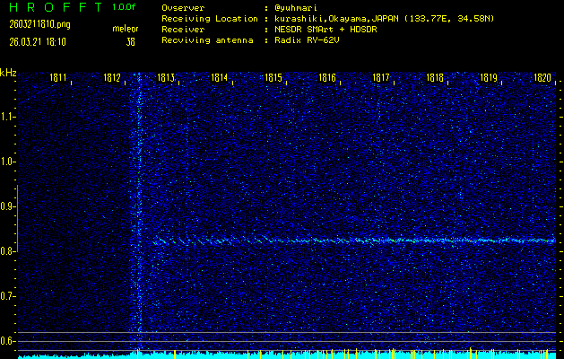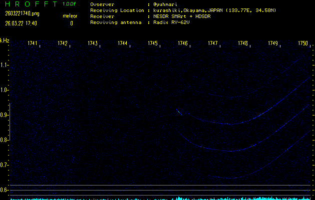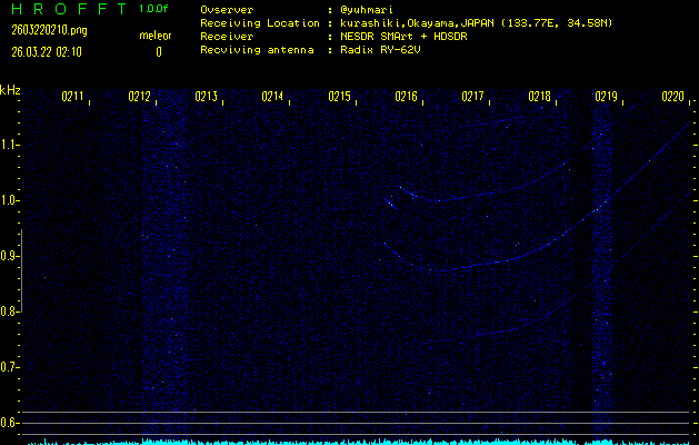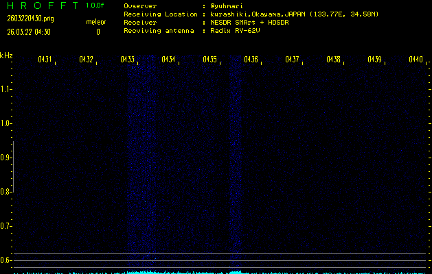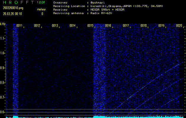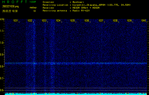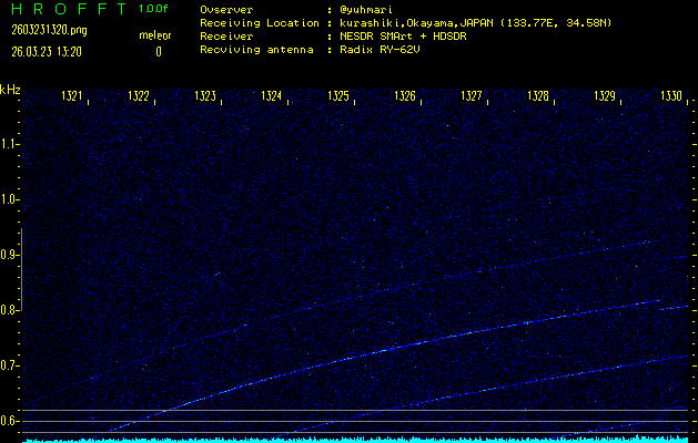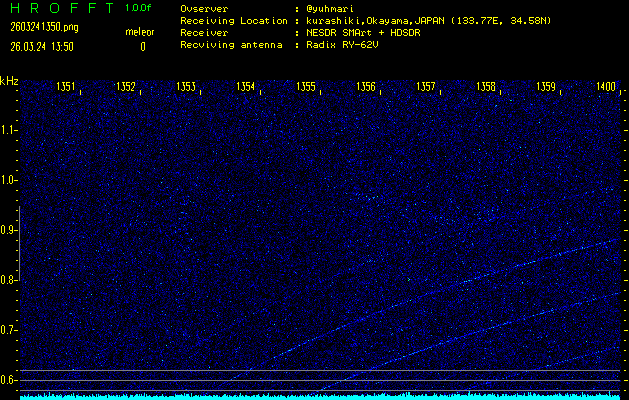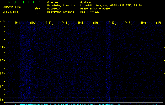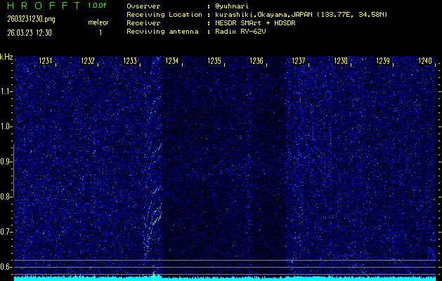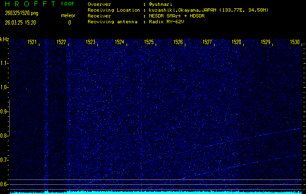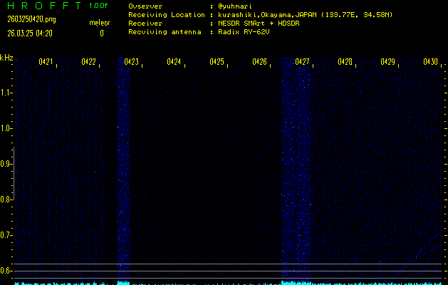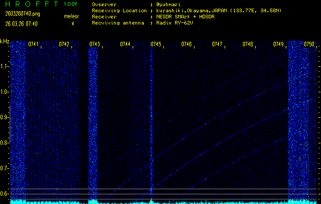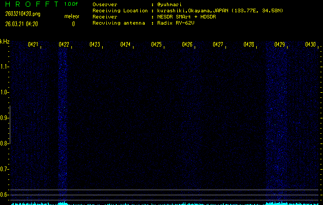 過去のデータは「流星電波観測国際プロジェクト」様サイト内のFRO LIVE in 倉敷(岡山県)でもご覧いただけます。(現在、送信を停止しています)