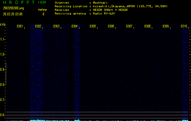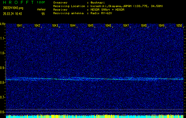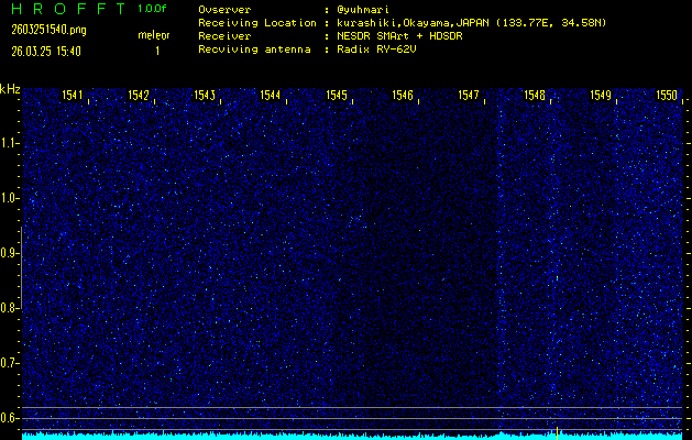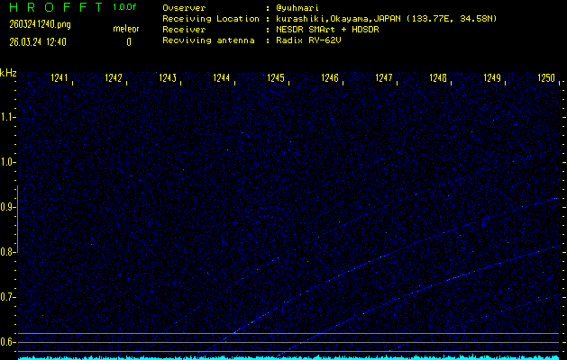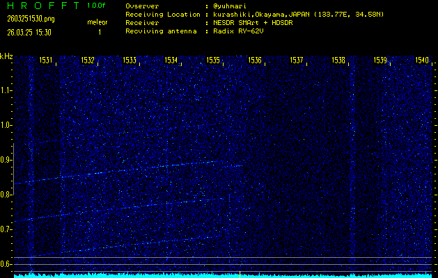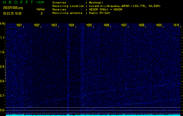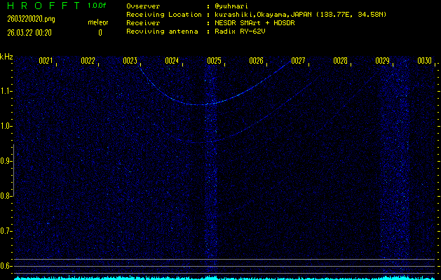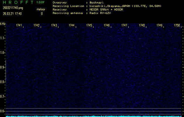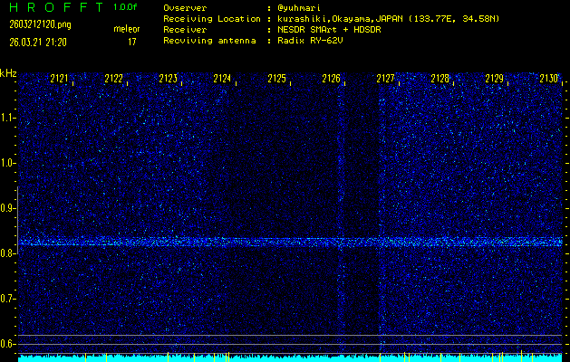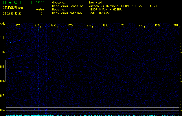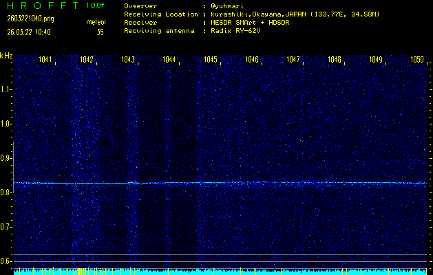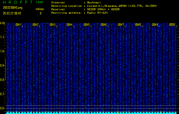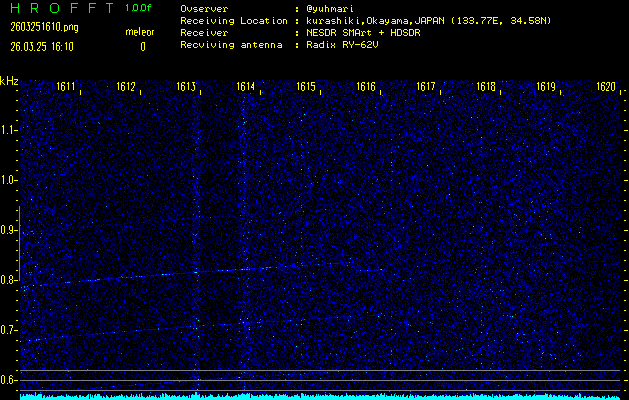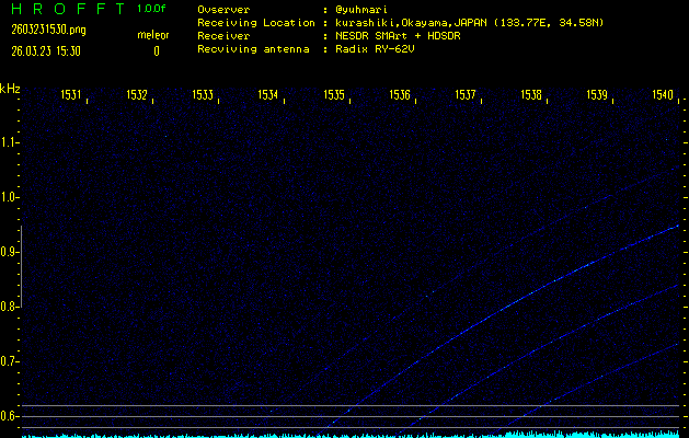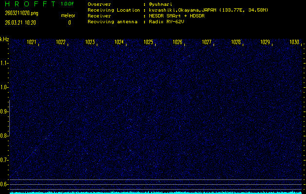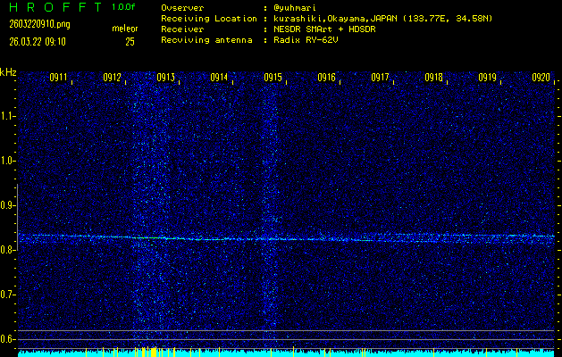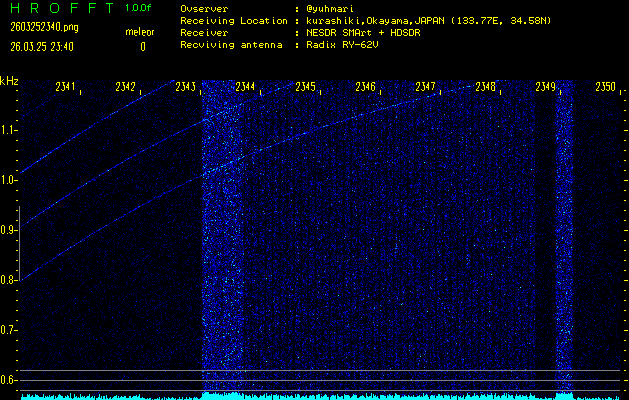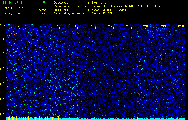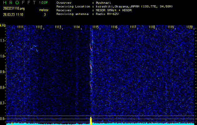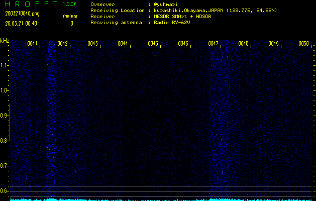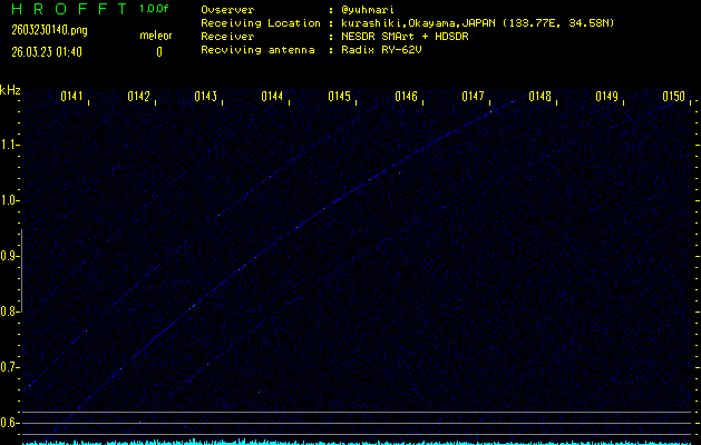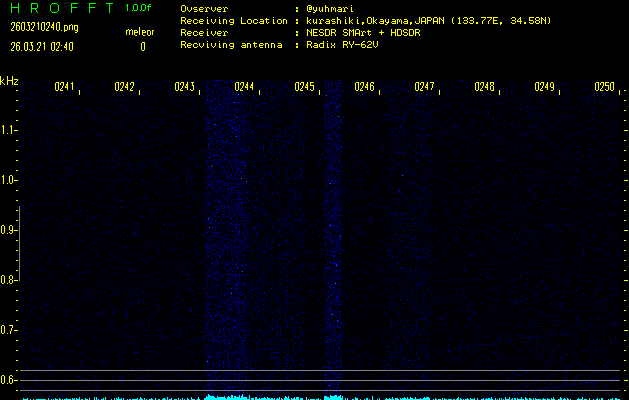 過去のデータは「流星電波観測国際プロジェクト」様サイト内のFRO LIVE in 倉敷(岡山県)でもご覧いただけます。(現在、送信を停止しています)