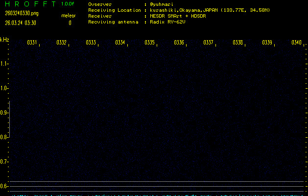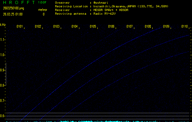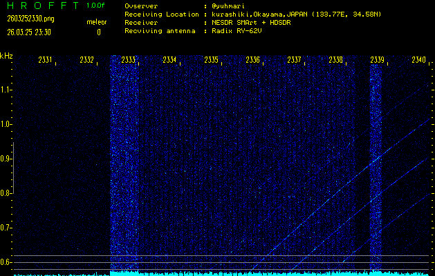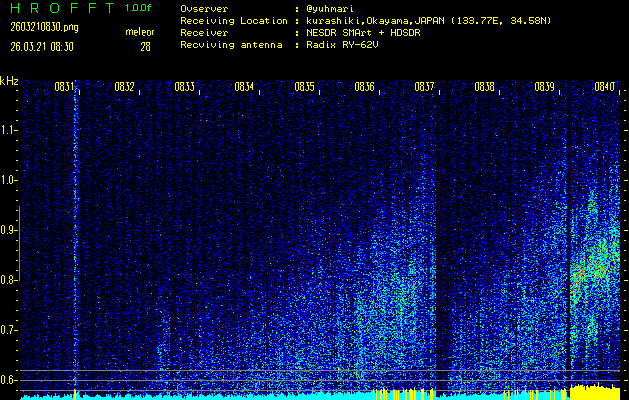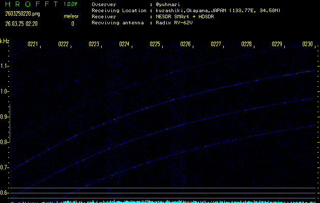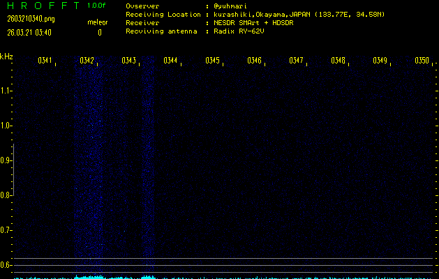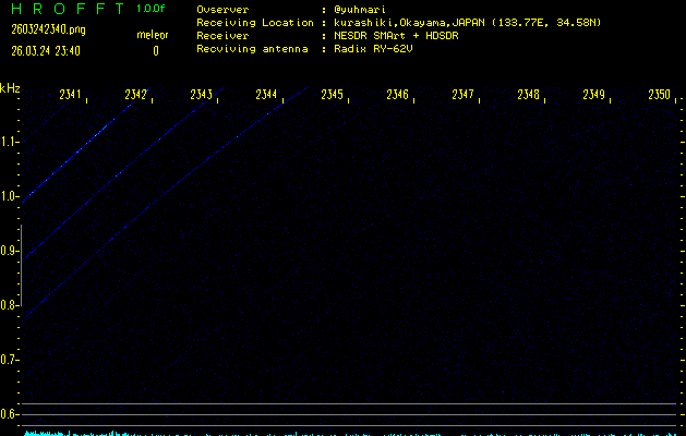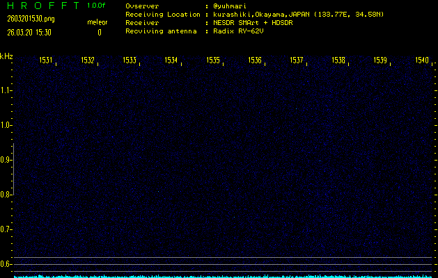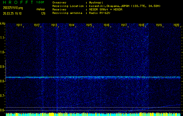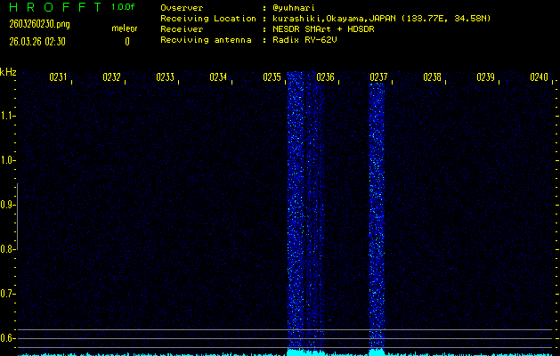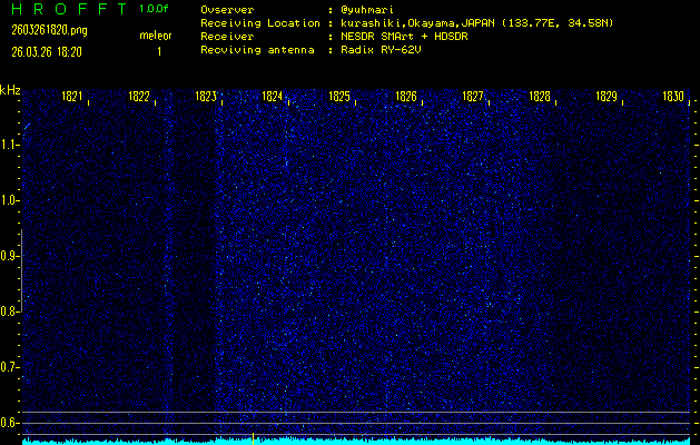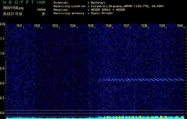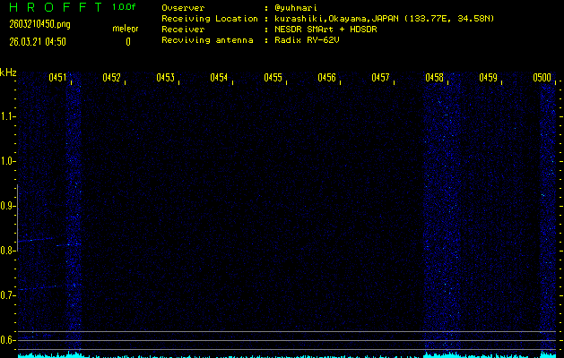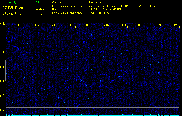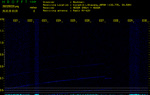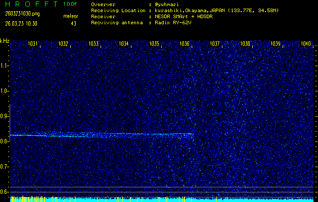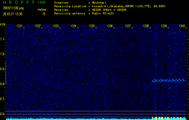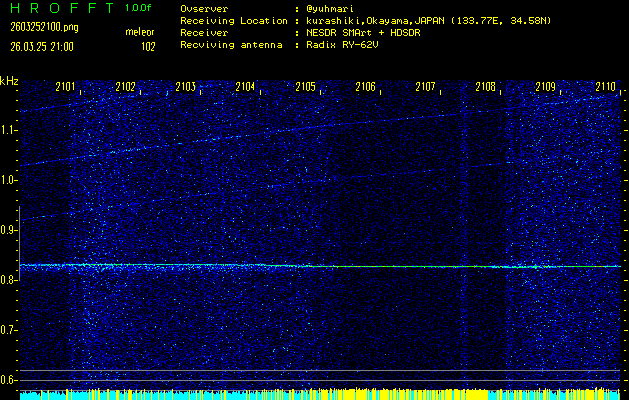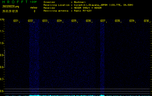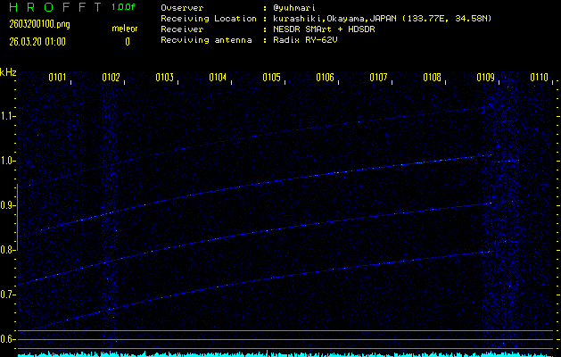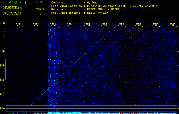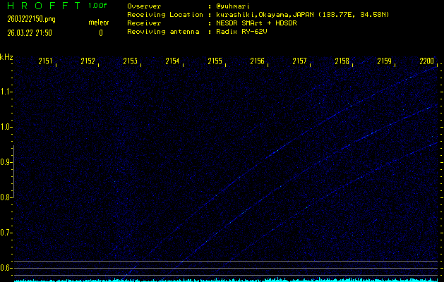 過去のデータは「流星電波観測国際プロジェクト」様サイト内のFRO LIVE in 倉敷(岡山県)でもご覧いただけます。(現在、送信を停止しています)