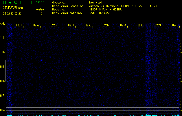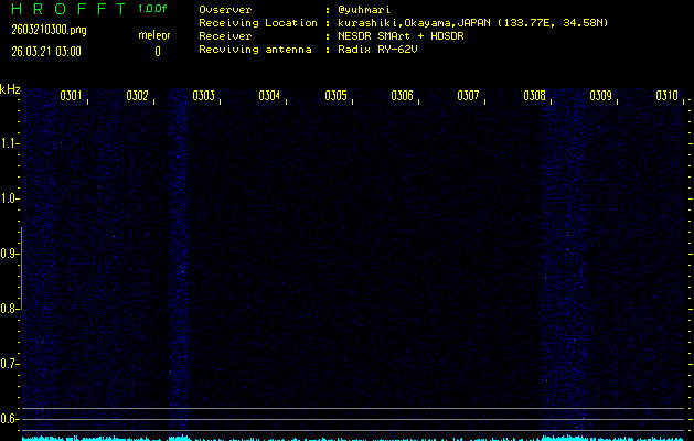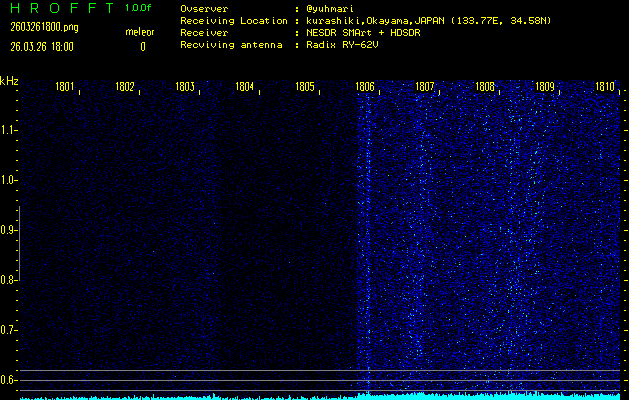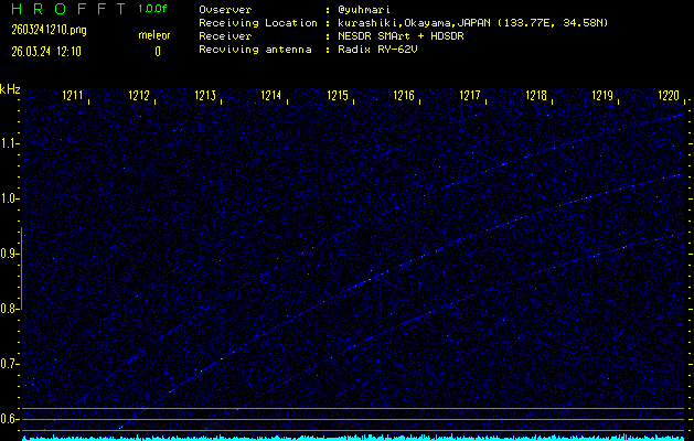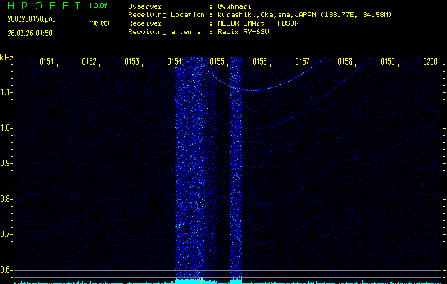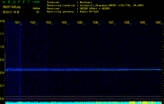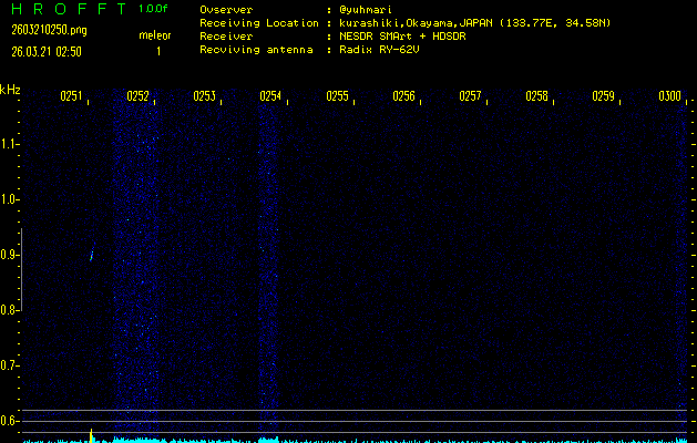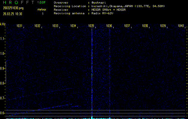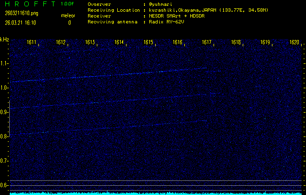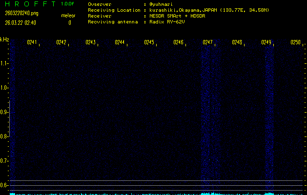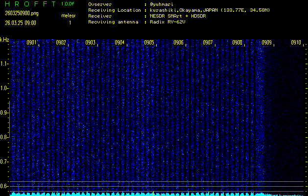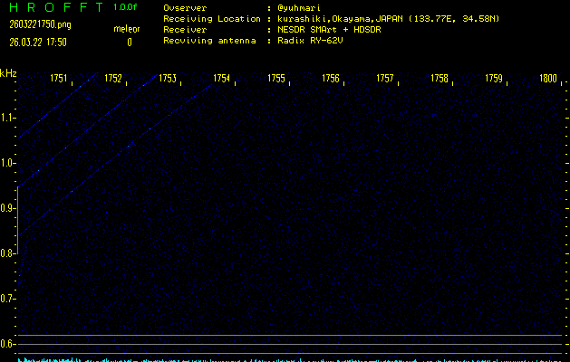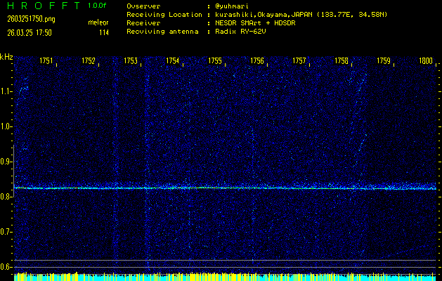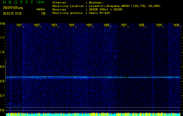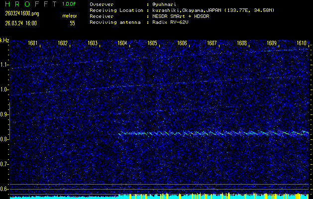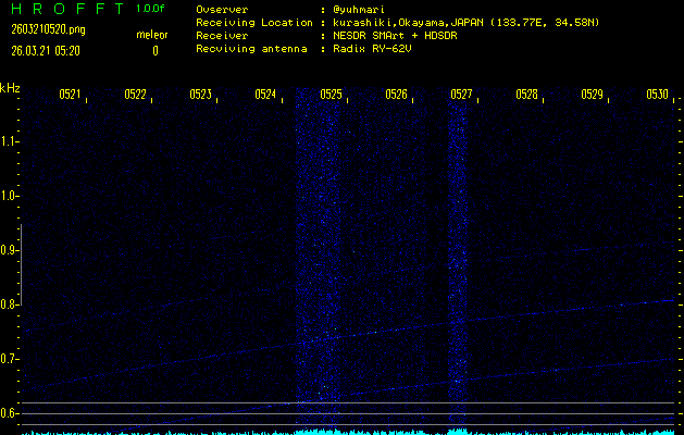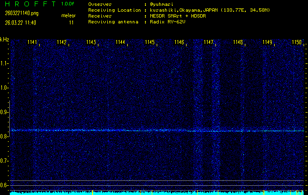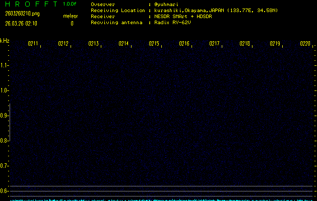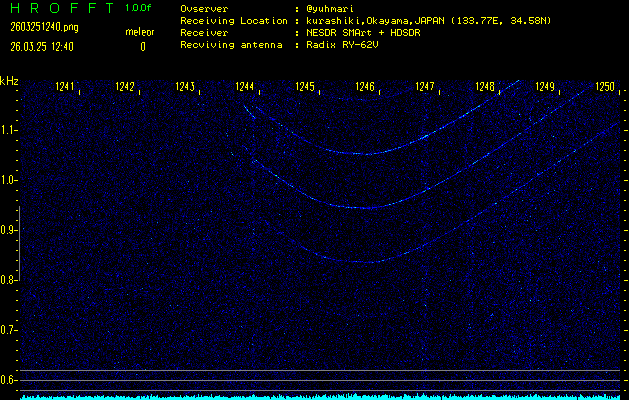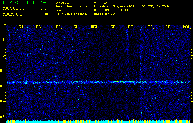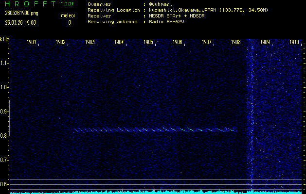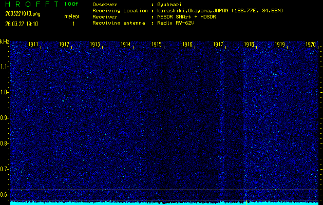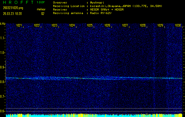 過去のデータは「流星電波観測国際プロジェクト」様サイト内のFRO LIVE in 倉敷(岡山県)でもご覧いただけます。(現在、送信を停止しています)