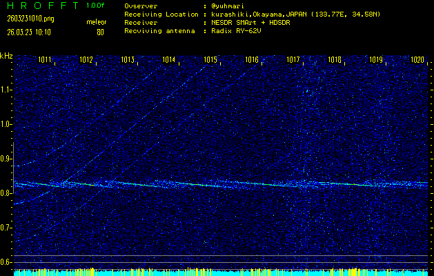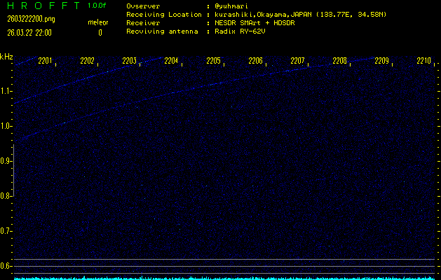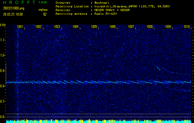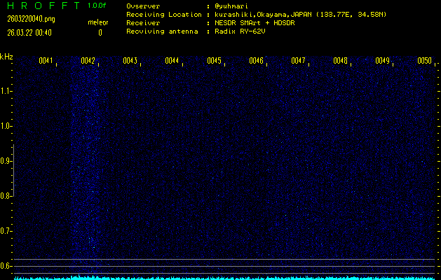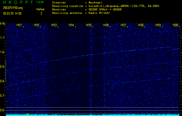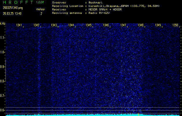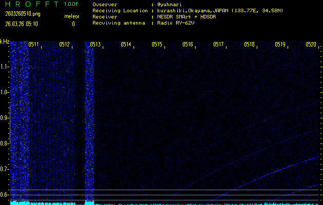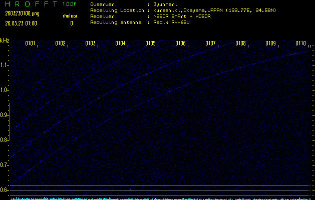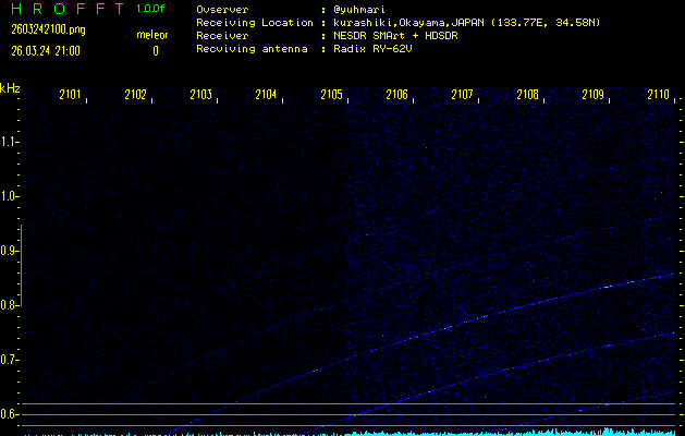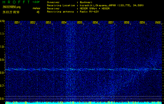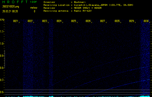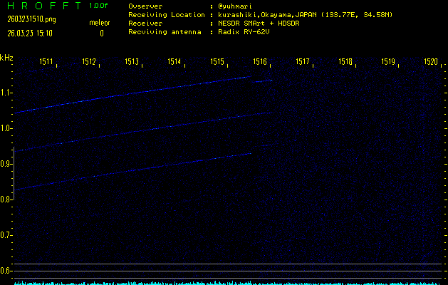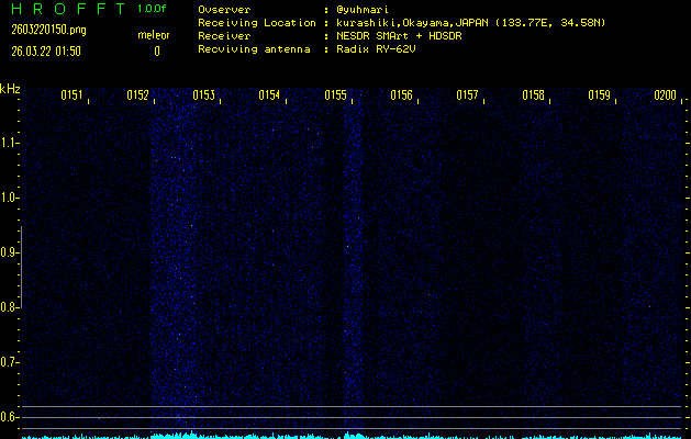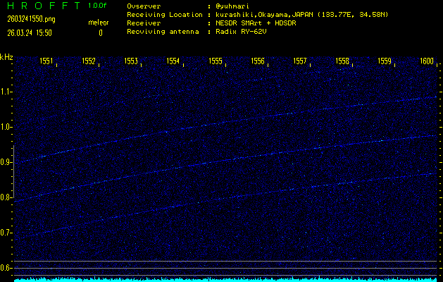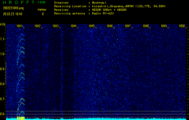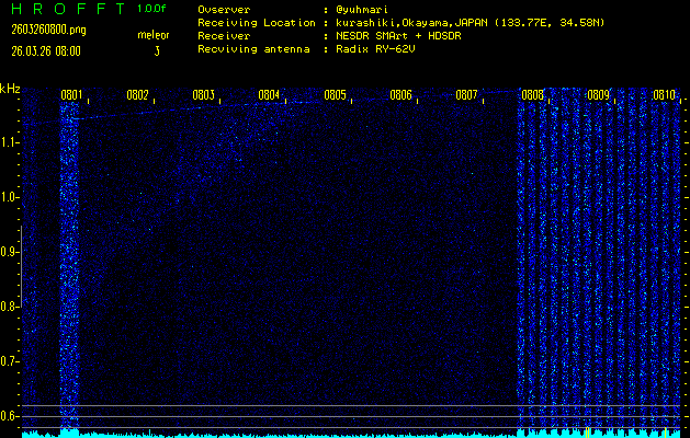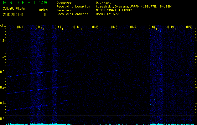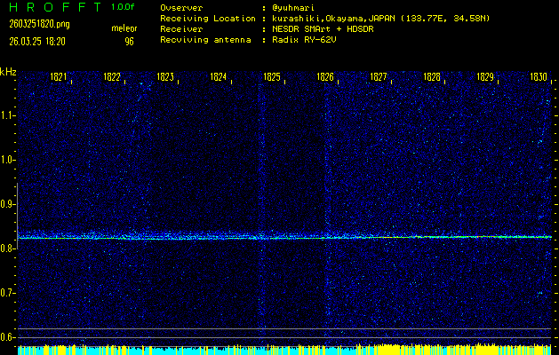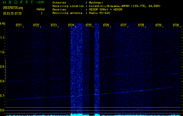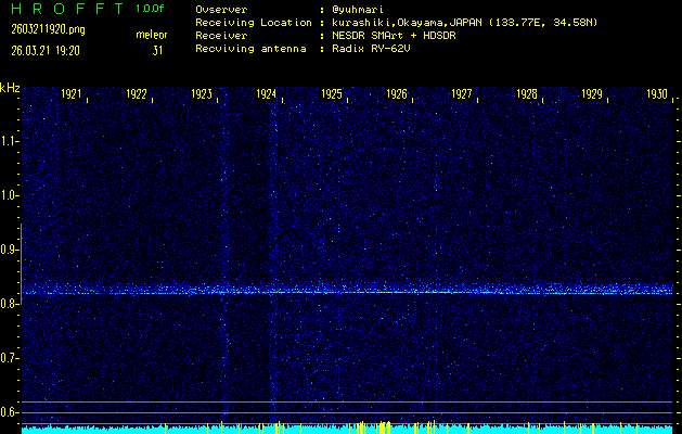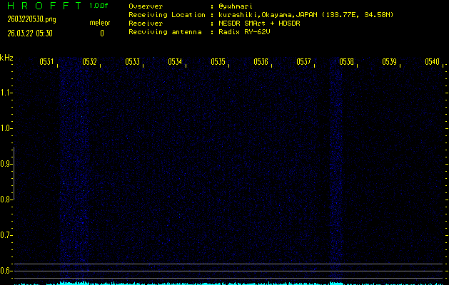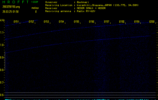 過去のデータは「流星電波観測国際プロジェクト」様サイト内のFRO LIVE in 倉敷(岡山県)でもご覧いただけます。(現在、送信を停止しています)