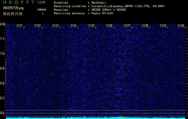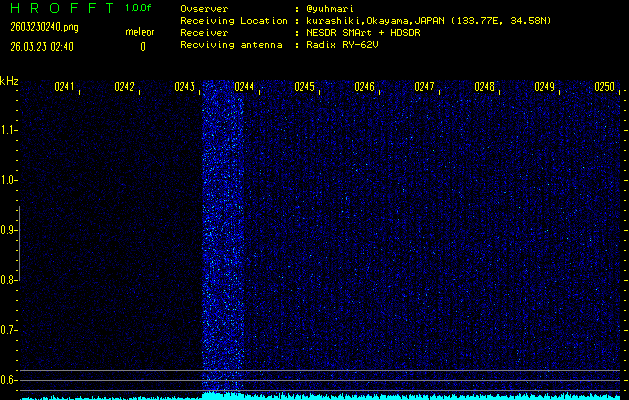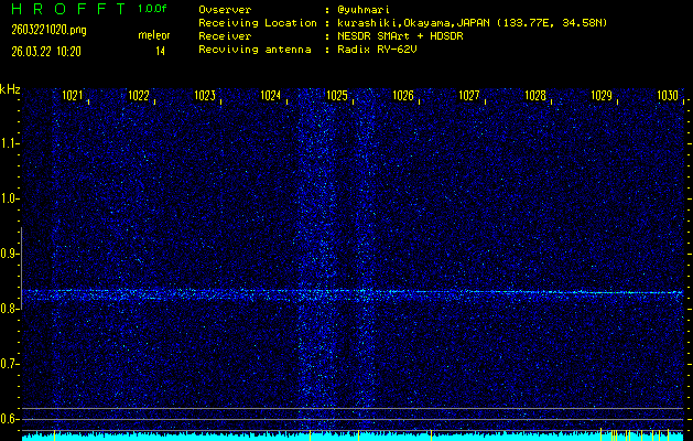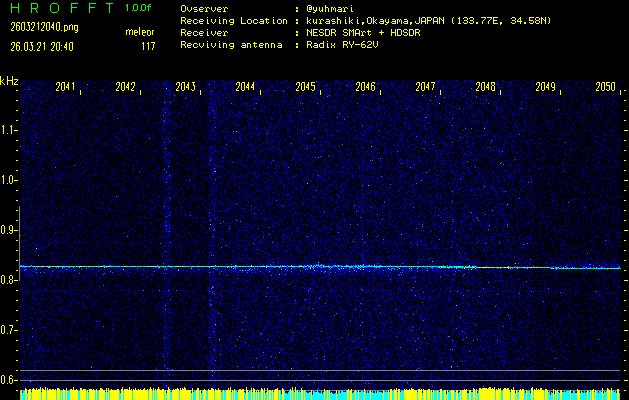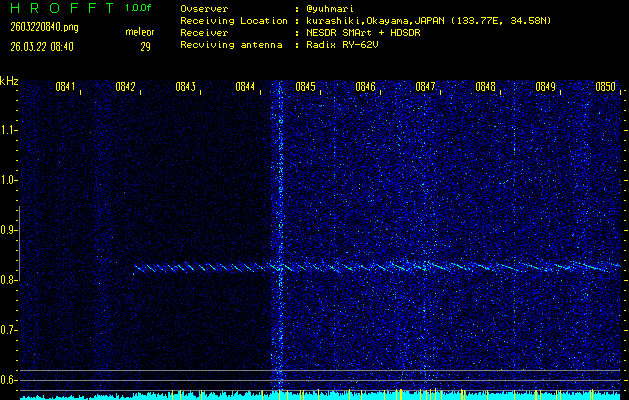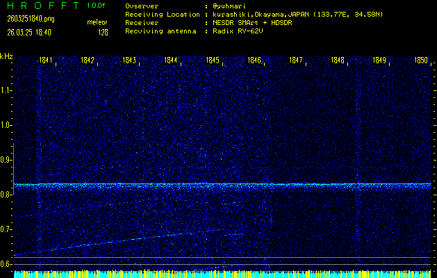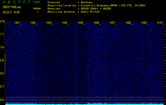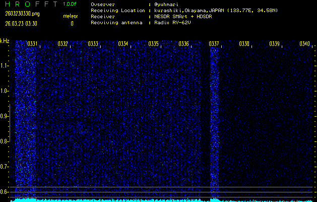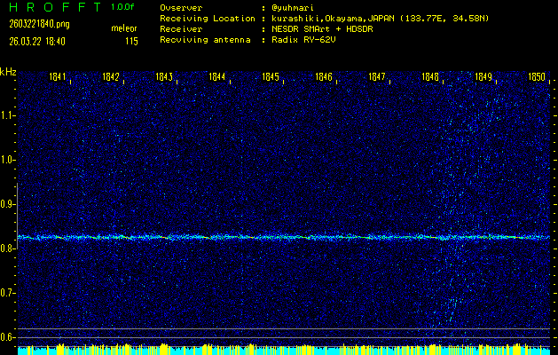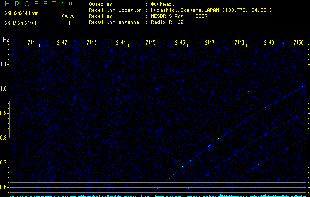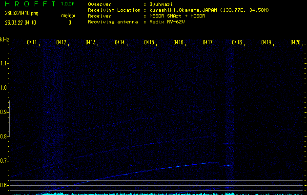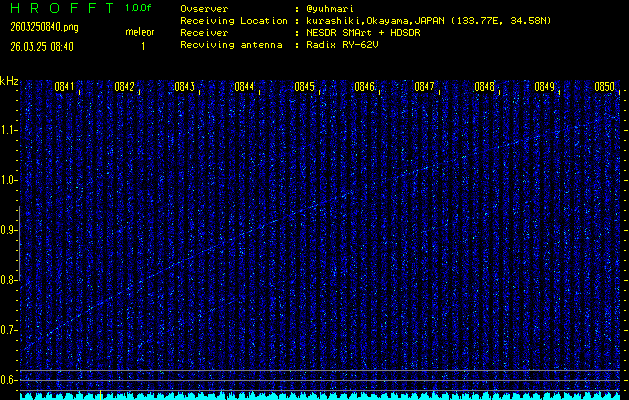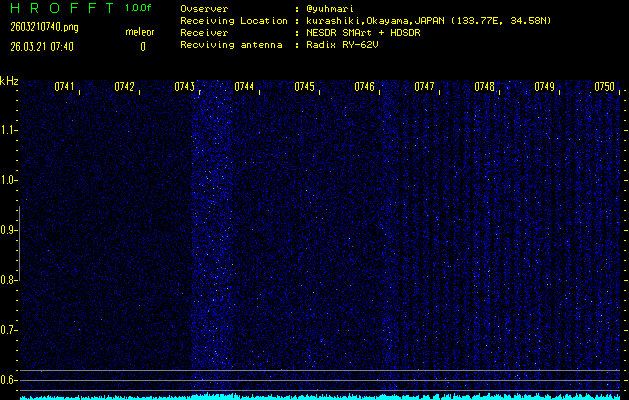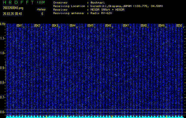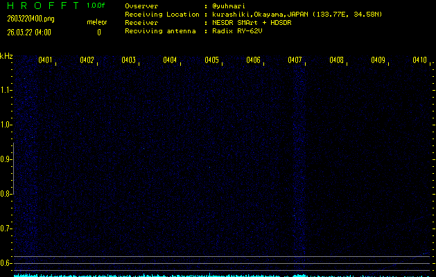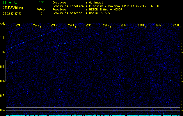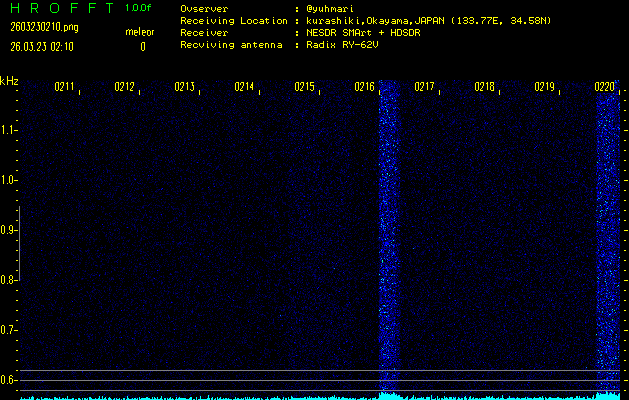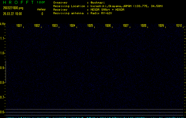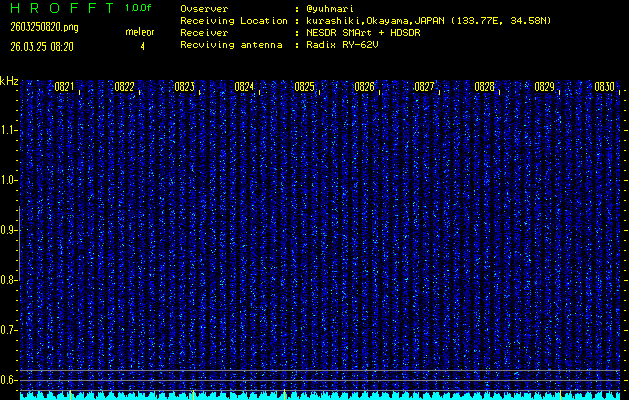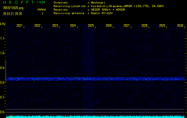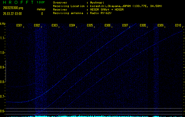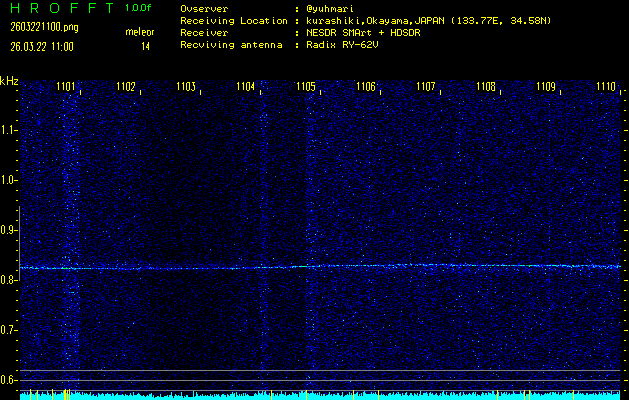 過去のデータは「流星電波観測国際プロジェクト」様サイト内のFRO LIVE in 倉敷(岡山県)でもご覧いただけます。(現在、送信を停止しています)