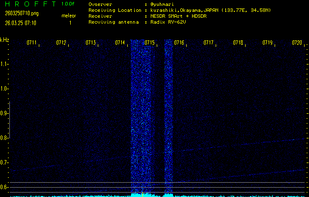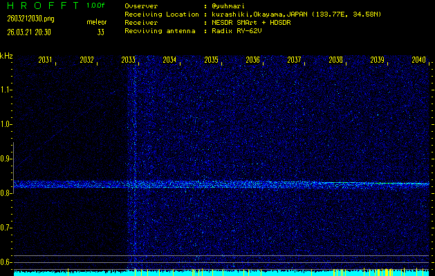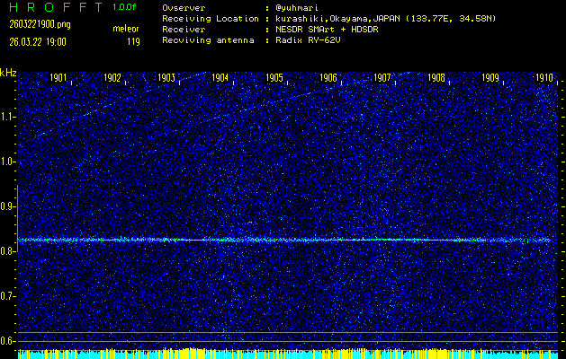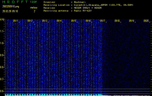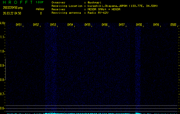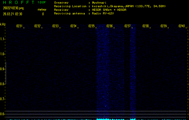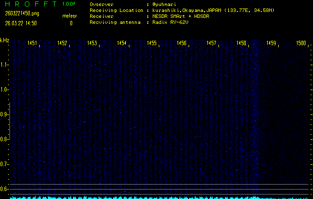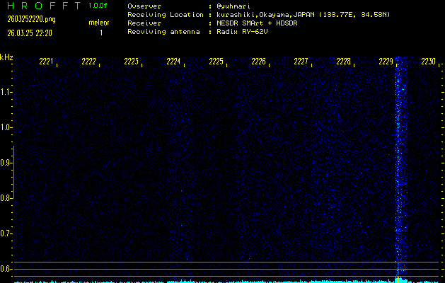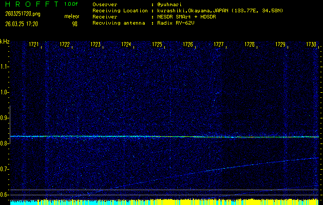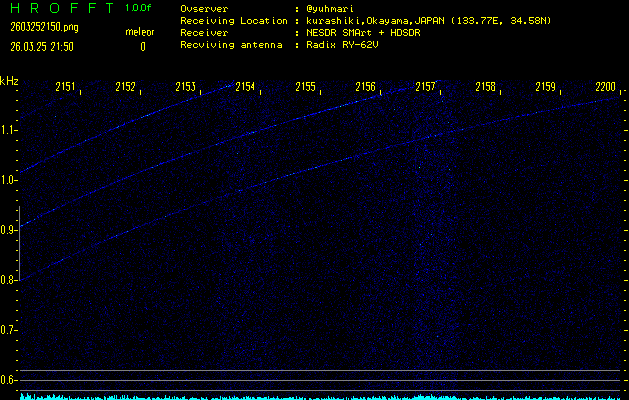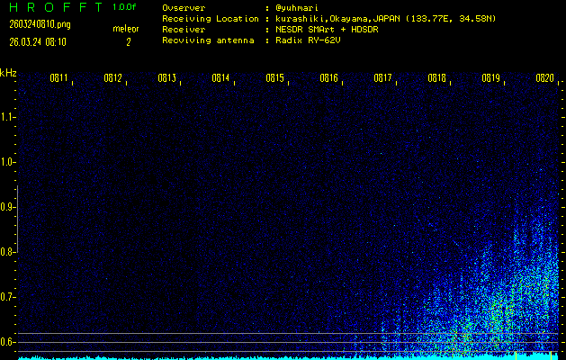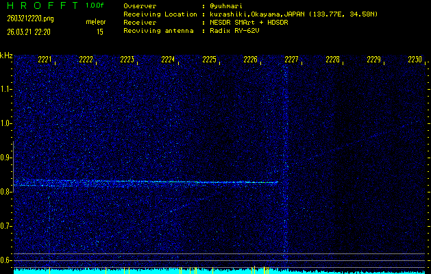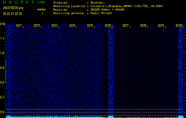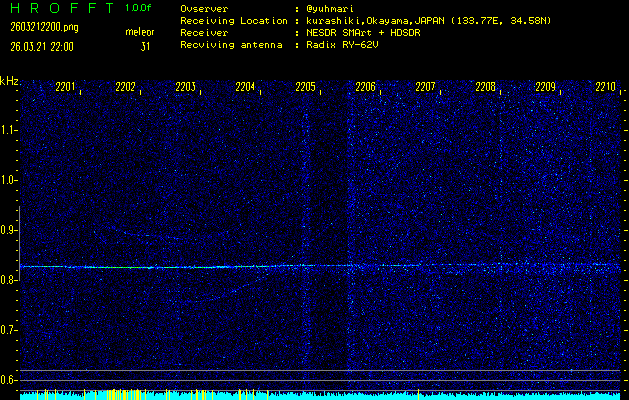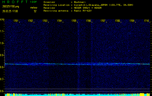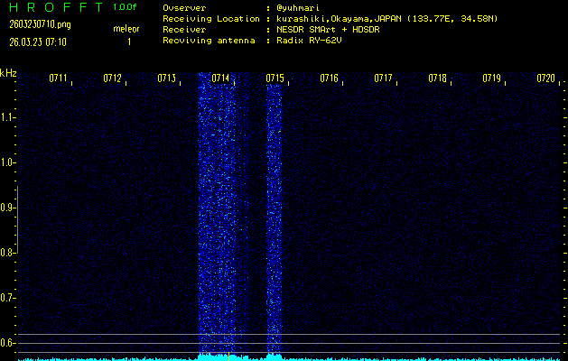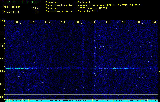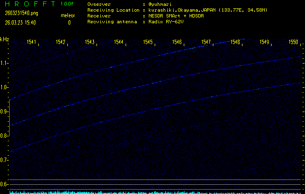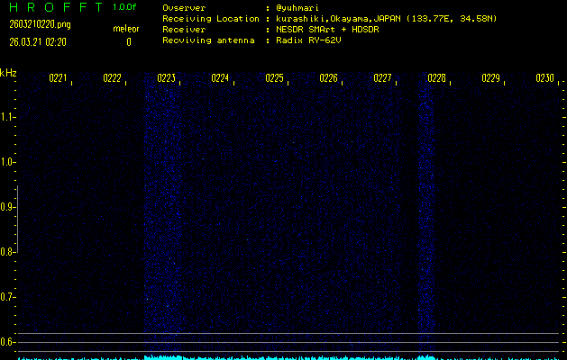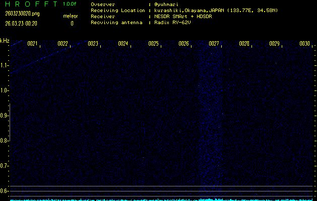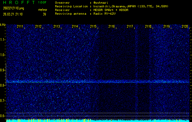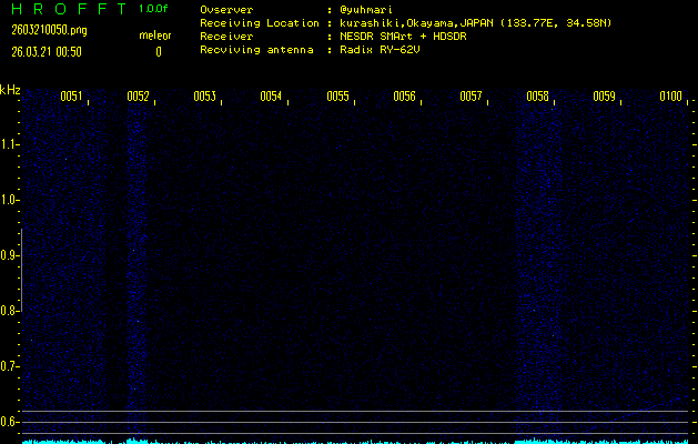 過去のデータは「流星電波観測国際プロジェクト」様サイト内のFRO LIVE in 倉敷(岡山県)でもご覧いただけます。(現在、送信を停止しています)